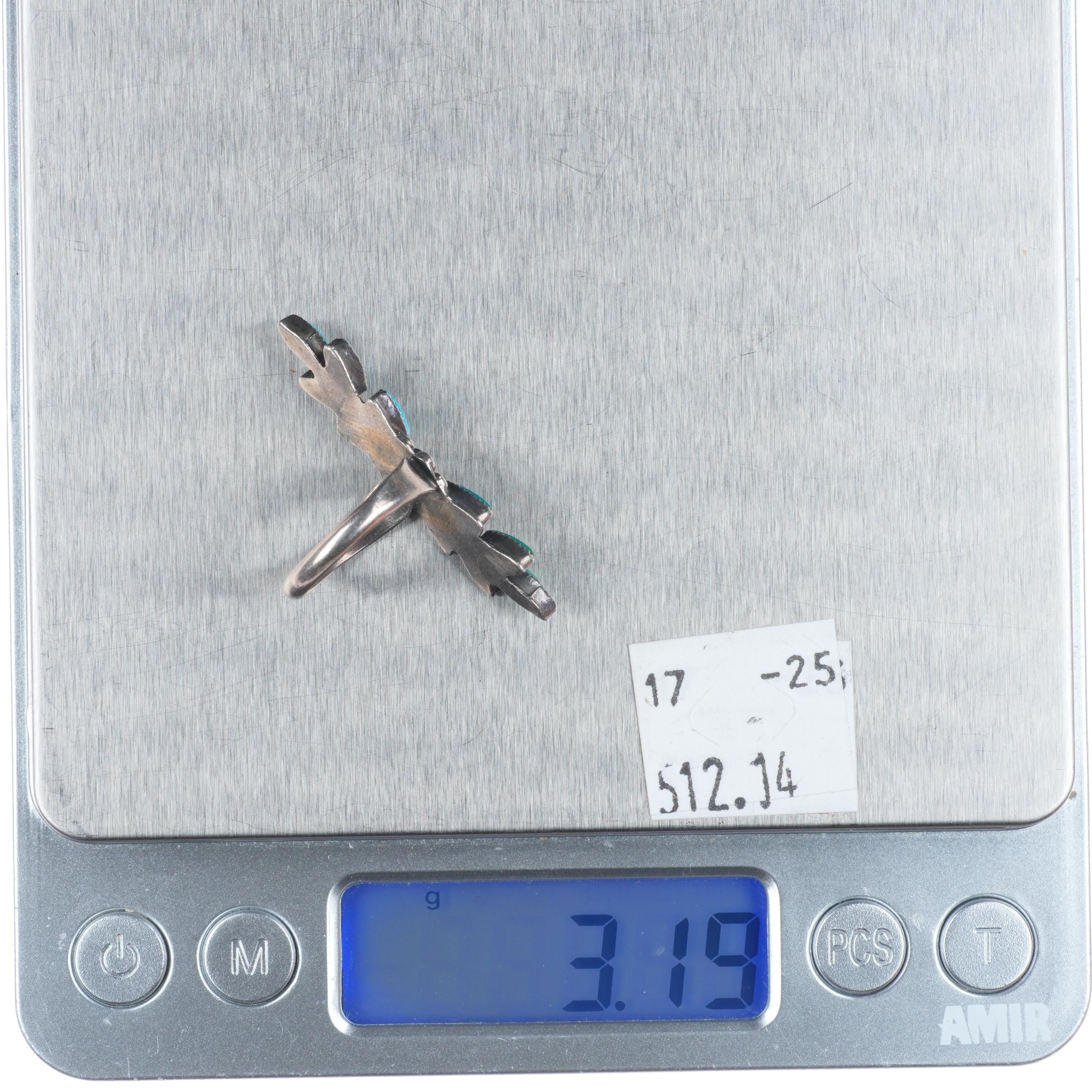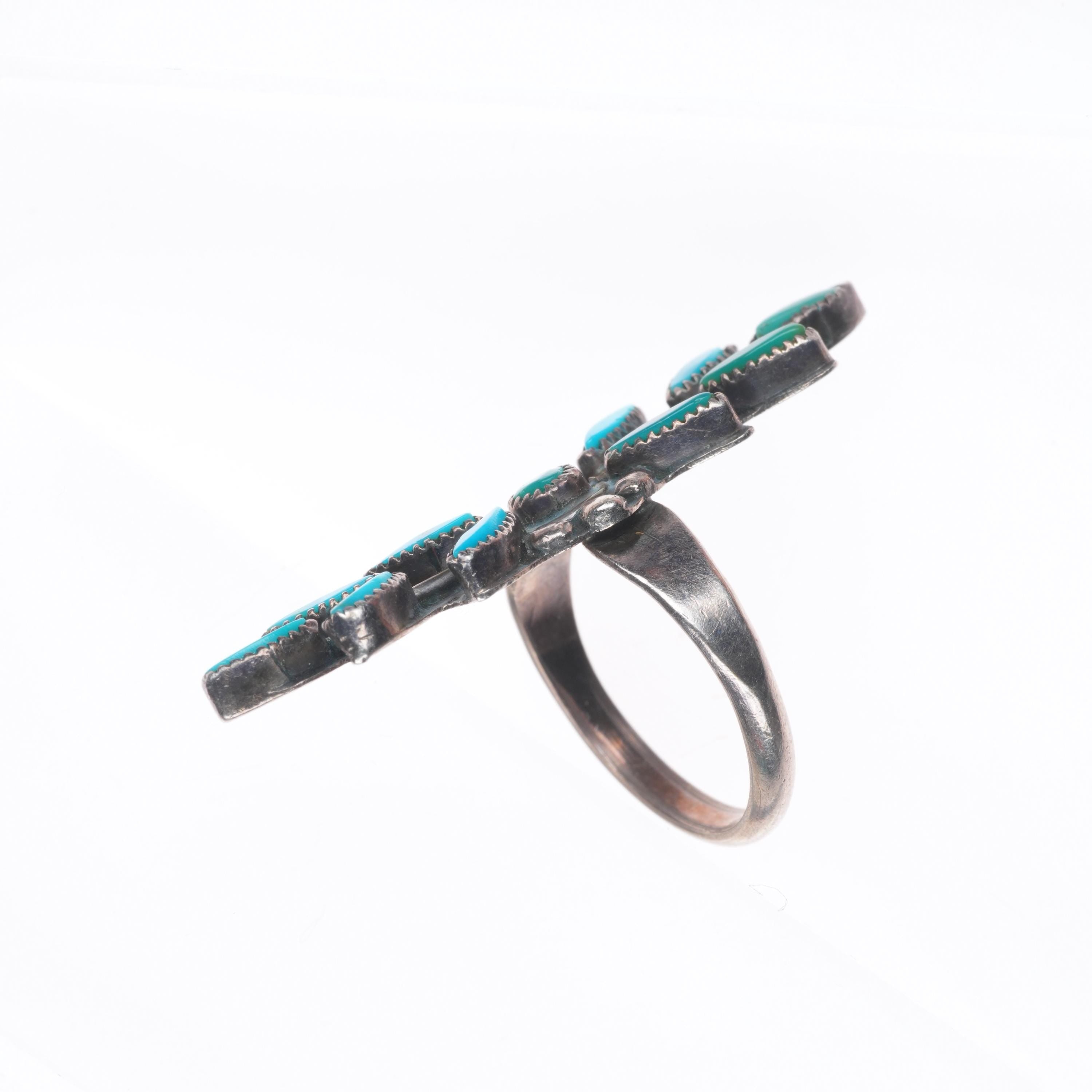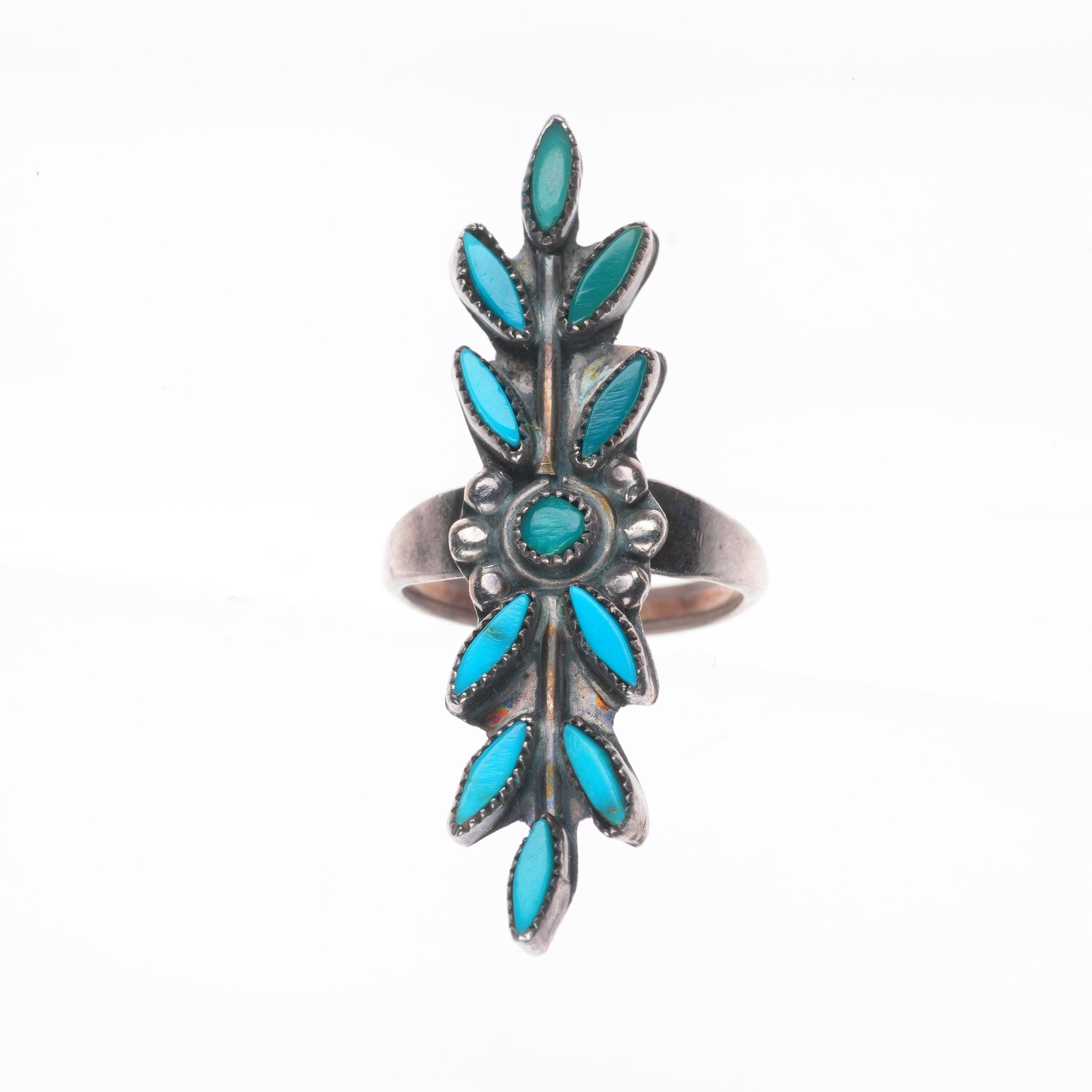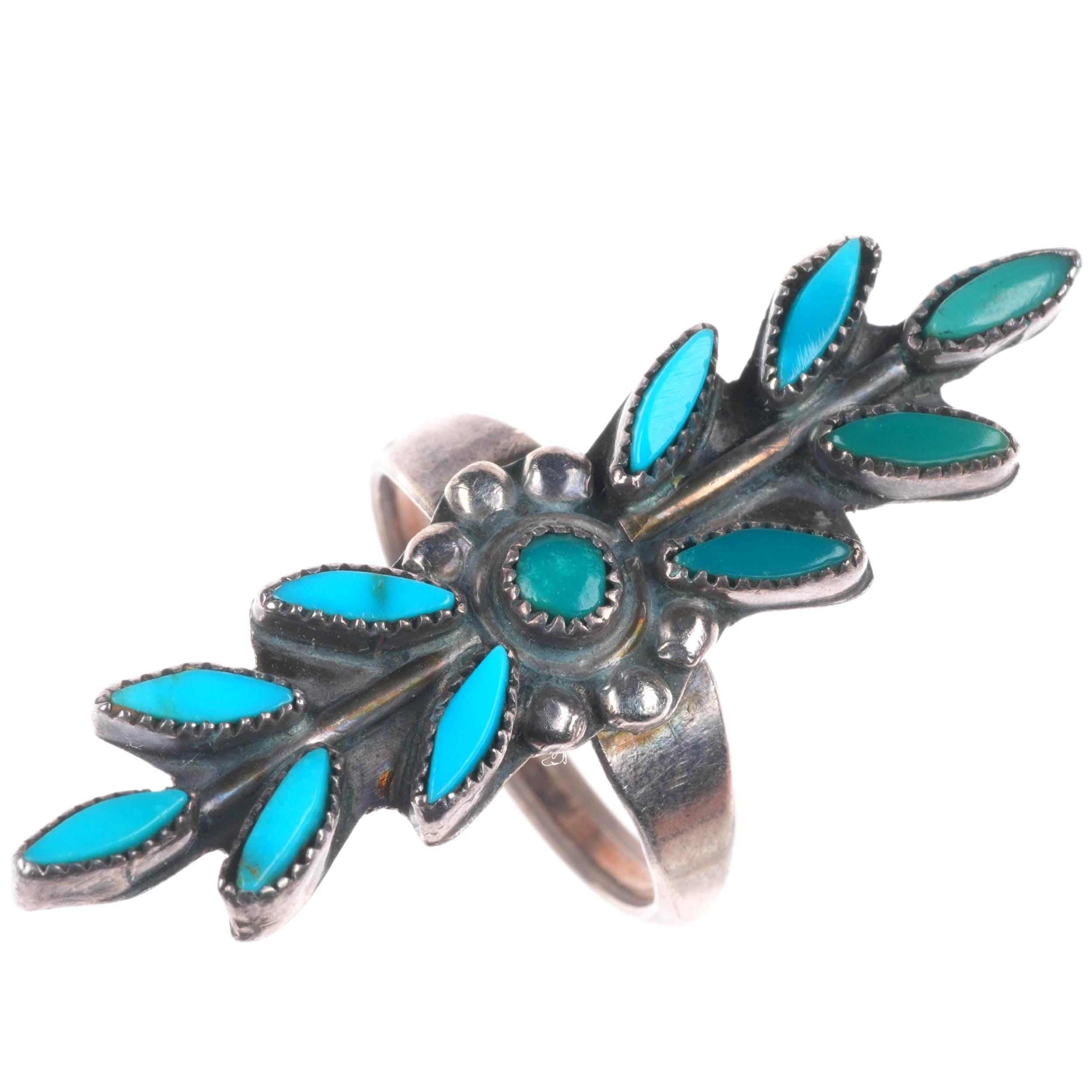 sz4.5 Vintage Zuni sterling silver long needlepoint turquoise ring