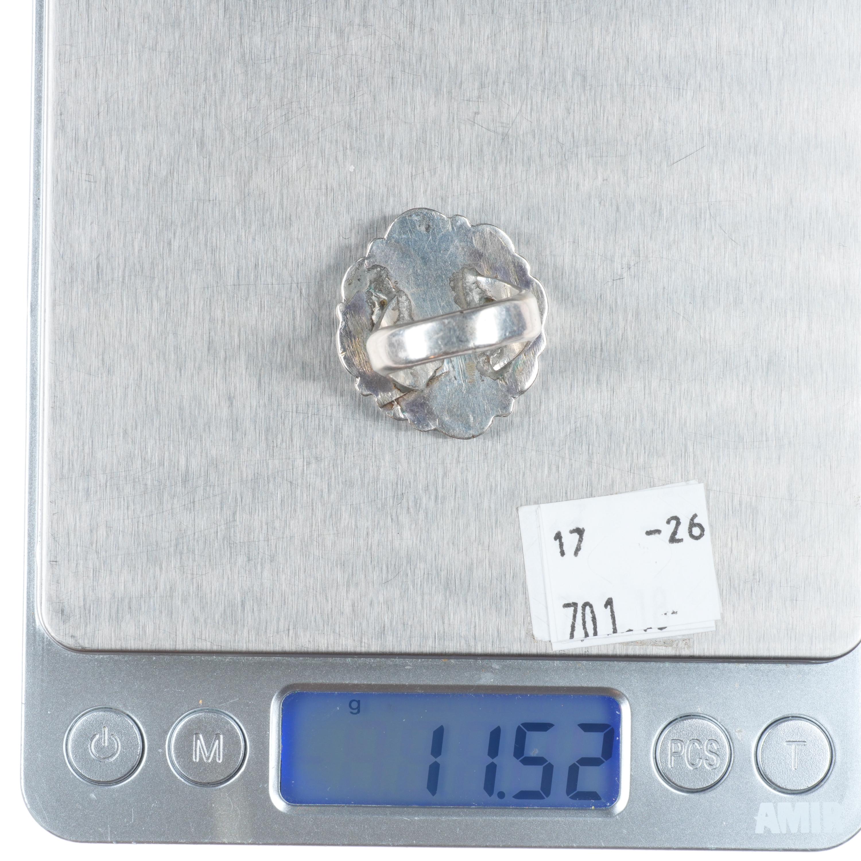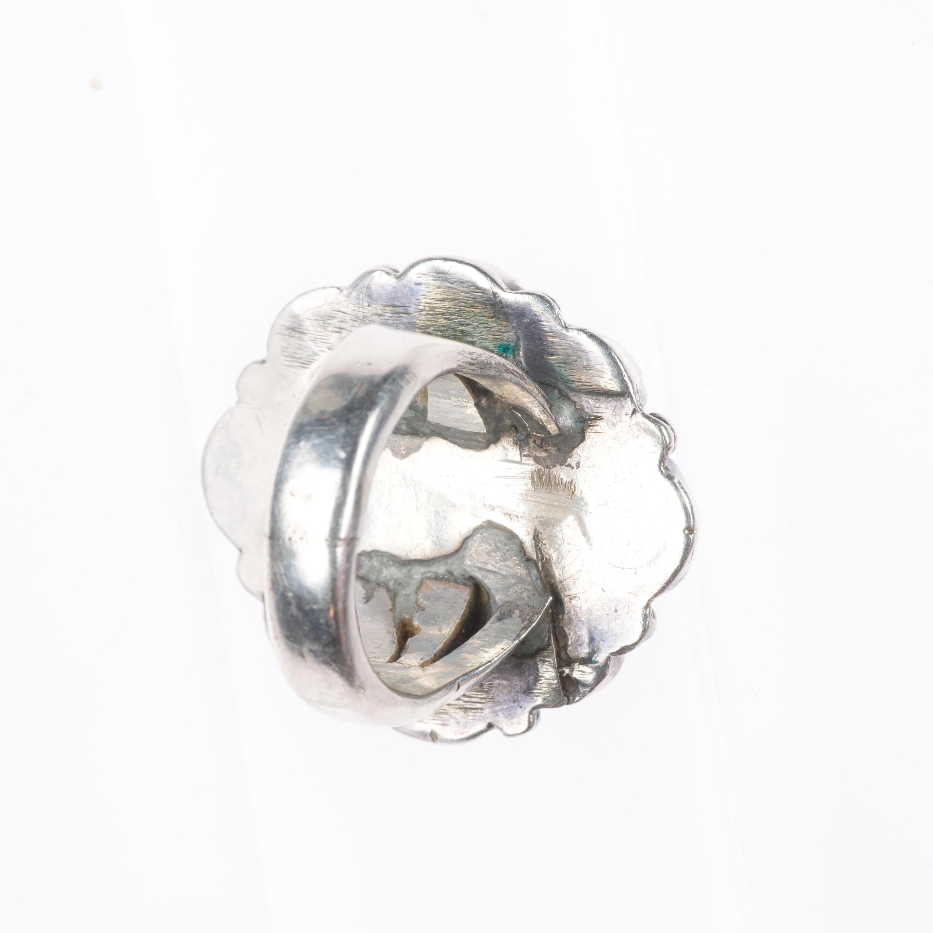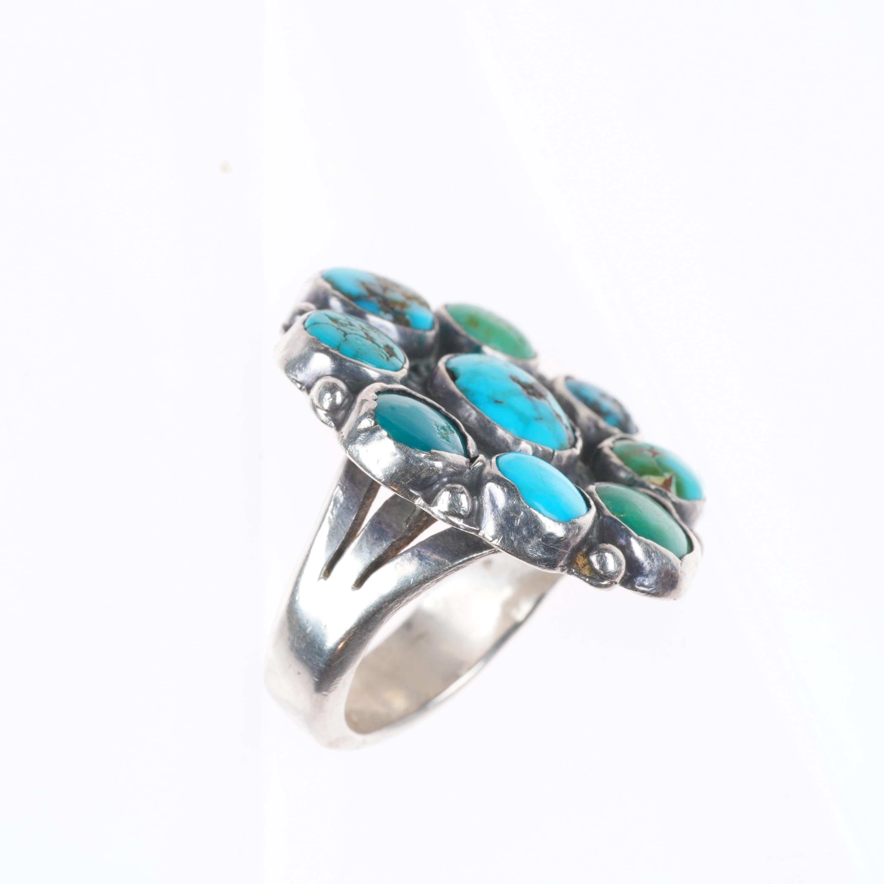 sz6 c1930 Big vintage Zuni sterling silver cluster ring with nice turquoise. Tested and guaranteed solid sterling silver, circa early second quarter of the 20th century. Some expected wear, weight and measurements in pictures.