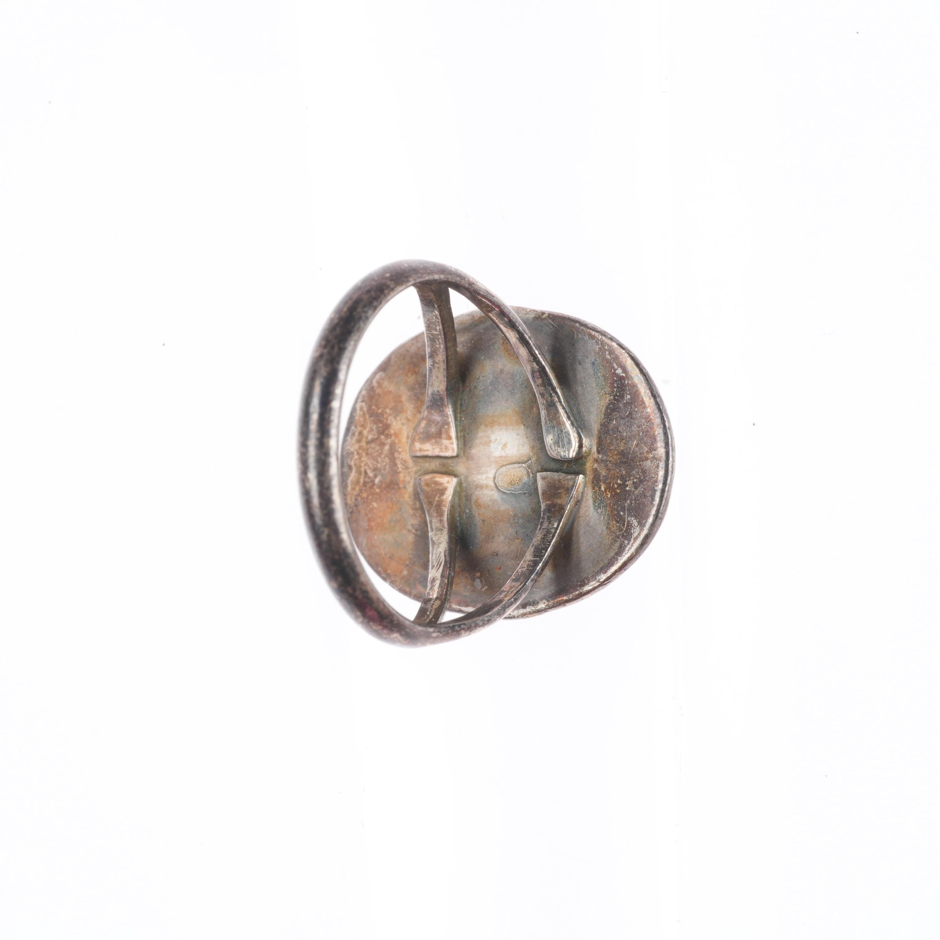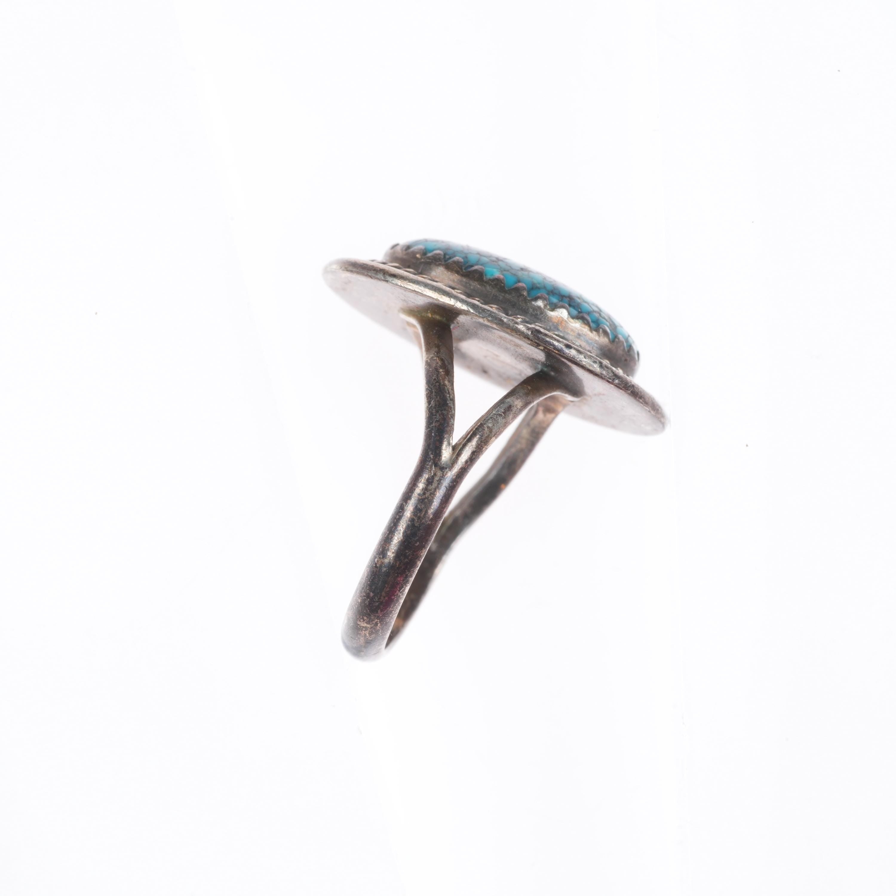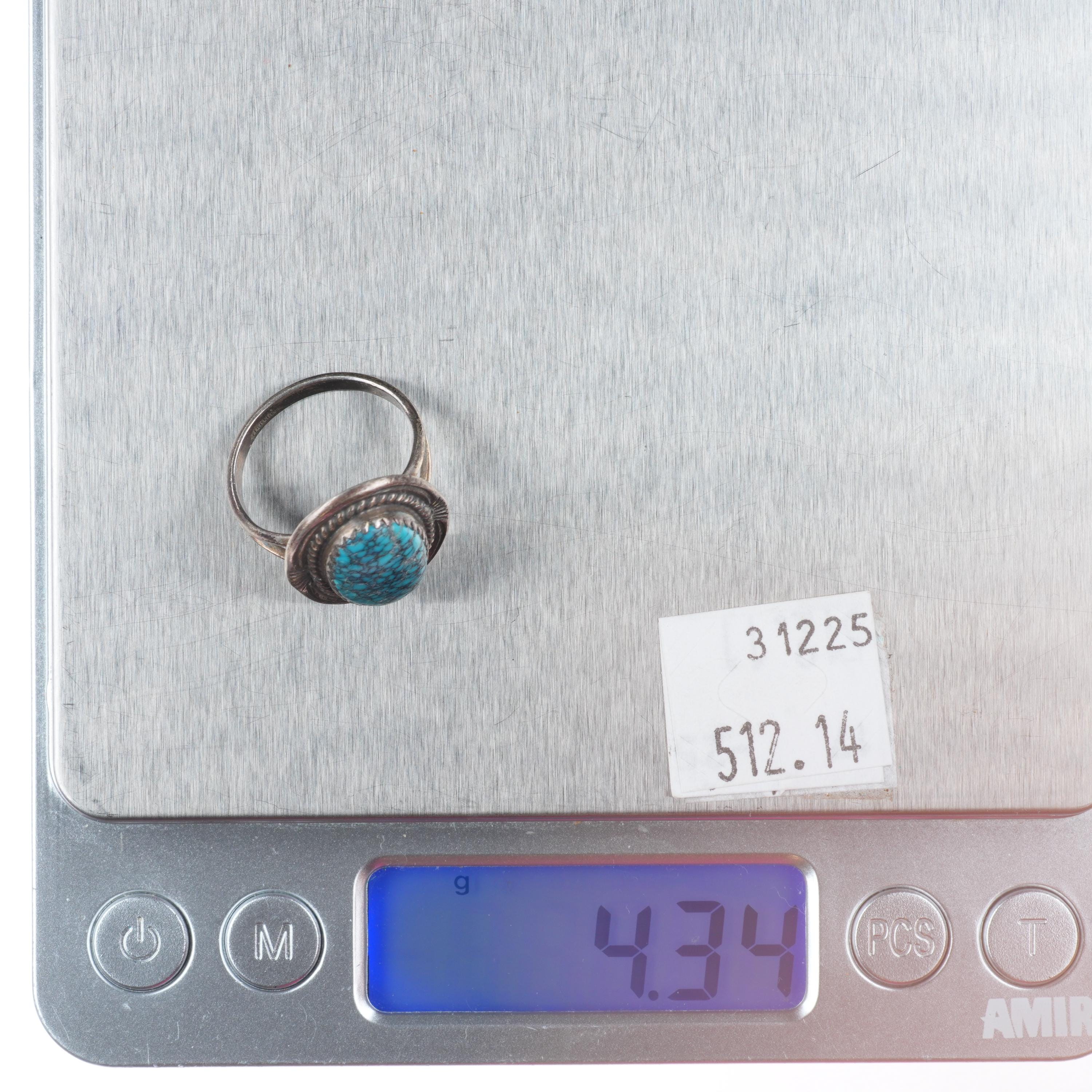 sz6 Vintage Navajo sterling silver spiderweb turquoise ring with rope bezel. Tested and guaranteed solid sterling silver, circa third quarter of the 20th century. Some expected wear, weight and measurements in pictures.