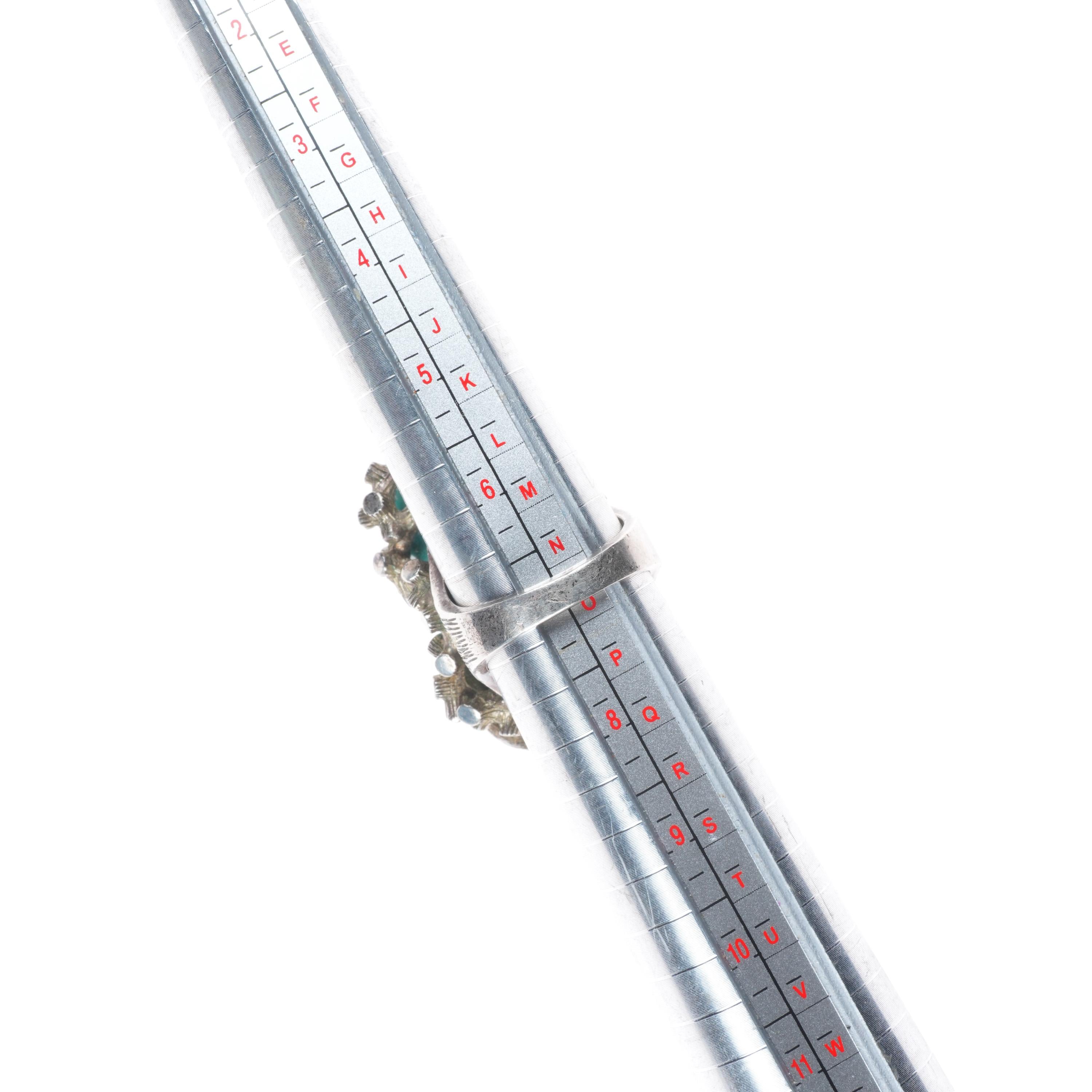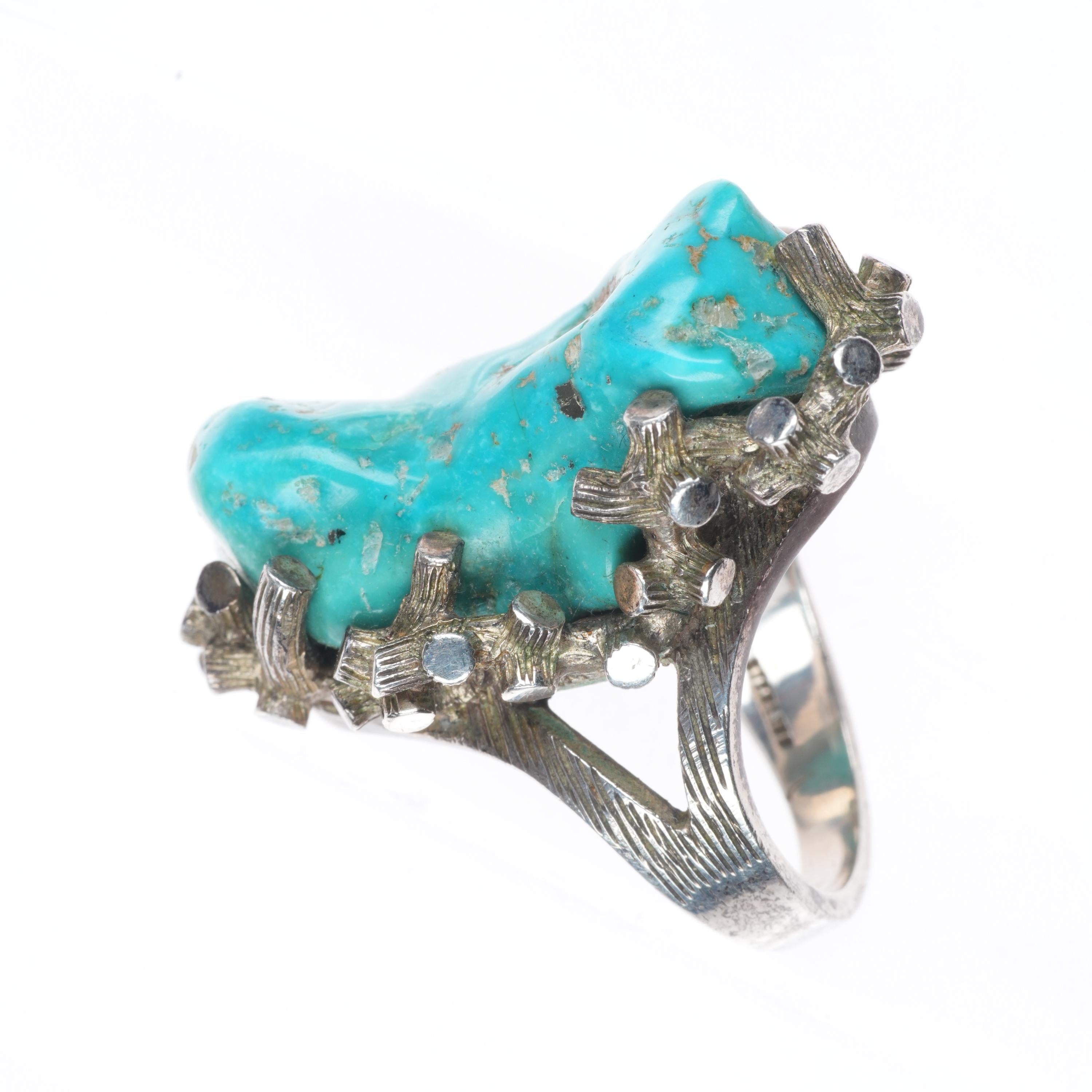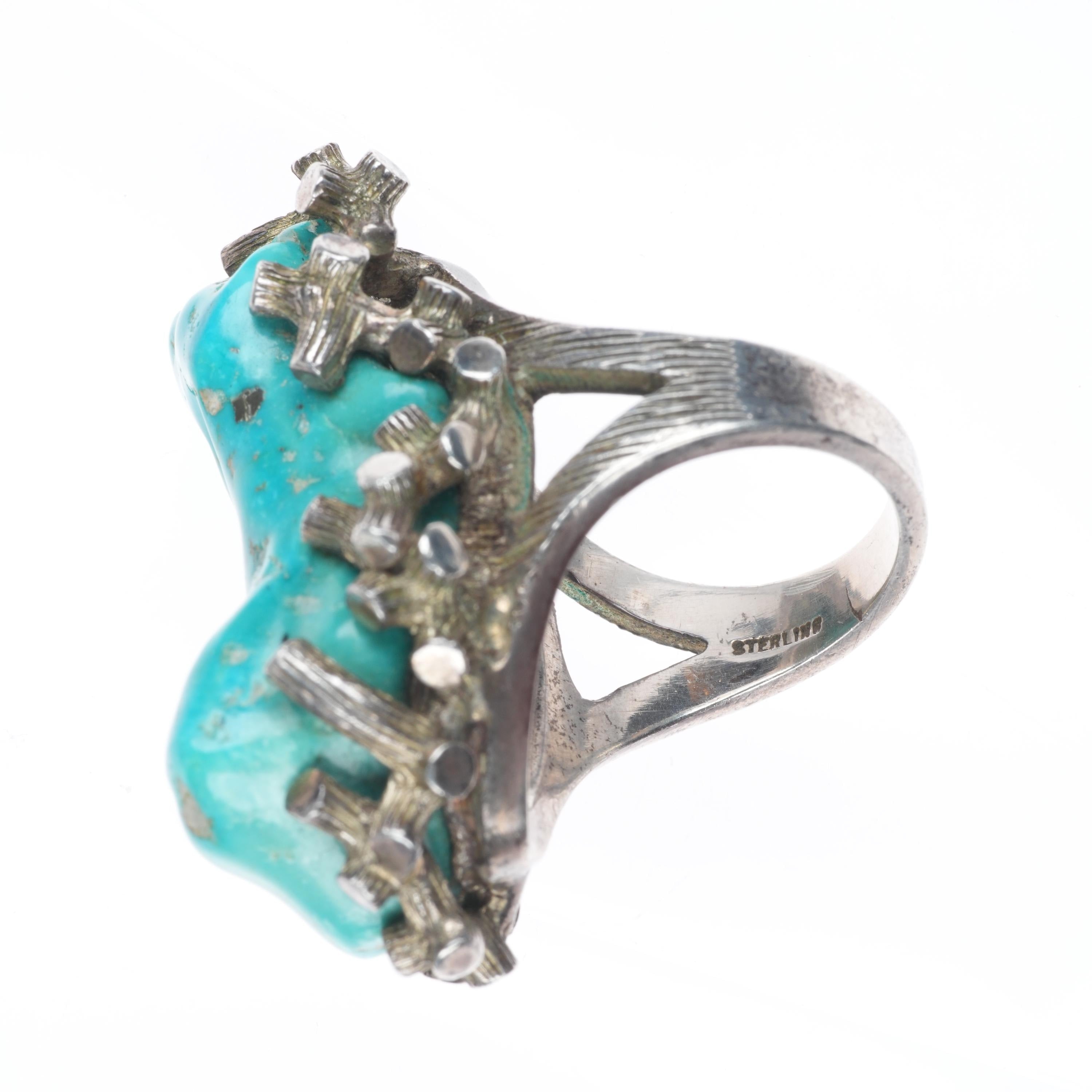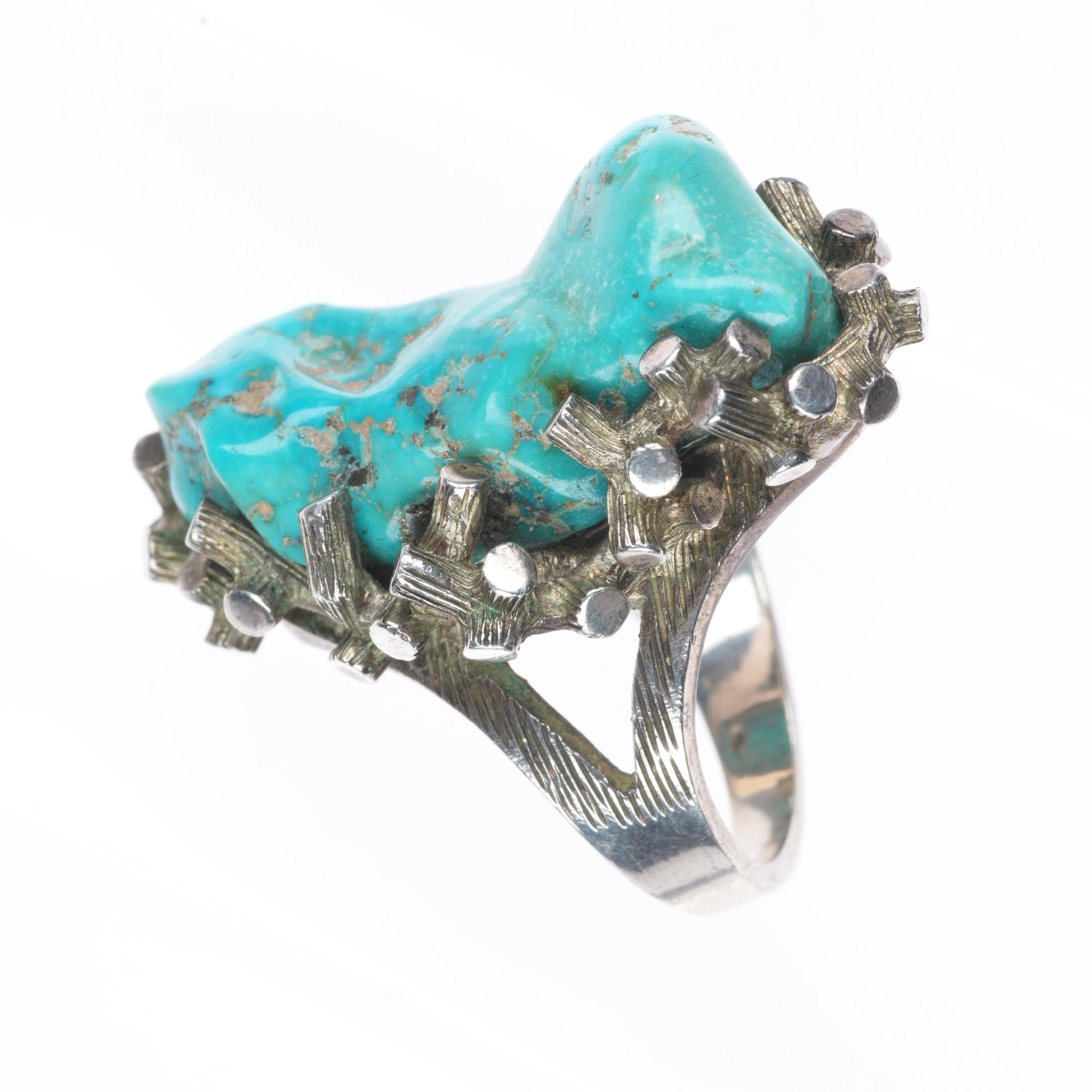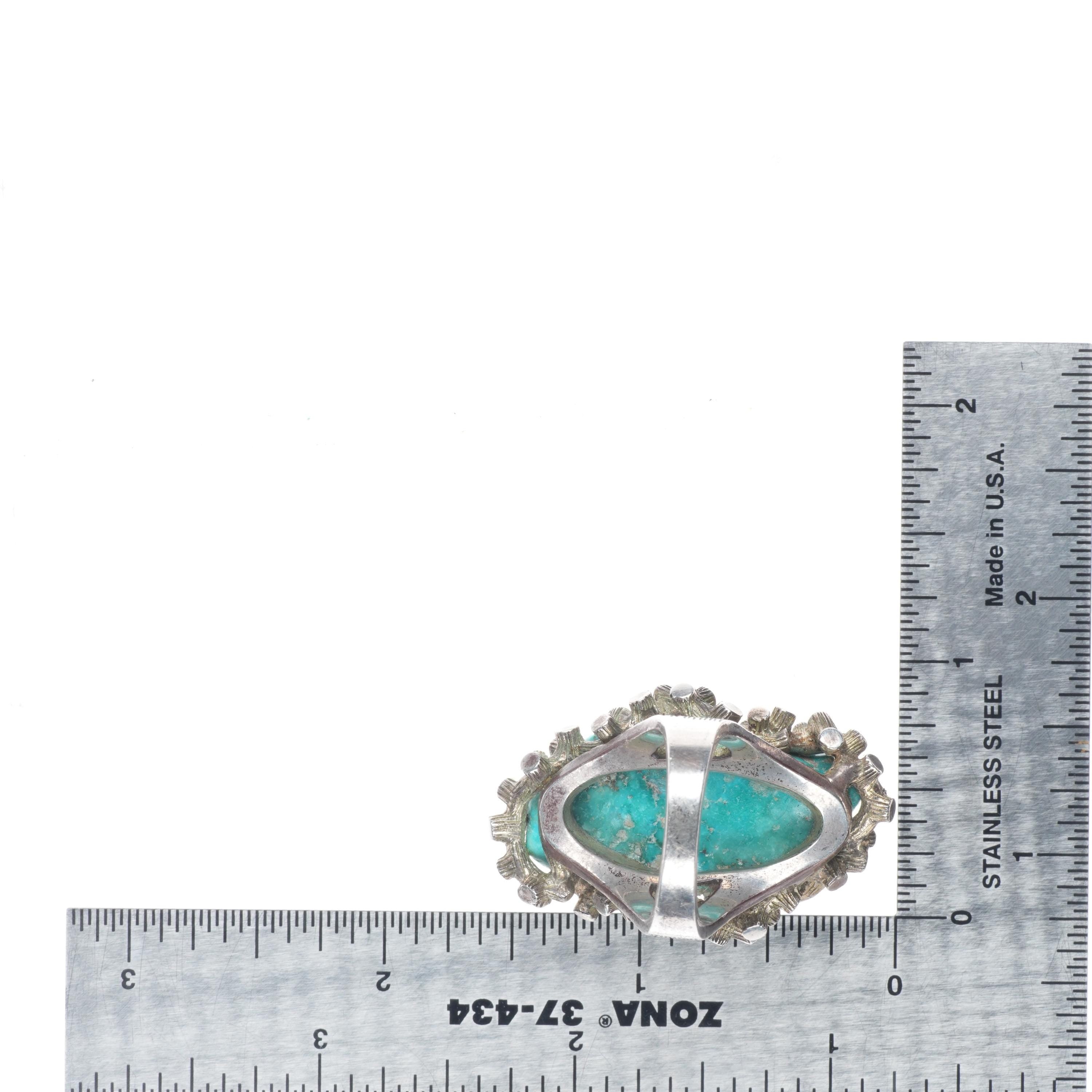 sz7 Vintage Southwestern modernist sterling silver brutalist turquoise ring