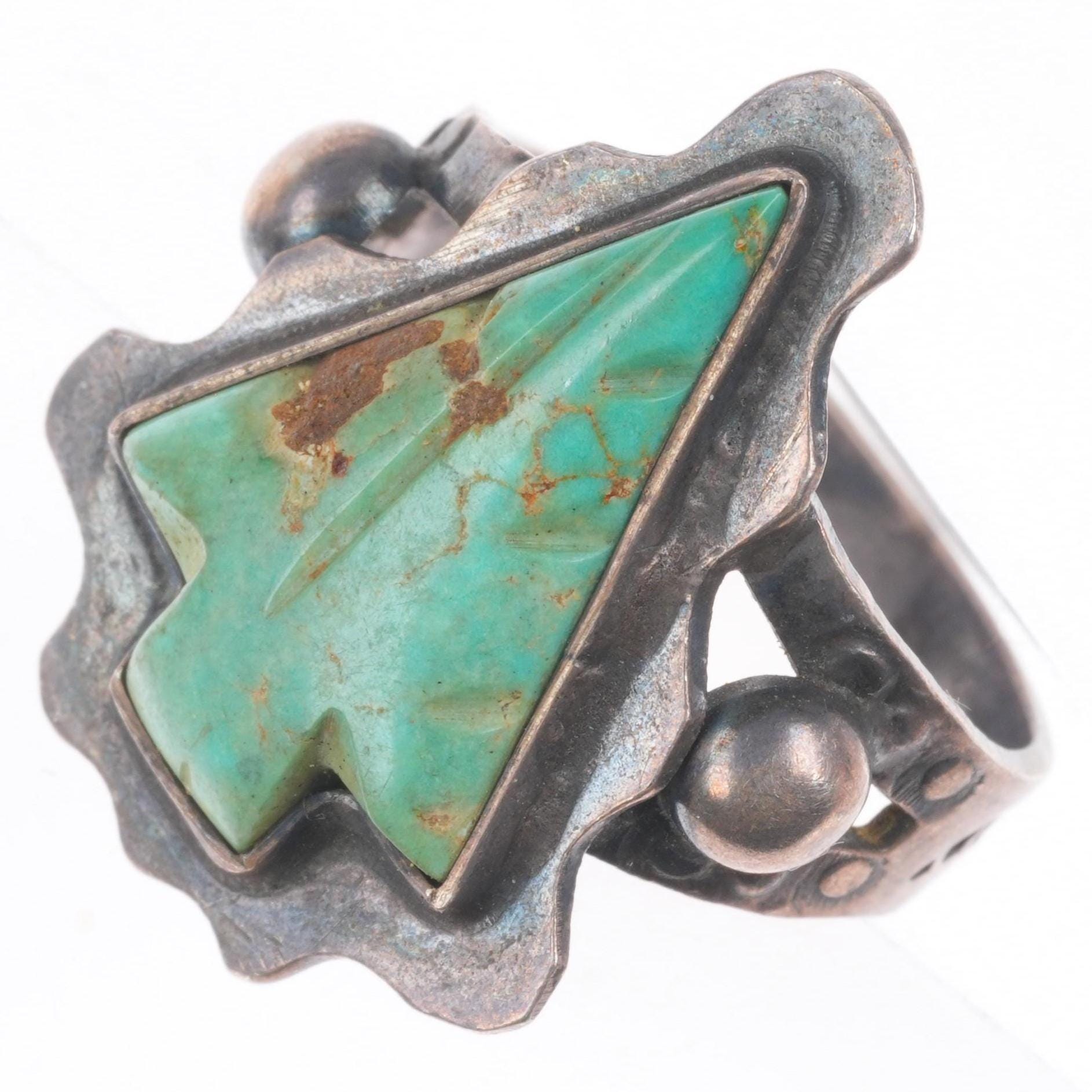 sz8 1940's Navajo/Fred Harvey sterling silver carved turquoise arrowhead ring