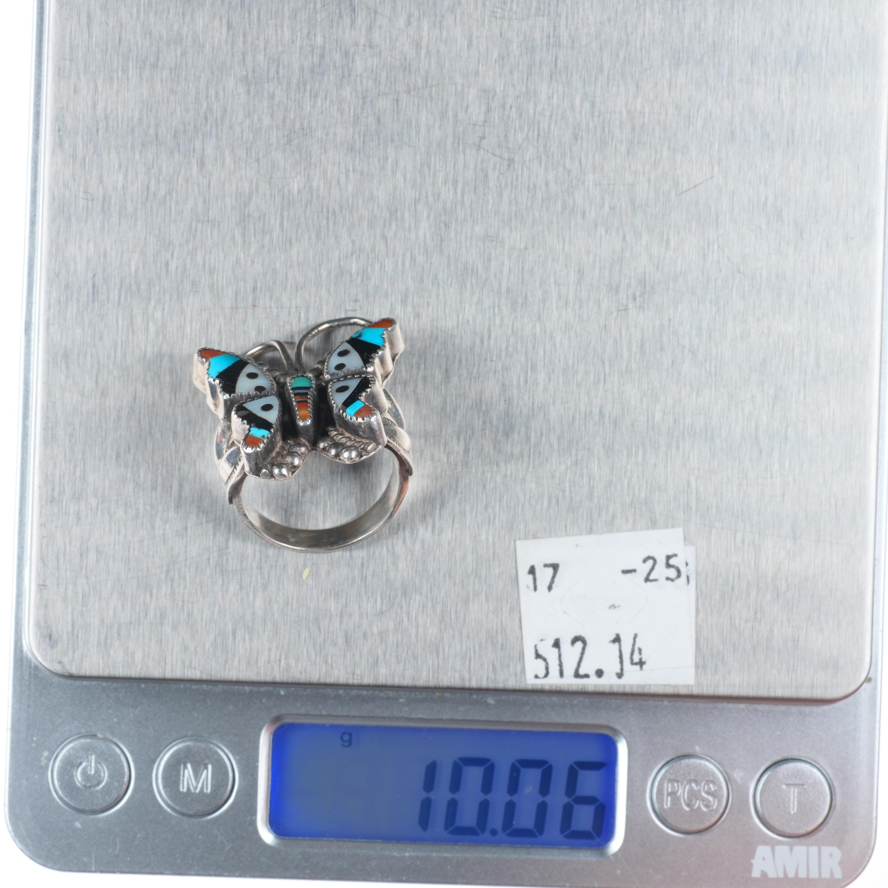 sz8 1940's Zuni sterling silver turquoise/spiny oyster inlaid butterfly ring Share WhatsApp Facebook X Pin it Messenger Email Product form $695.00 Excl. VAT 1 in stock Quantity Add to cart This item is a recurring or deferred purchase. By continuing, I agree to the cancellation policy and authorize you to charge my payment method at the prices, frequency and dates listed on this page until my order is fulfilled or I cancel, if permitted.