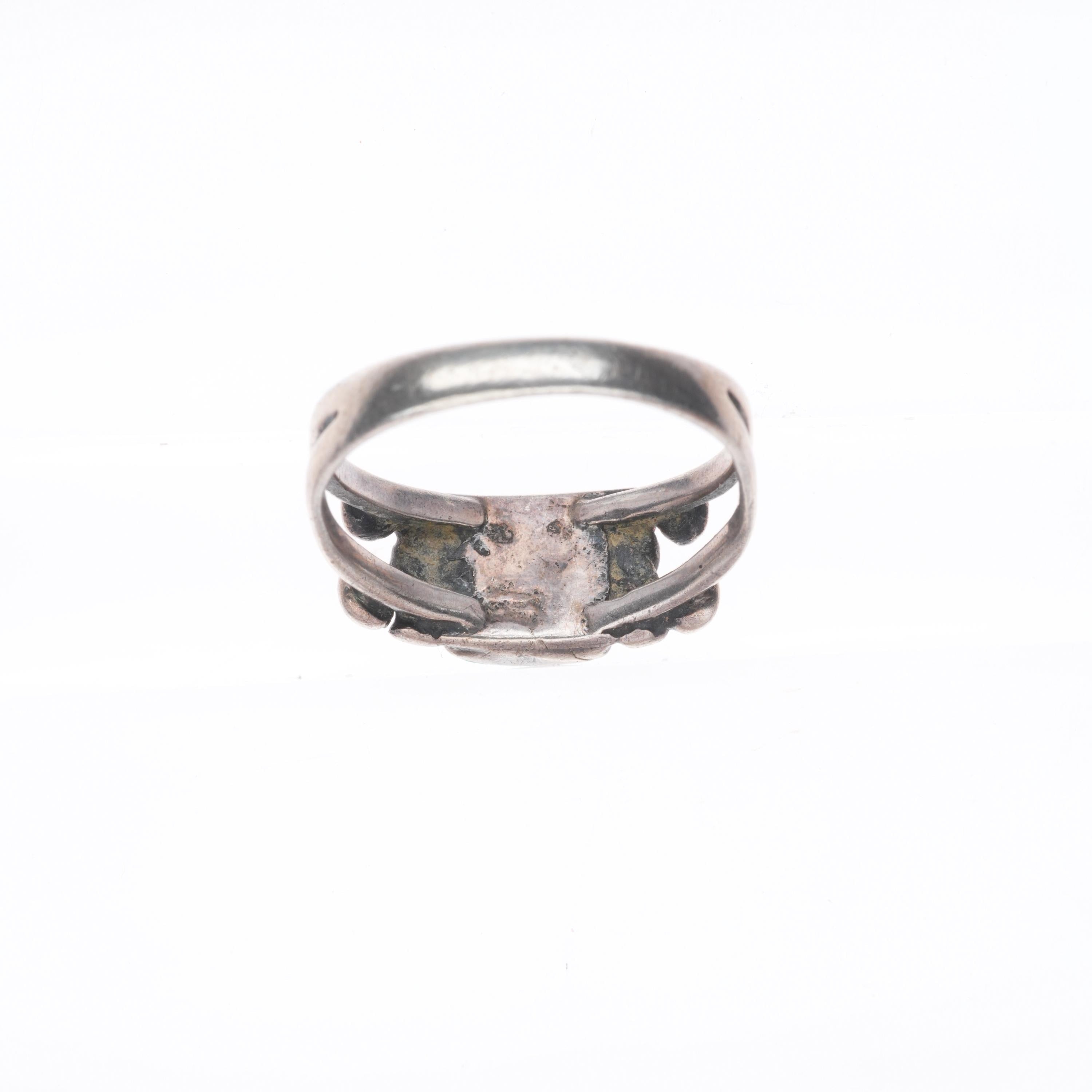sz8 Antique Navajo ingot silver square turquoise ring beaded accents. Tested and guaranteed solid sterling silver, circa first quarter of the 20th century. Some expected wear, weight and measurements in pictures.
