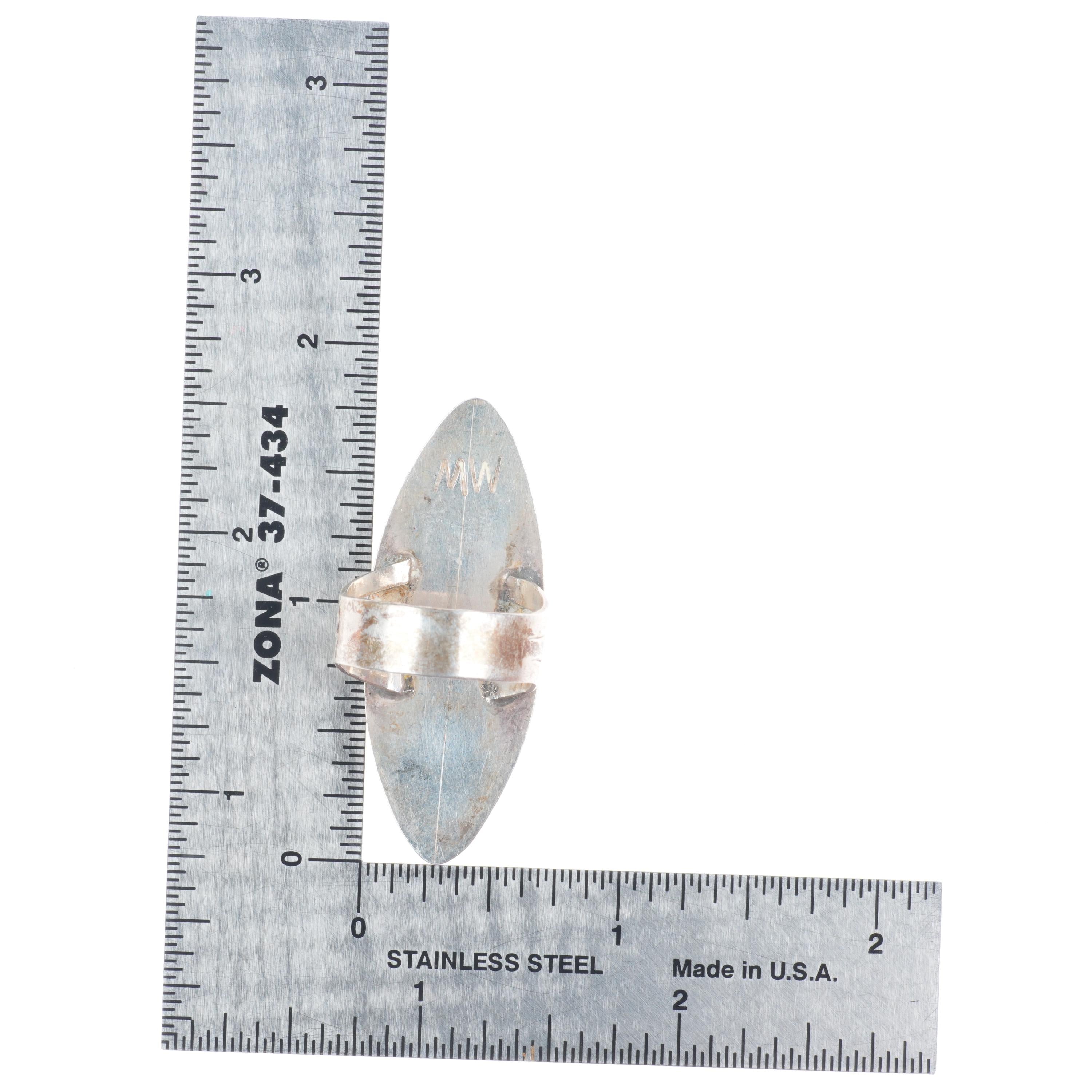 sz8 MW Navajo sterling silver long shadowbox stamped ring with turquoise