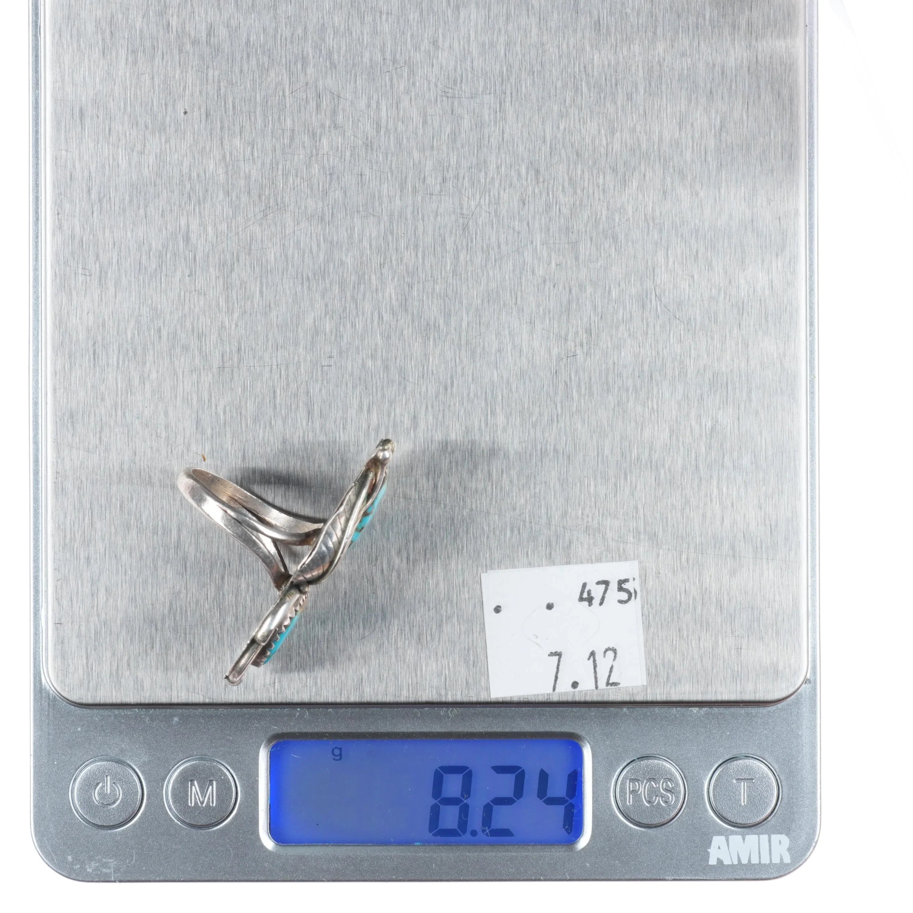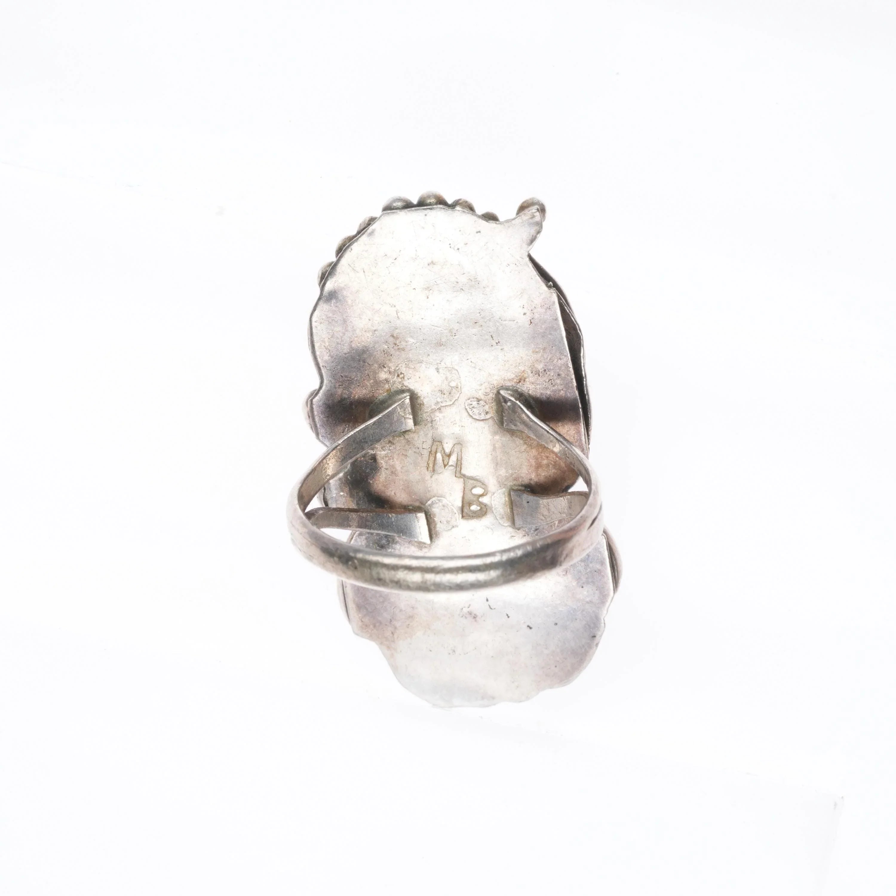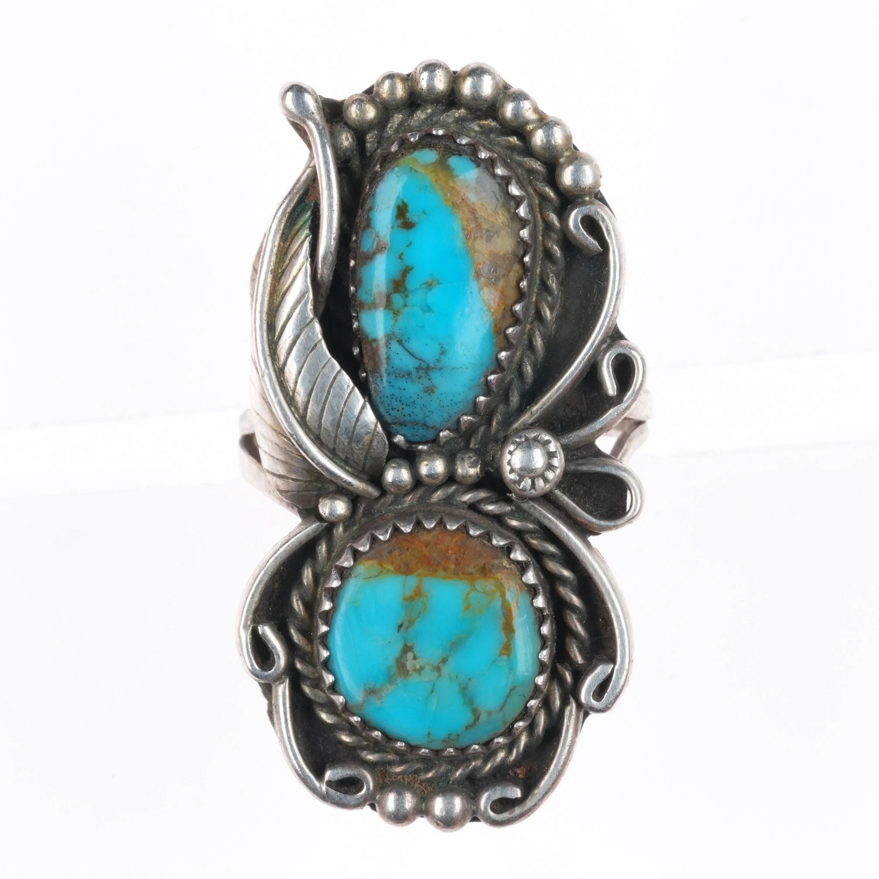 sz8 Vintage MB Navajo sterling silver double turquoise ring sterling silver