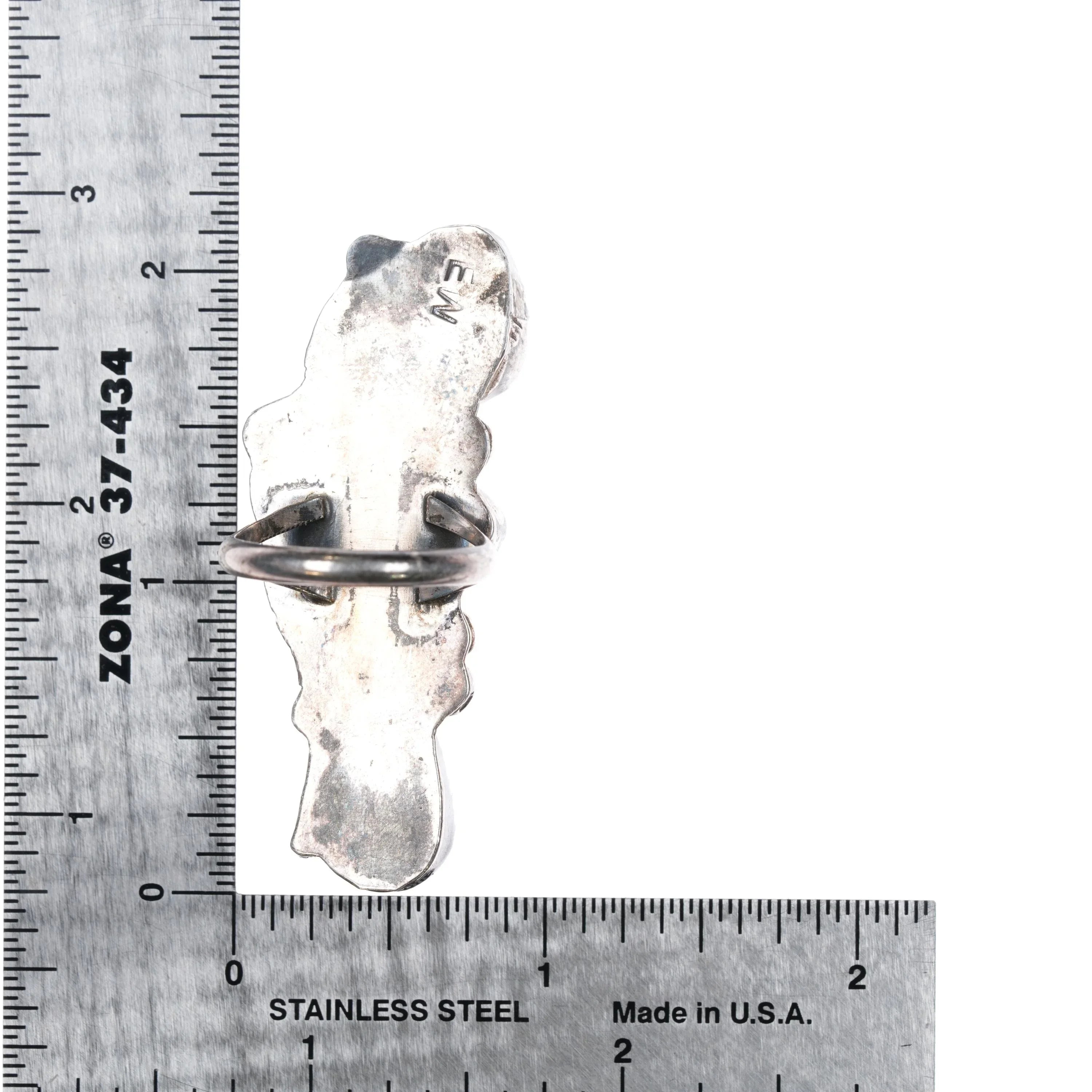 sz9.25 Ernest Wood Navajo 1970's long sterling silver ring w/3 turquoise