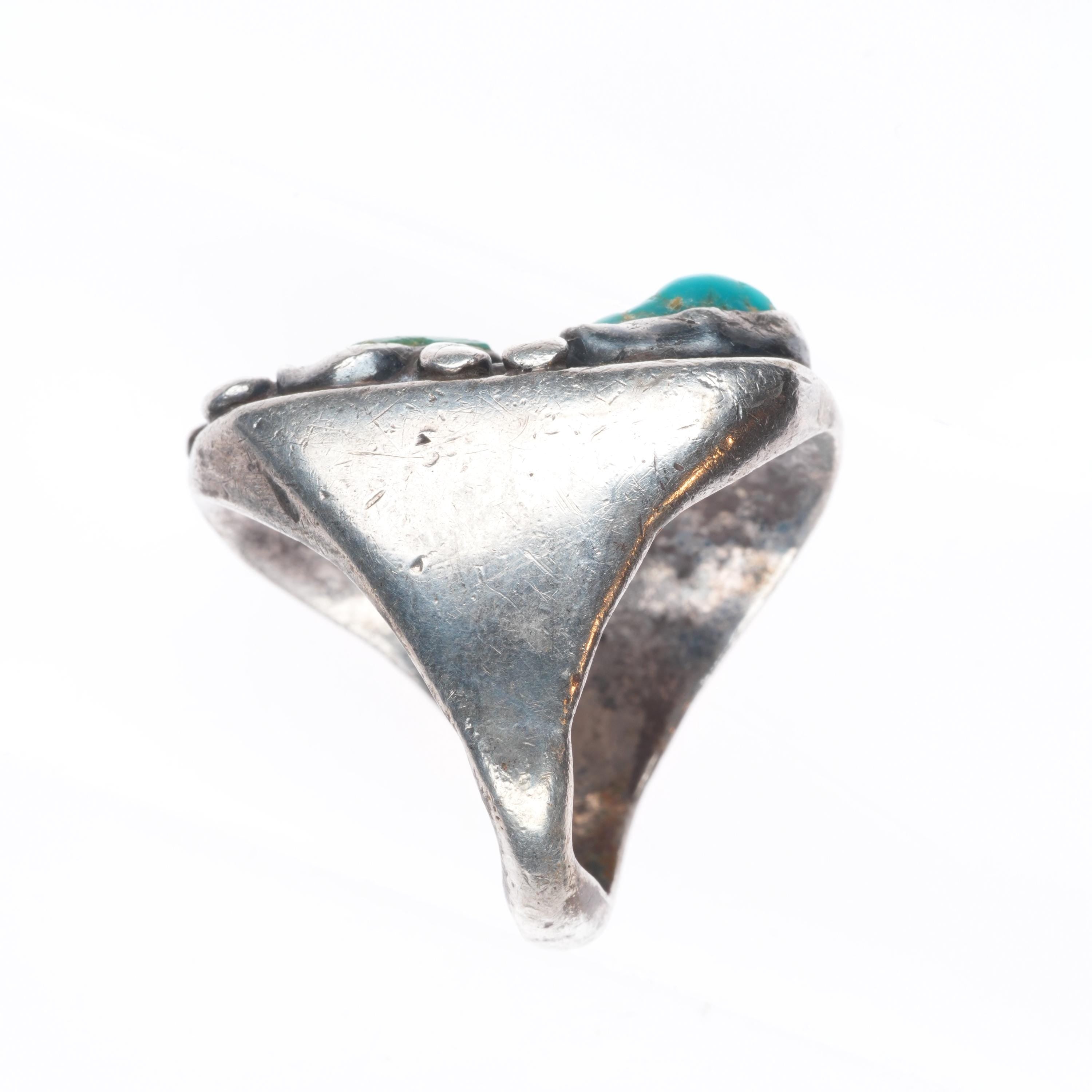sz9 Vintage Navajo sterling silver green turquoise big face nugget size 9 ring