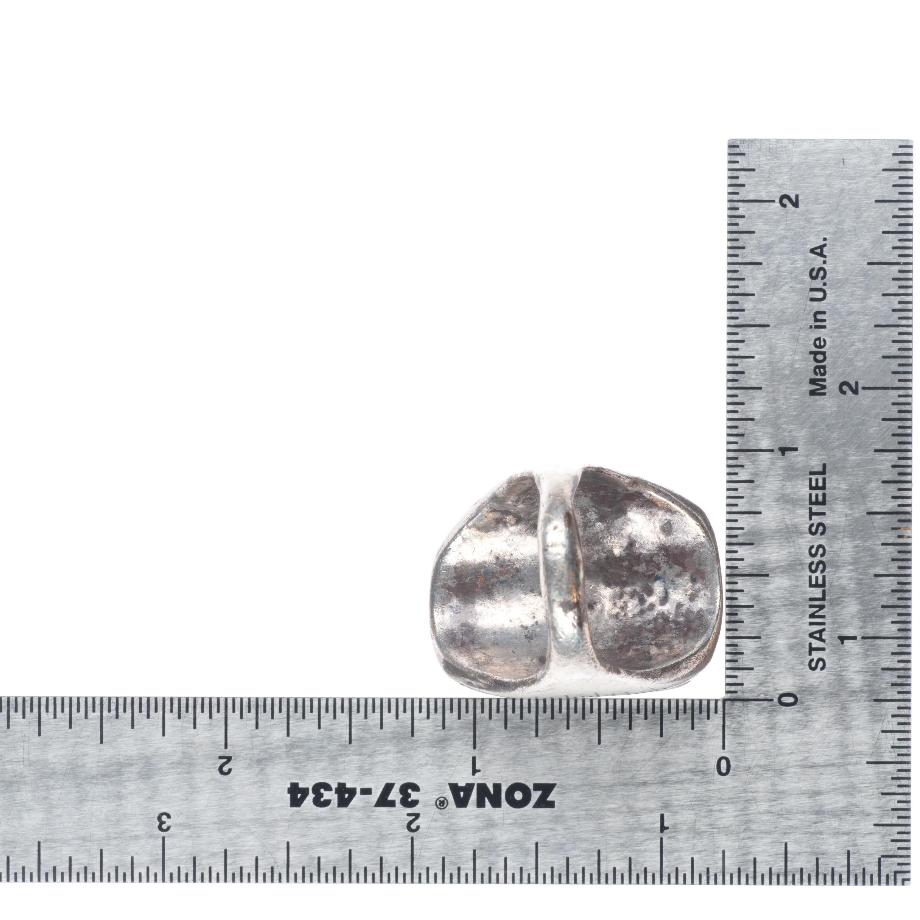 sz9 Vintage Navajo sterling silver green turquoise big face nugget size 9 ring. Tested and guaranteed solid sterling silver. Nice ring from the third quarter of the 20th century. Some expected wear, weight and measurements in pictures. Apparently unmarked.