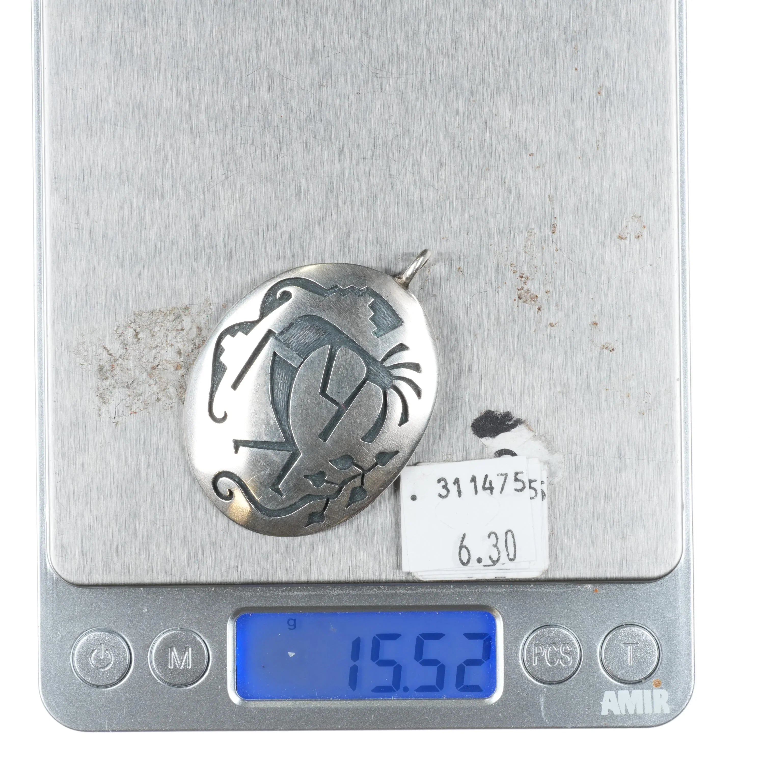 Troy Hoyungwa Hopi Overlay pendant sterling silver Kokopelli flute player. Solid sterling silver, marked as shown with weight and measurements in the pictures. No damage or significant wear.