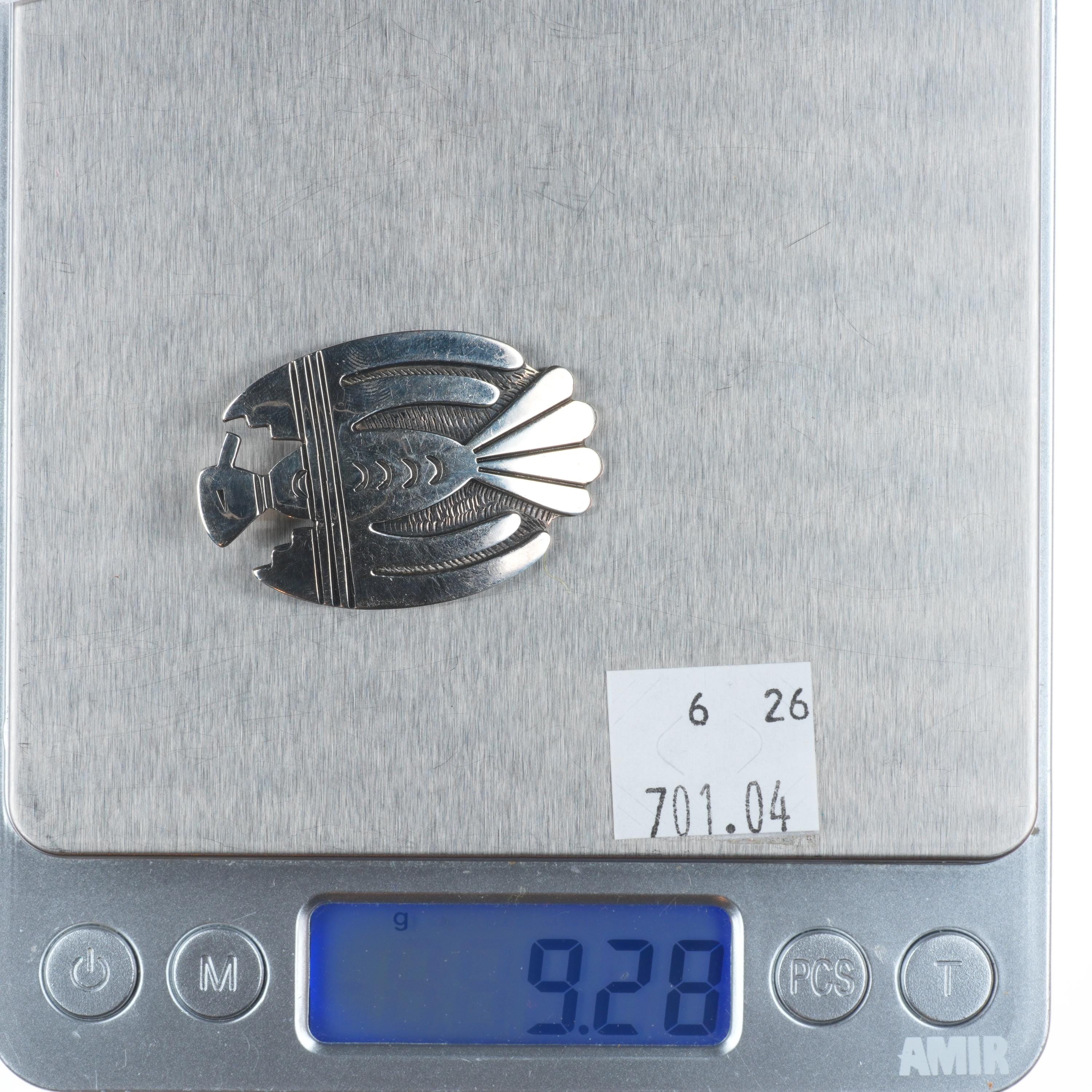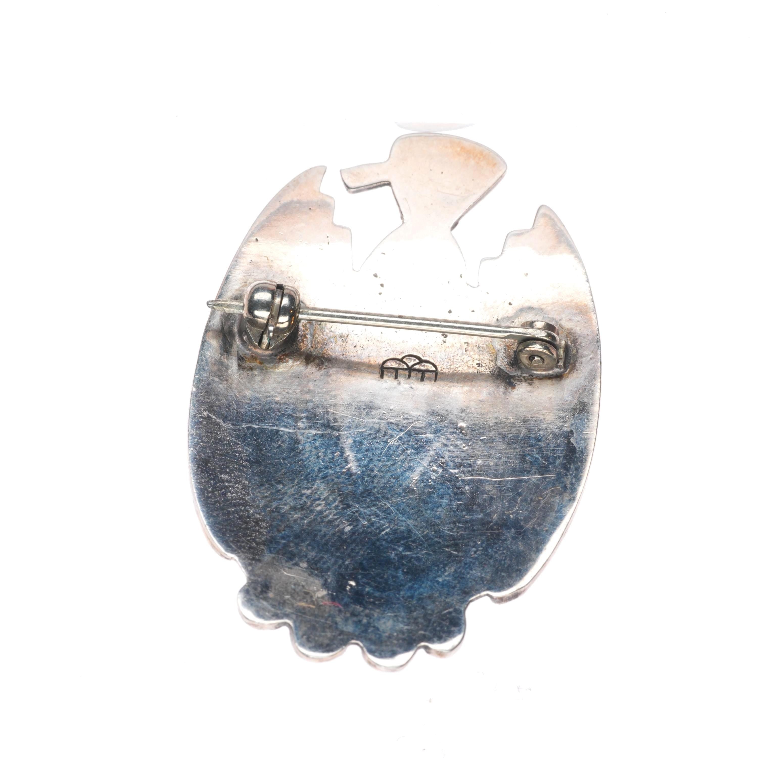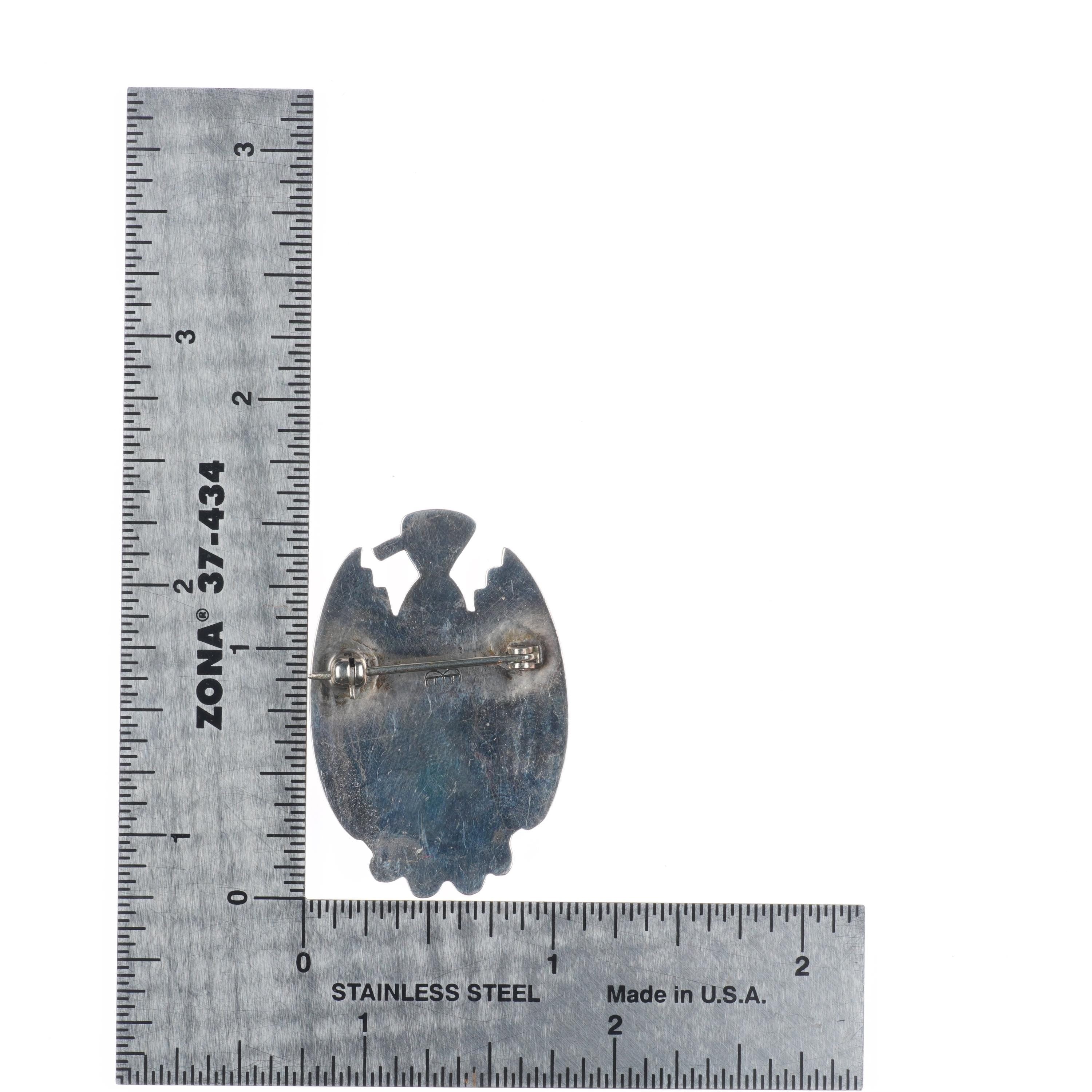 Victor Coochwytewa Hopi overlay thunderbird pin/brooch sterling silver. Weight and measurements in pics, all solid sterling. Tested and guaranteed solid sterling silver. Circa third quarter of the 20th century.