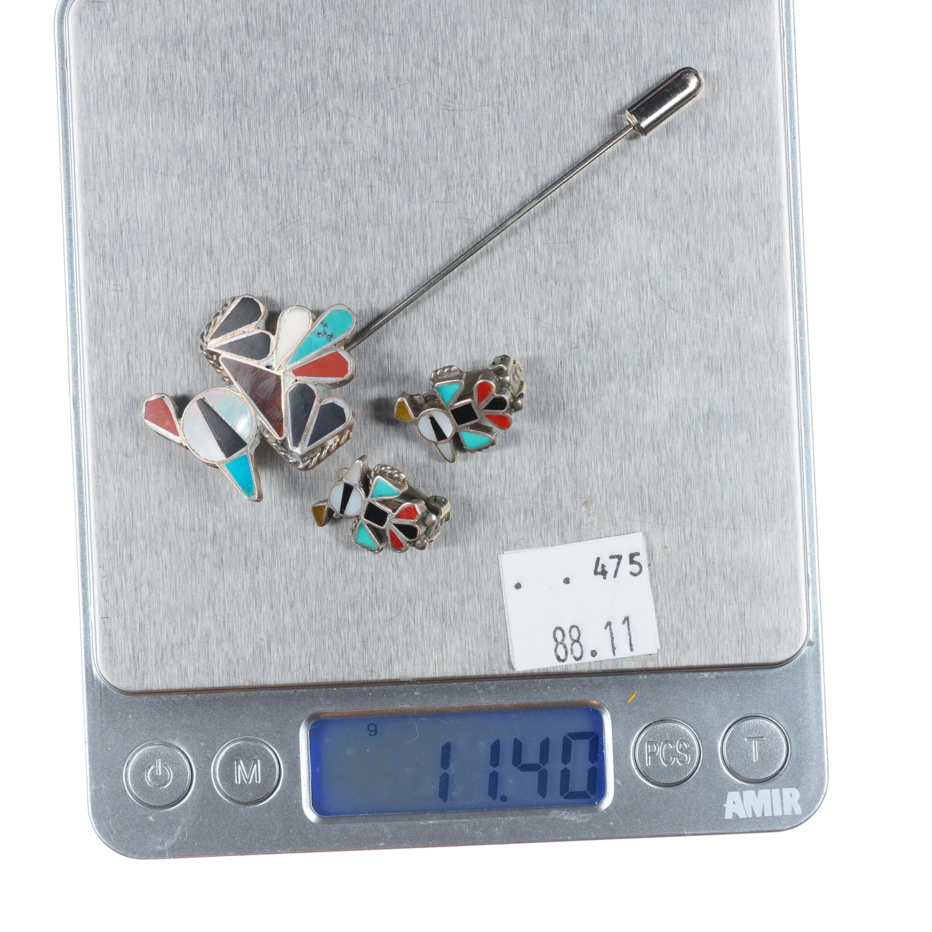 Vintage 1950‘s-60‘s Zuni sterling silver thunderbird stickpin/clip on earrings. Great earrings and pin with no issues, tested and guaranteed solid sterling silver, any marks detected, weight, and measurements will be shown in the pictures. Circa third quarter of the 20th century.