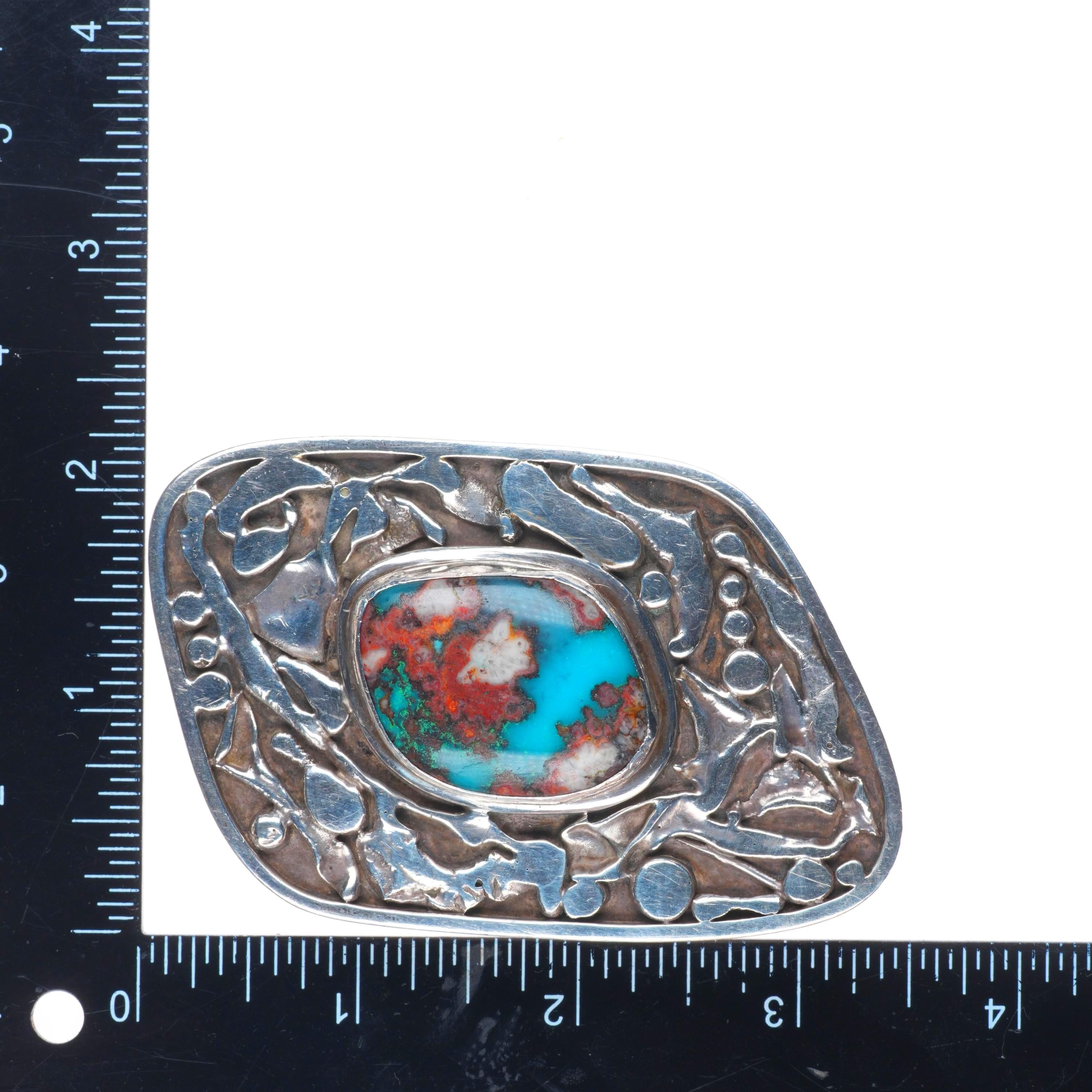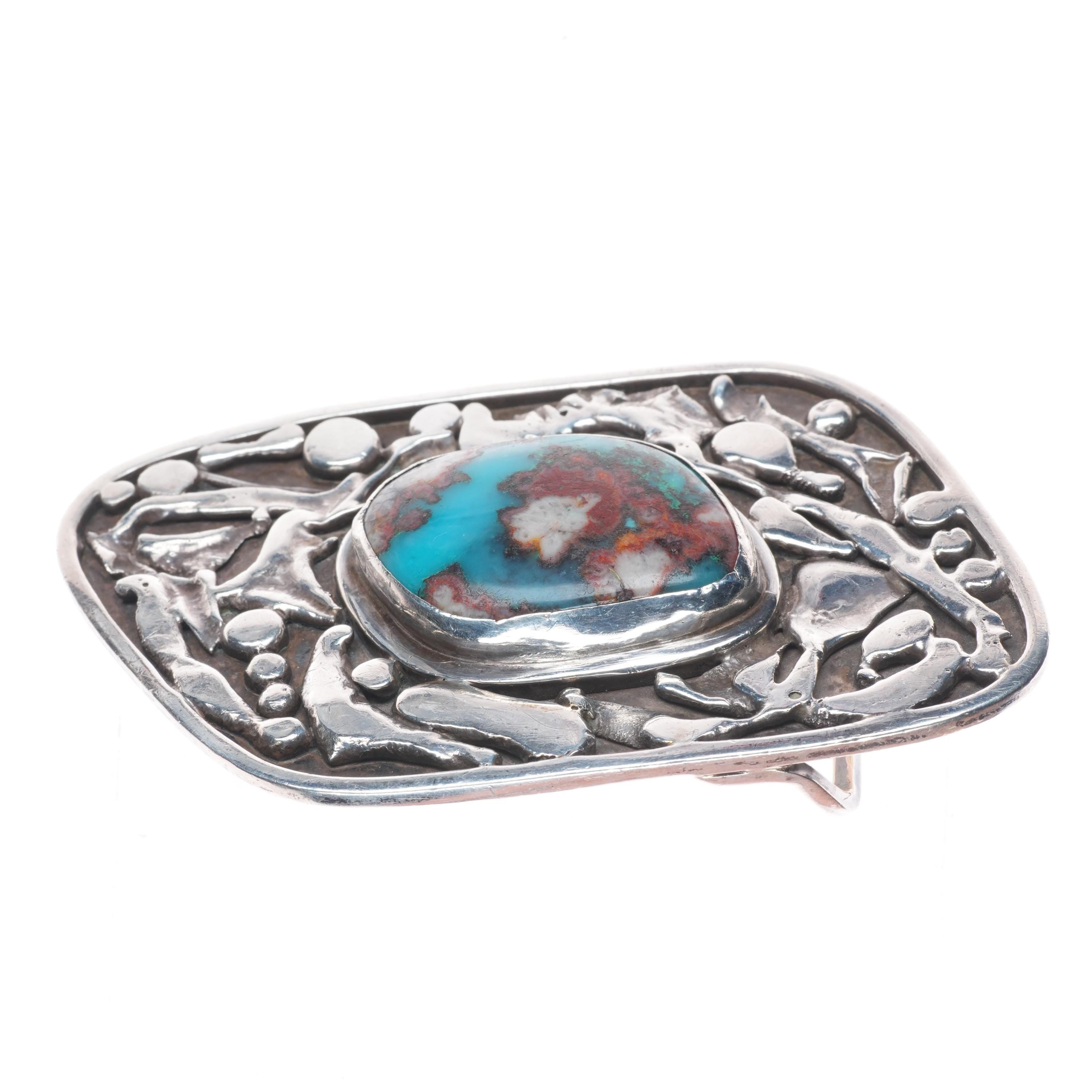 Vintage Bisbee turquoise southwestern brutalist sterling silver belt buckle. Tested and guaranteed solid sterling silver with weight and measurements in pictures. Fully functional. All items will likely have some age appropriate/expected wear, the older they are the more wear they should have. Circa third quarter of the 20th century.. Fits up to a 1.75" belt.
