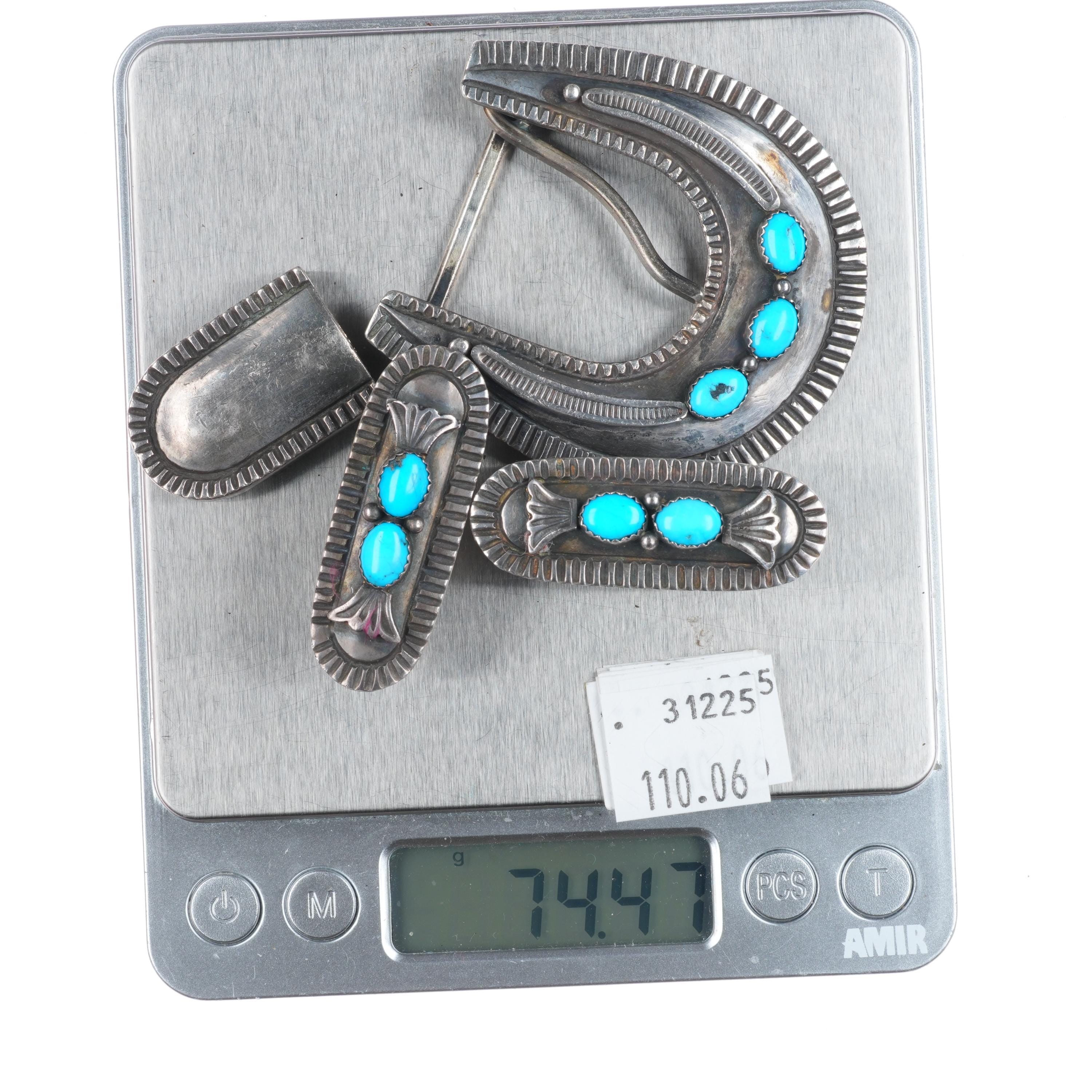 Vintage Harry Morgan Navajo sterling silver turquoise 1" ranger belt buckle set