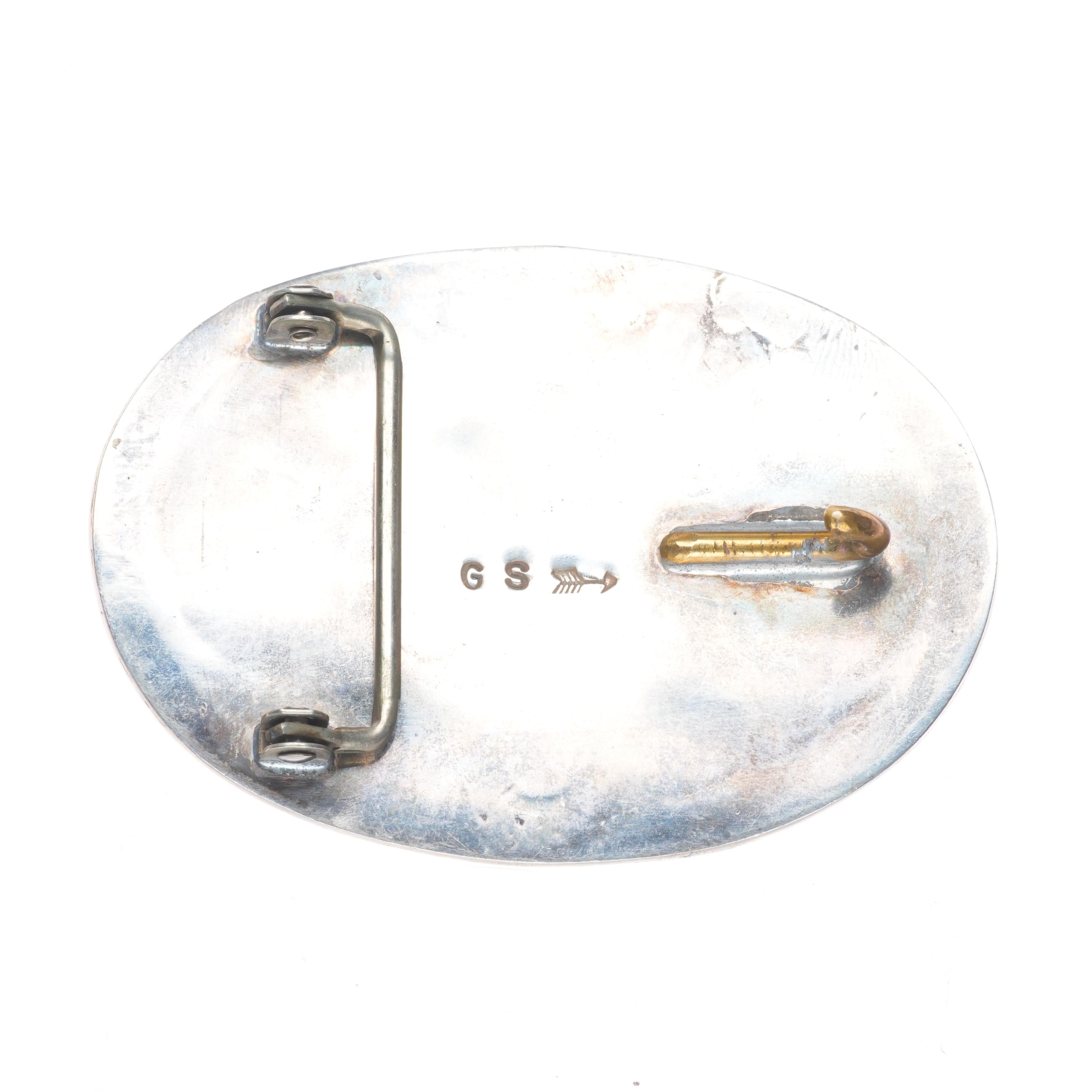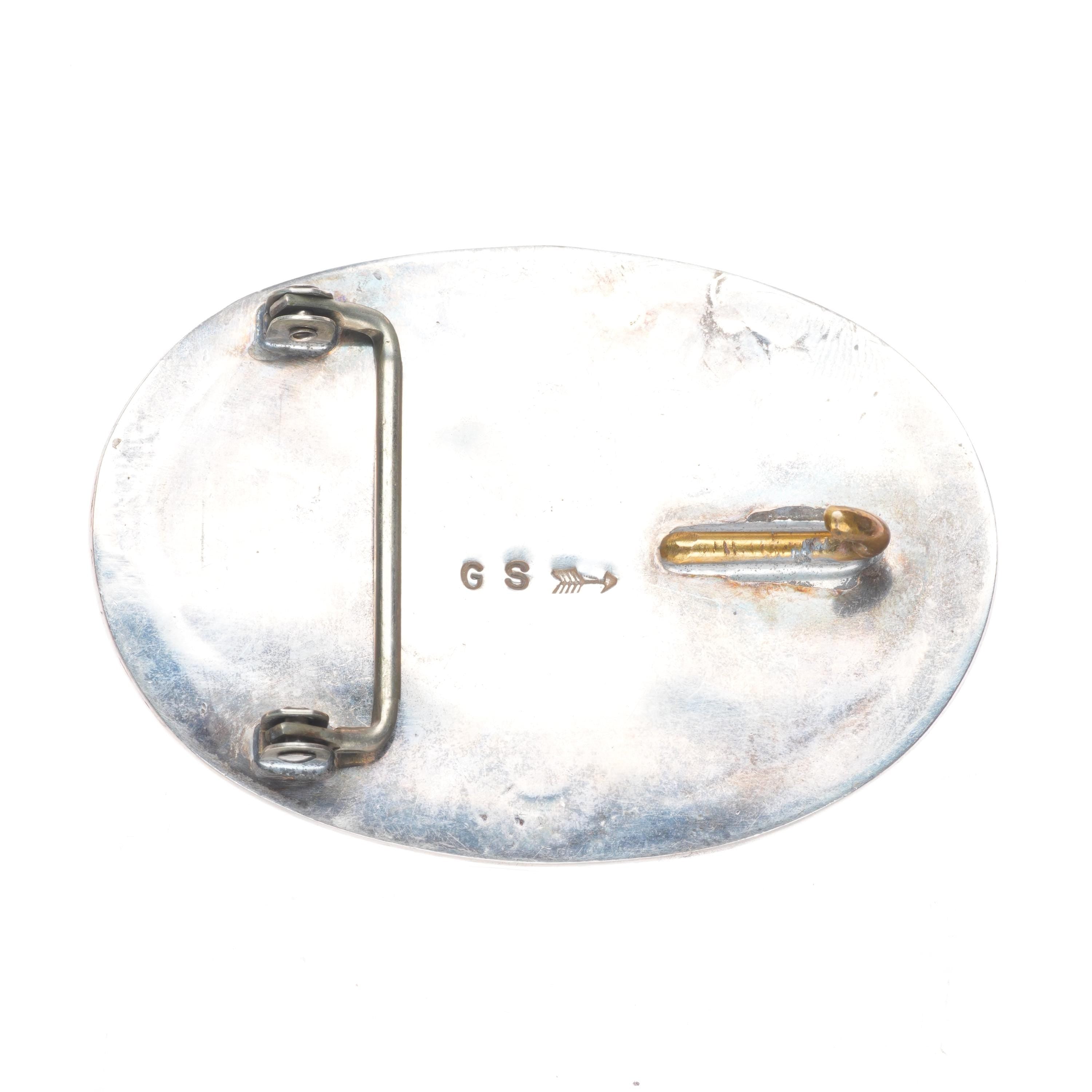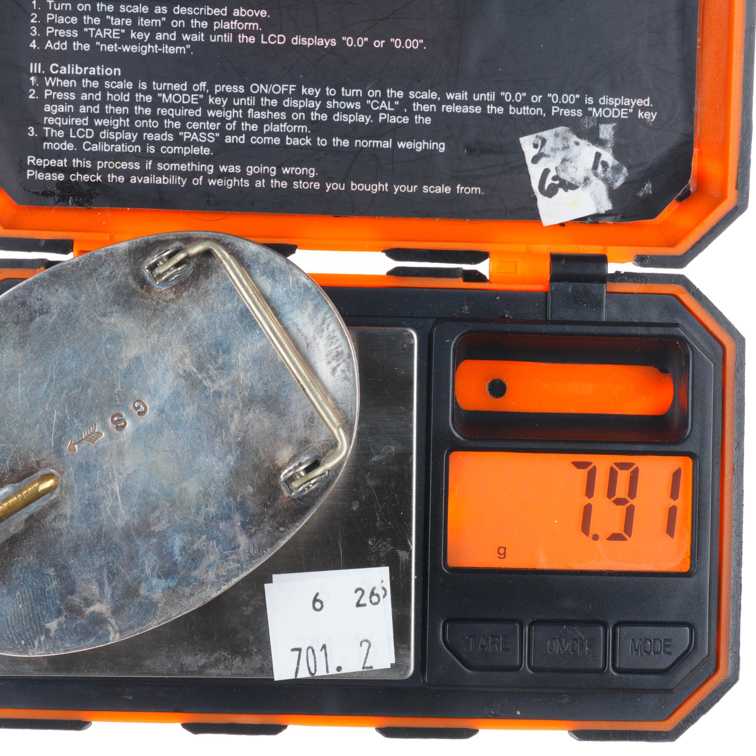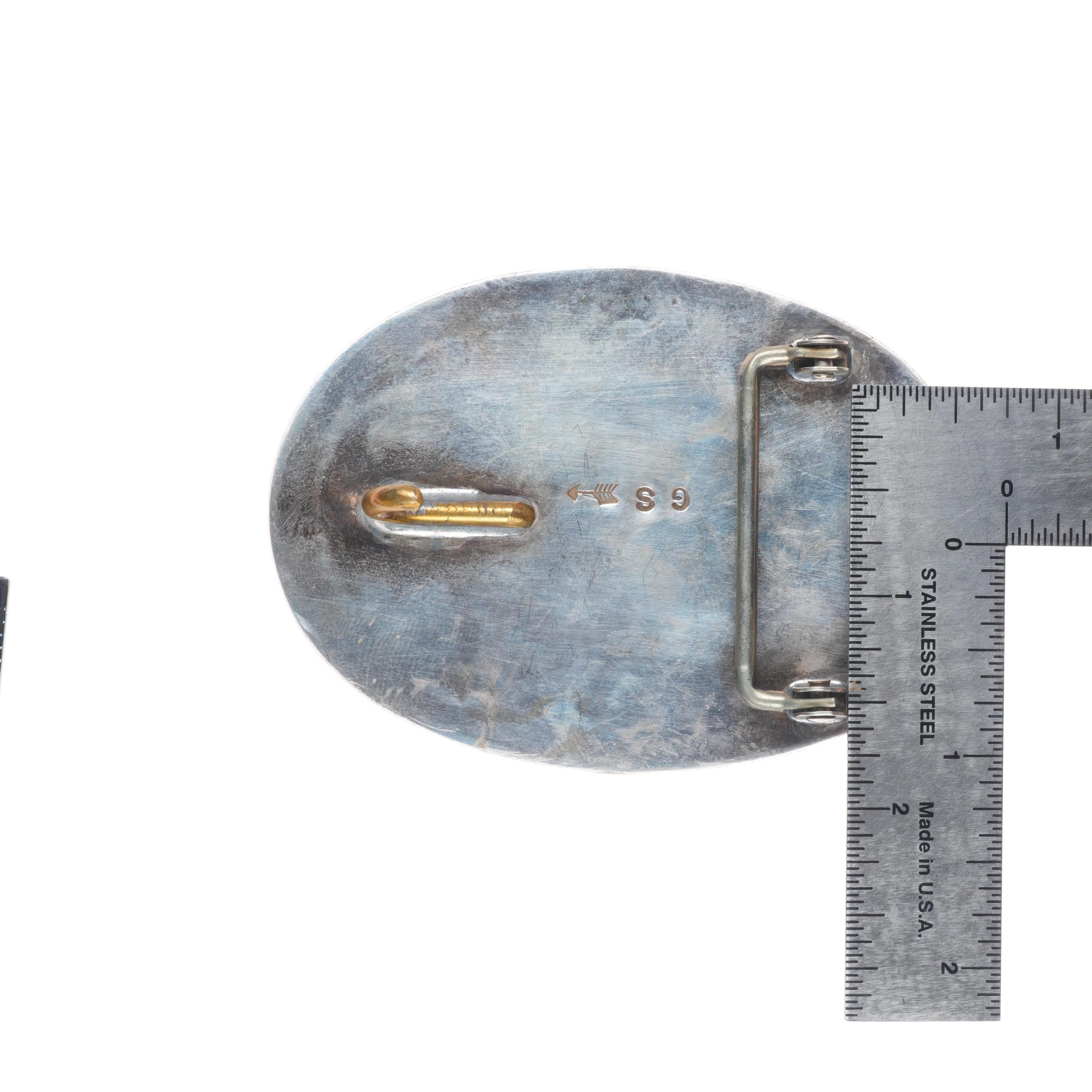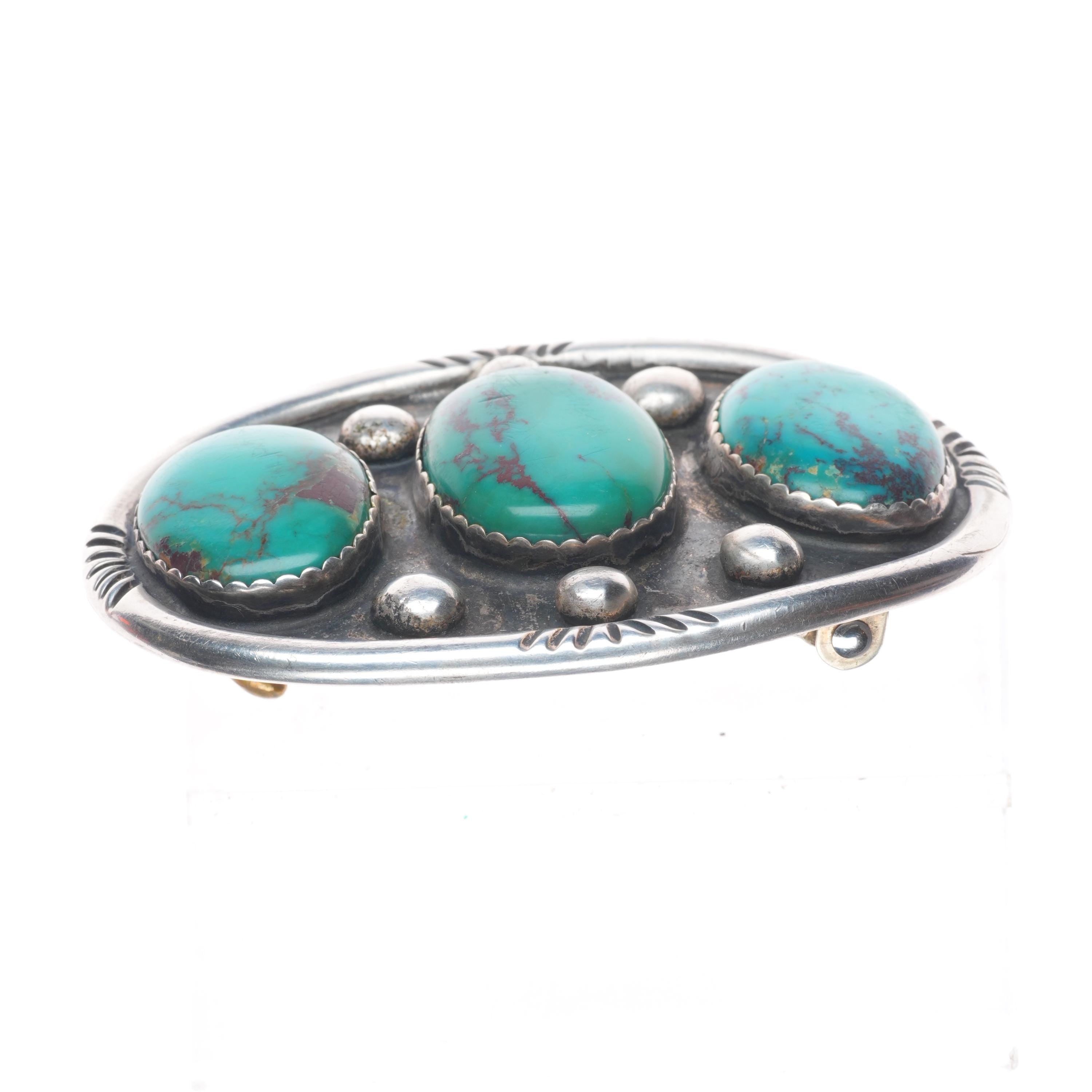 Vintage Navajo sterling silver 3 stone green turquoise belt buckle. Tested and guaranteed solid sterling silver with weight and measurements in pictures. Fully functional. All items will likely have some age appropriate/expected wear, the older they are the more wear they should have. Circa third quarter of the 20th century.. Fits up to a 1.5" belt. Scale pic is off, this is about 85 grams.