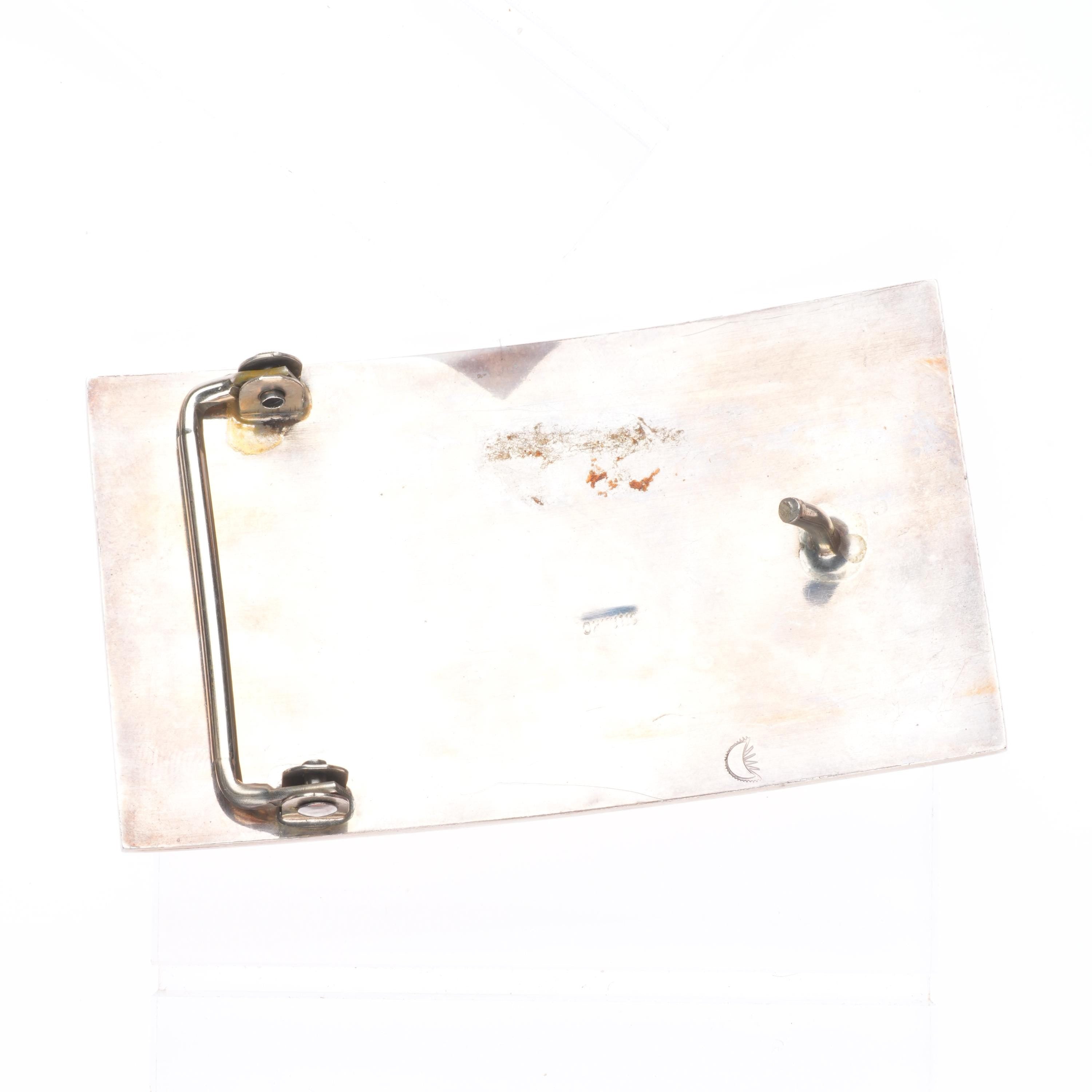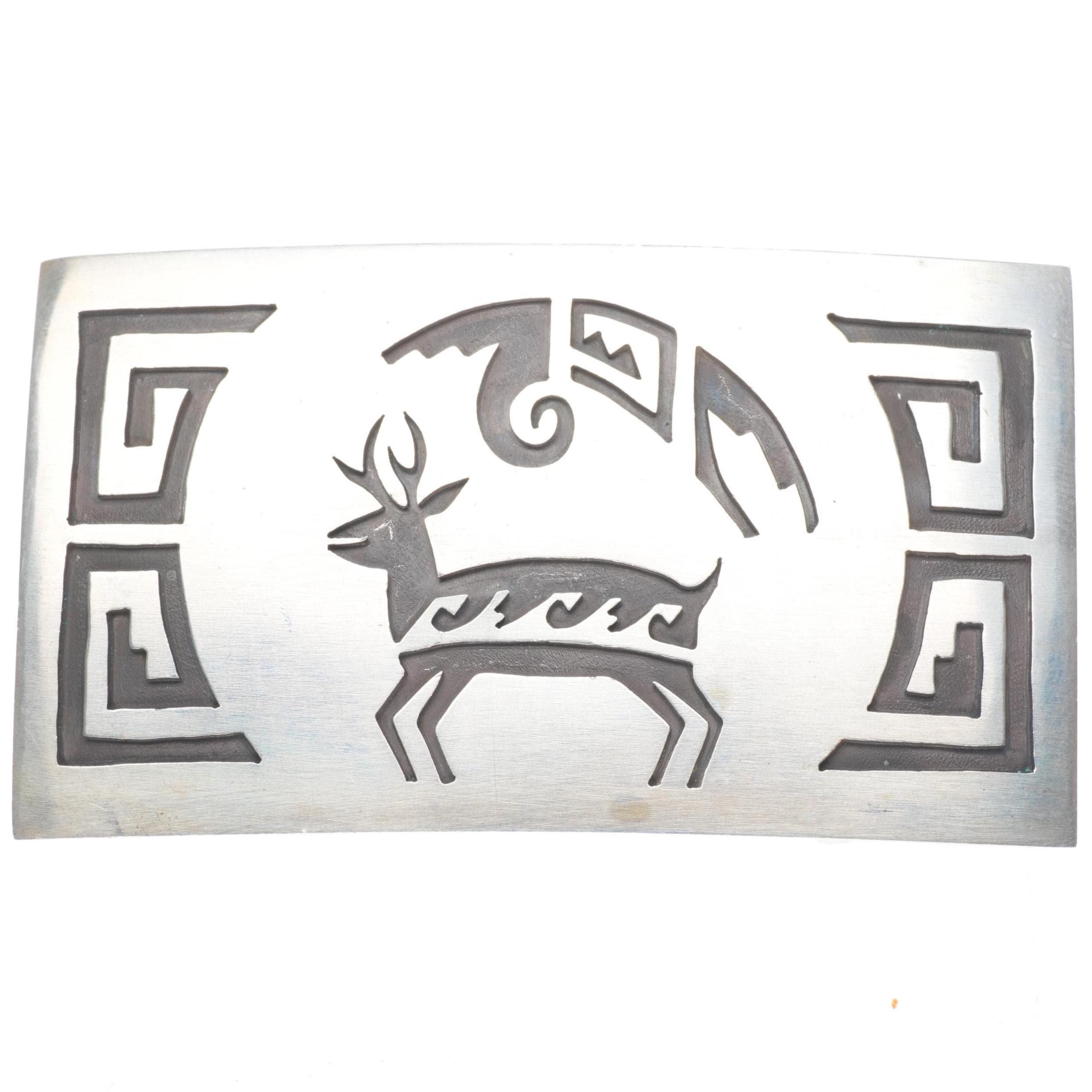 Vintage Navajo sterling silver deer overlay belt buckle. Tested and guaranteed solid sterling silver with weight and measurements in pictures. Fully functional. All items will likely have some age appropriate/expected wear, the older they are the more wear they should have. Circa last quarter of the 20th century.. Fits up to a 1.5" belt.