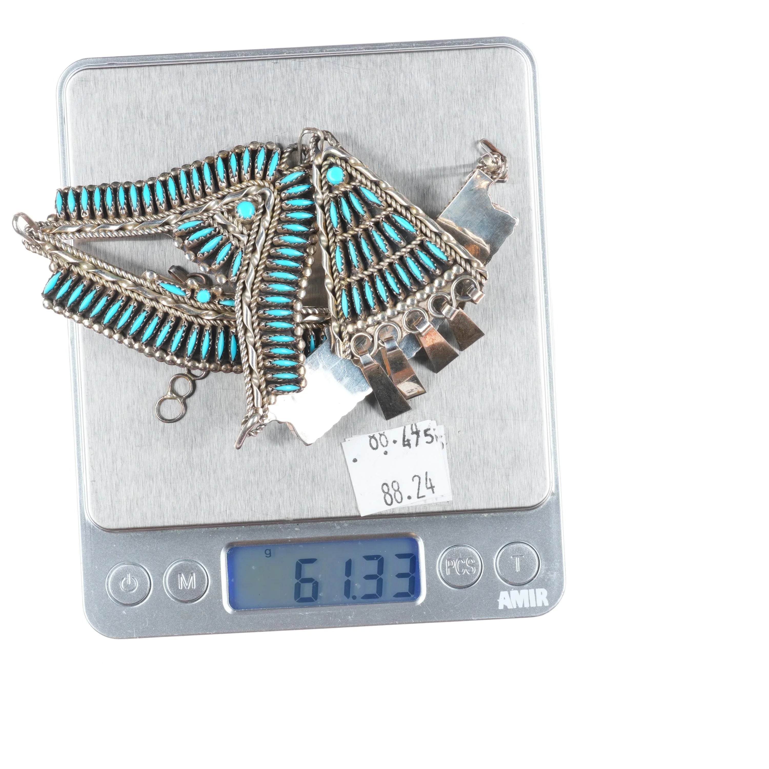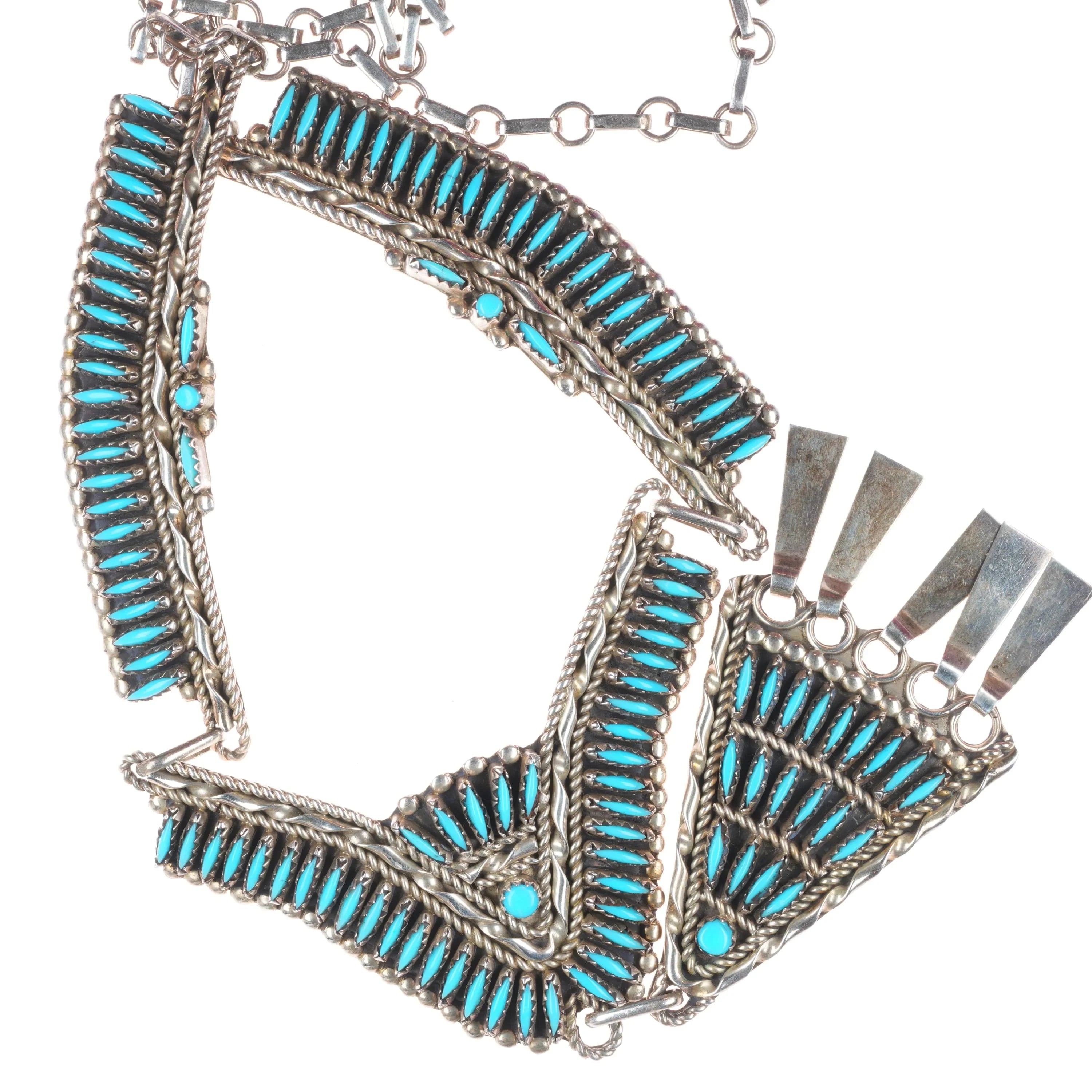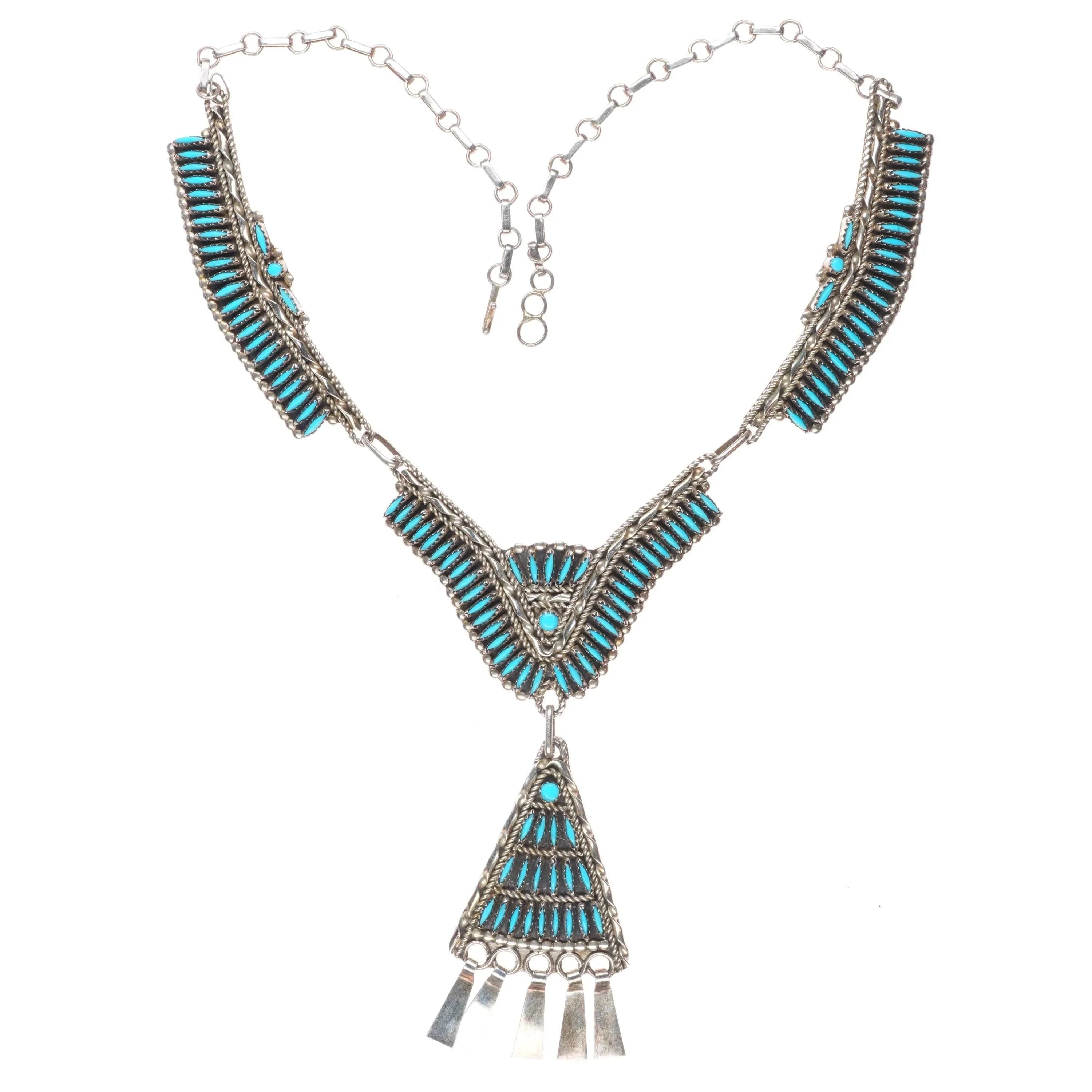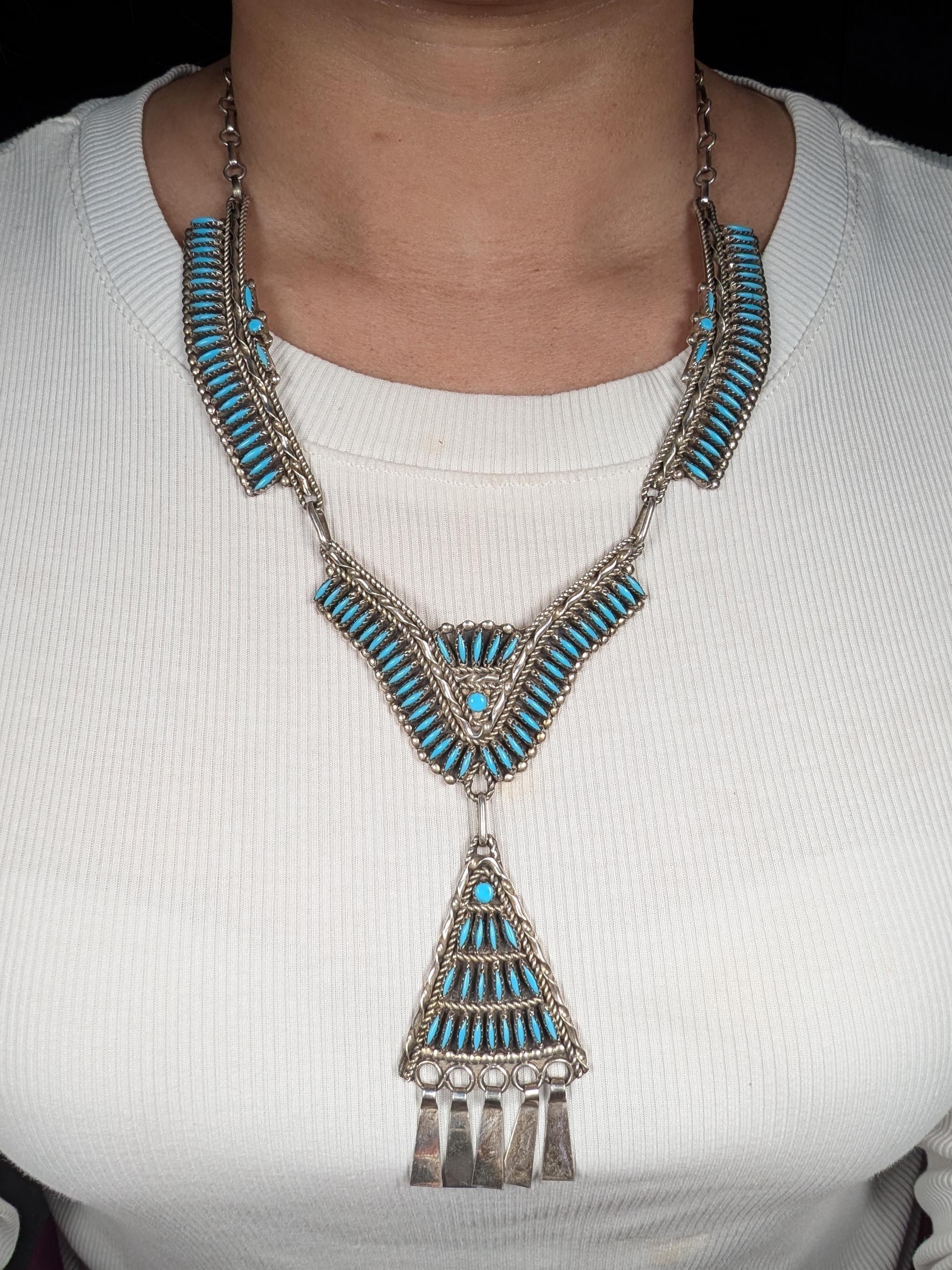 Vintage Nelson Harry Zuni sterling silver needlepoint turquoise necklace