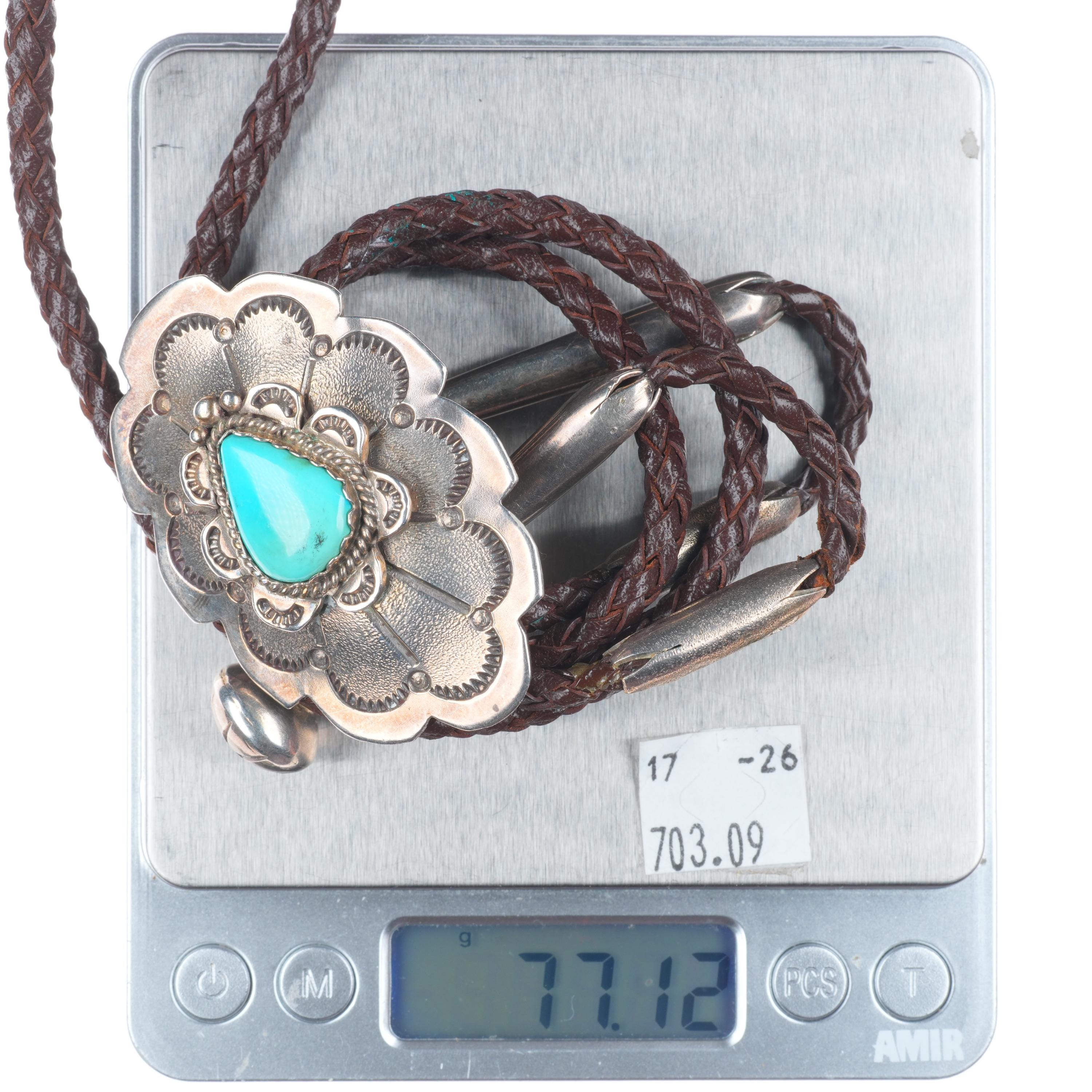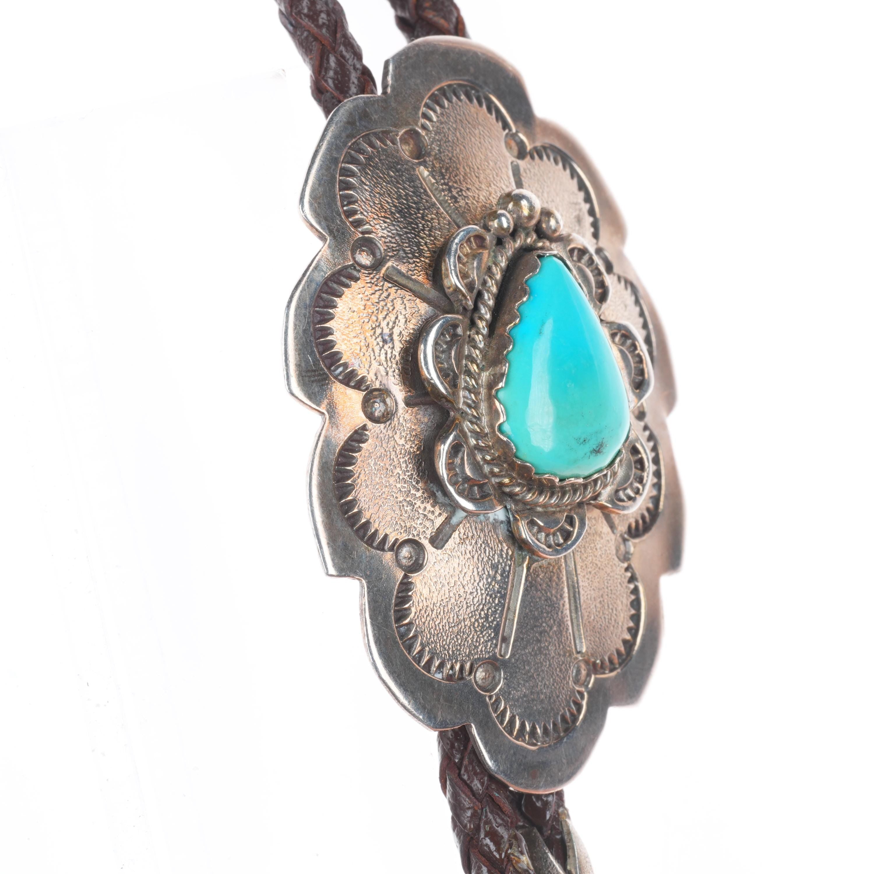 Vintage RBA Navajo sterling silver bolo tie with fancy tips and turquoise Share WhatsApp Facebook X Pin it Messenger Email Product form $475.00 Excl. VAT 1 in stock Quantity Add to cart This item is a recurring or deferred purchase. By continuing, I agree to the cancellation policy and authorize you to charge my payment method at the prices, frequency and dates listed on this page until my order is fulfilled or I cancel, if permitted.
