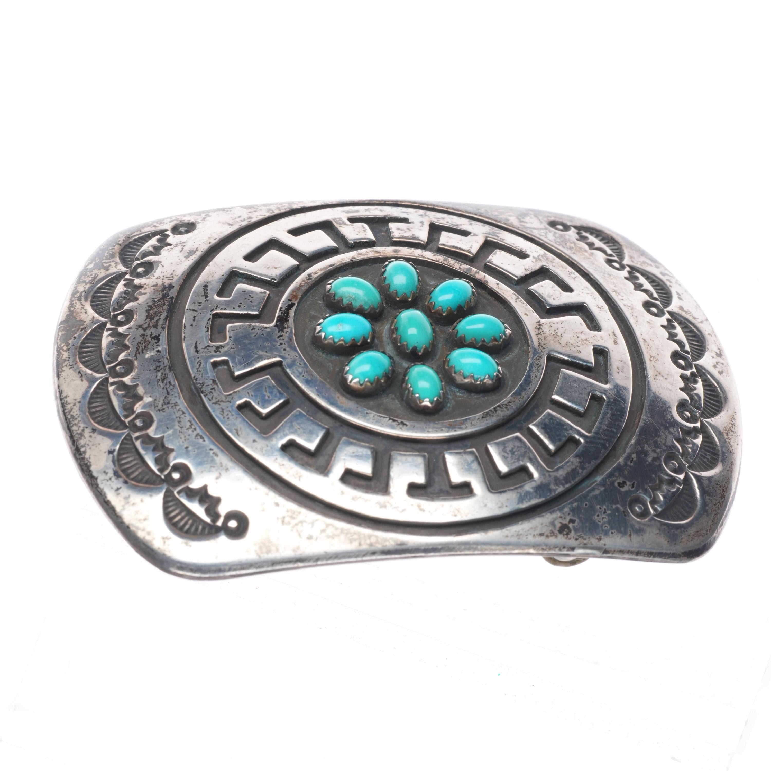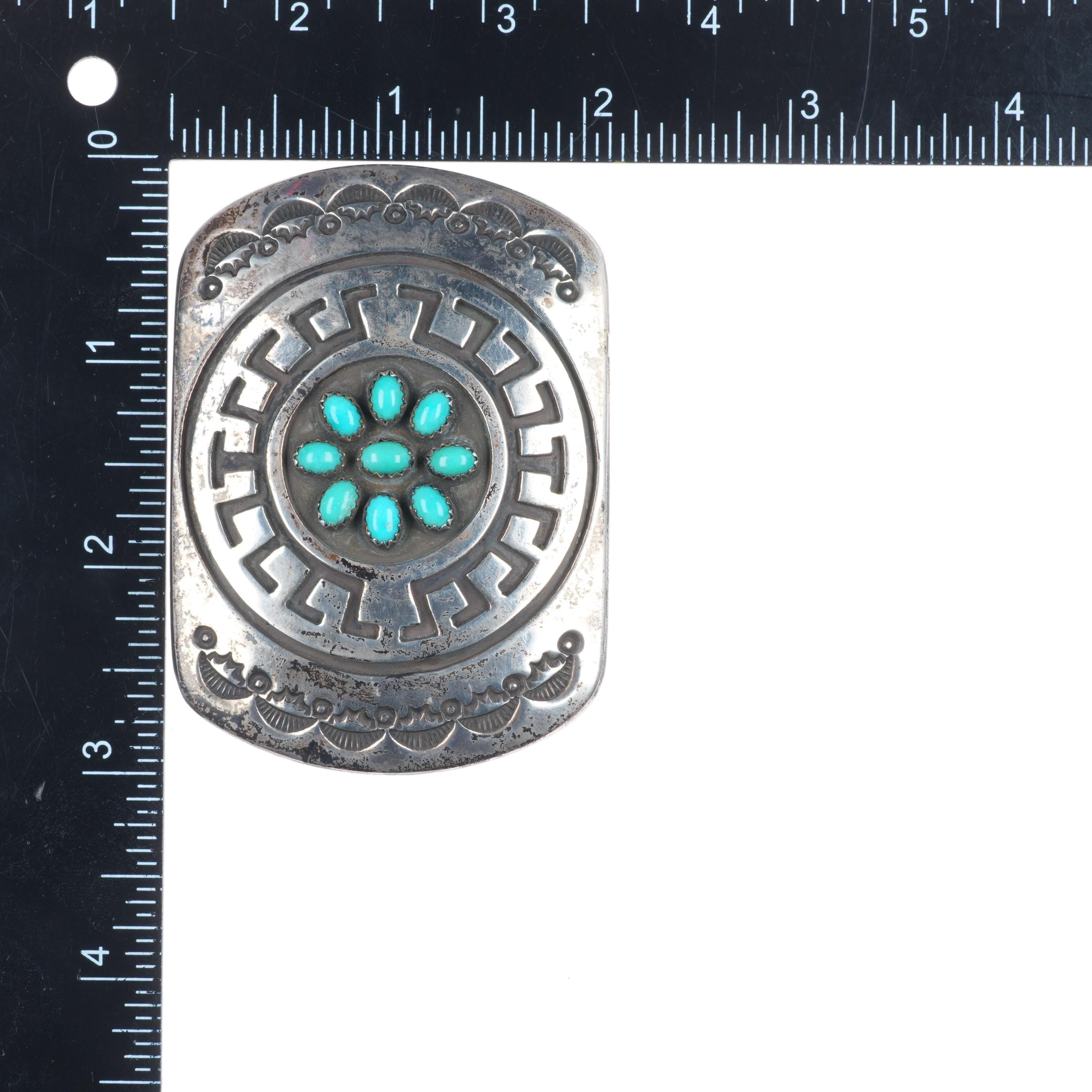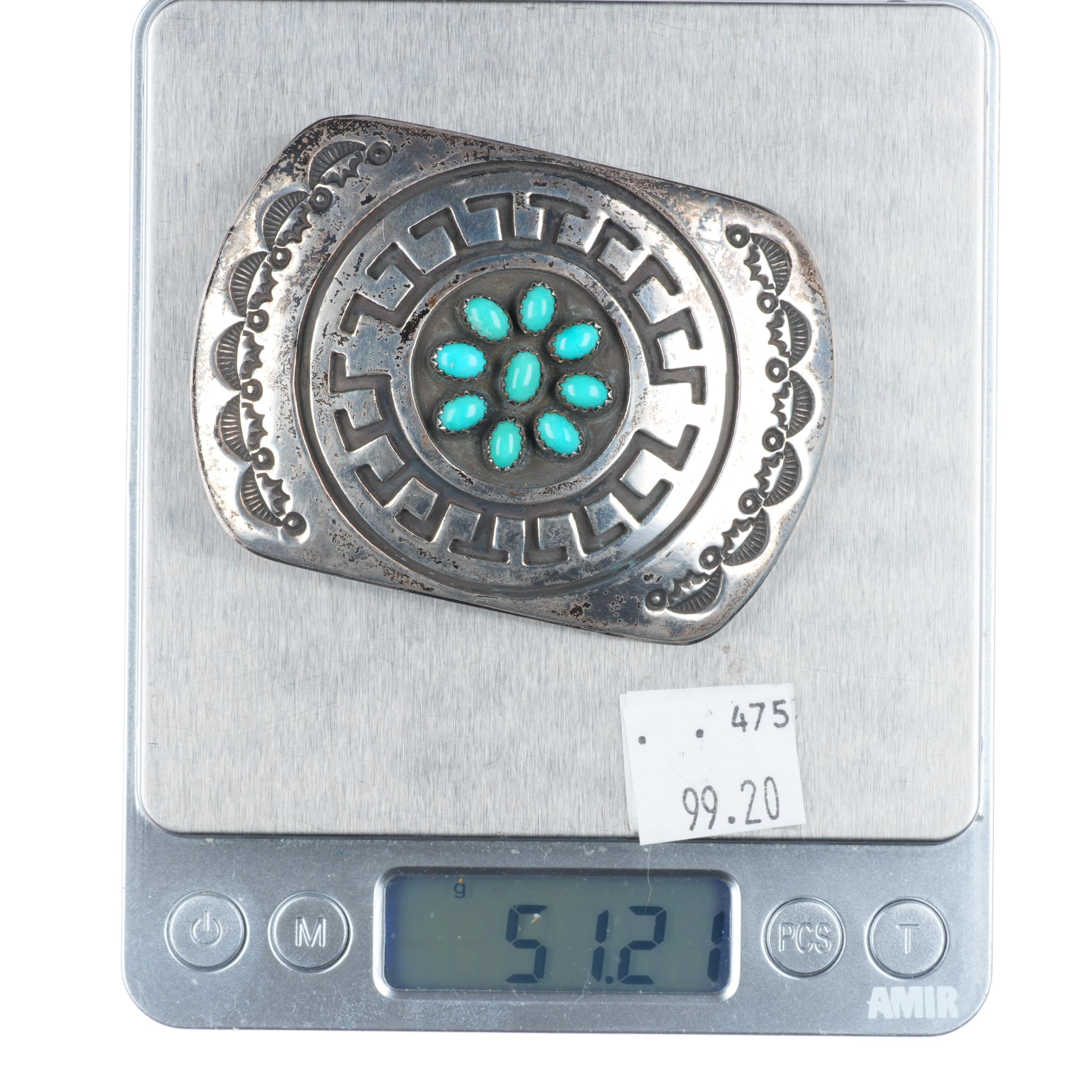 Vintage Roscoe Scott Navajo sterling silver turquoise cluster belt buckle