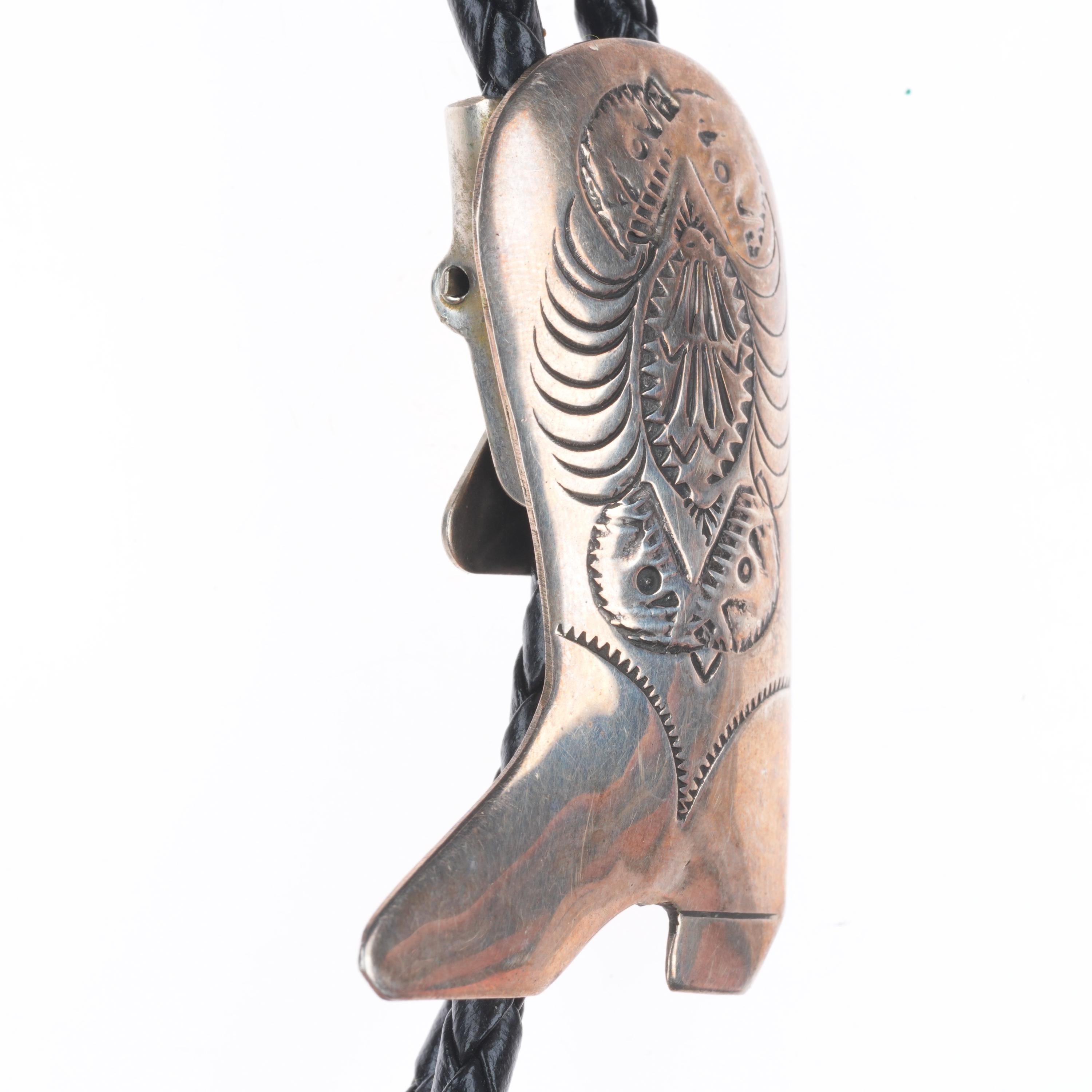 Vintage Southwestern sterling silver cowboy boot form bolo tie
