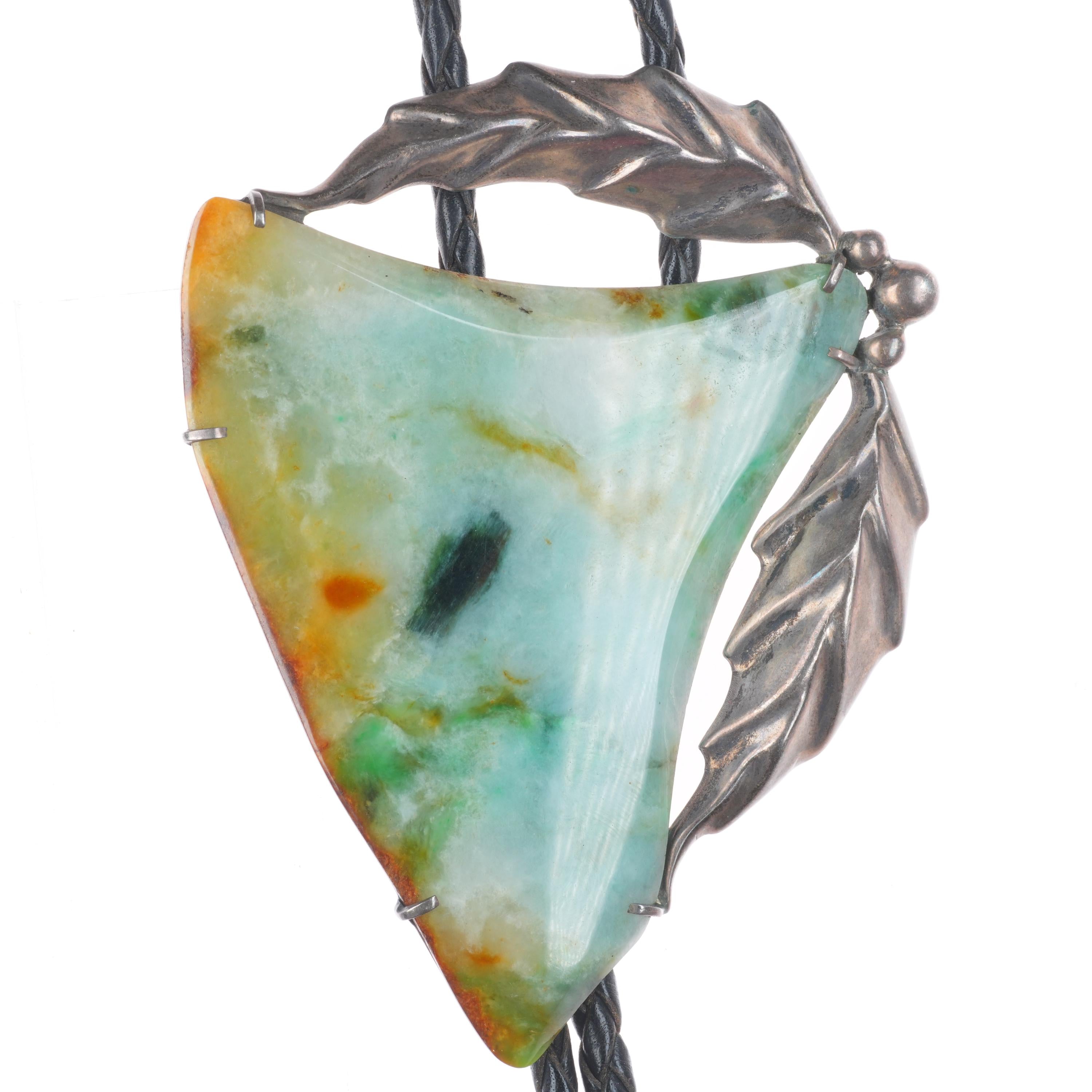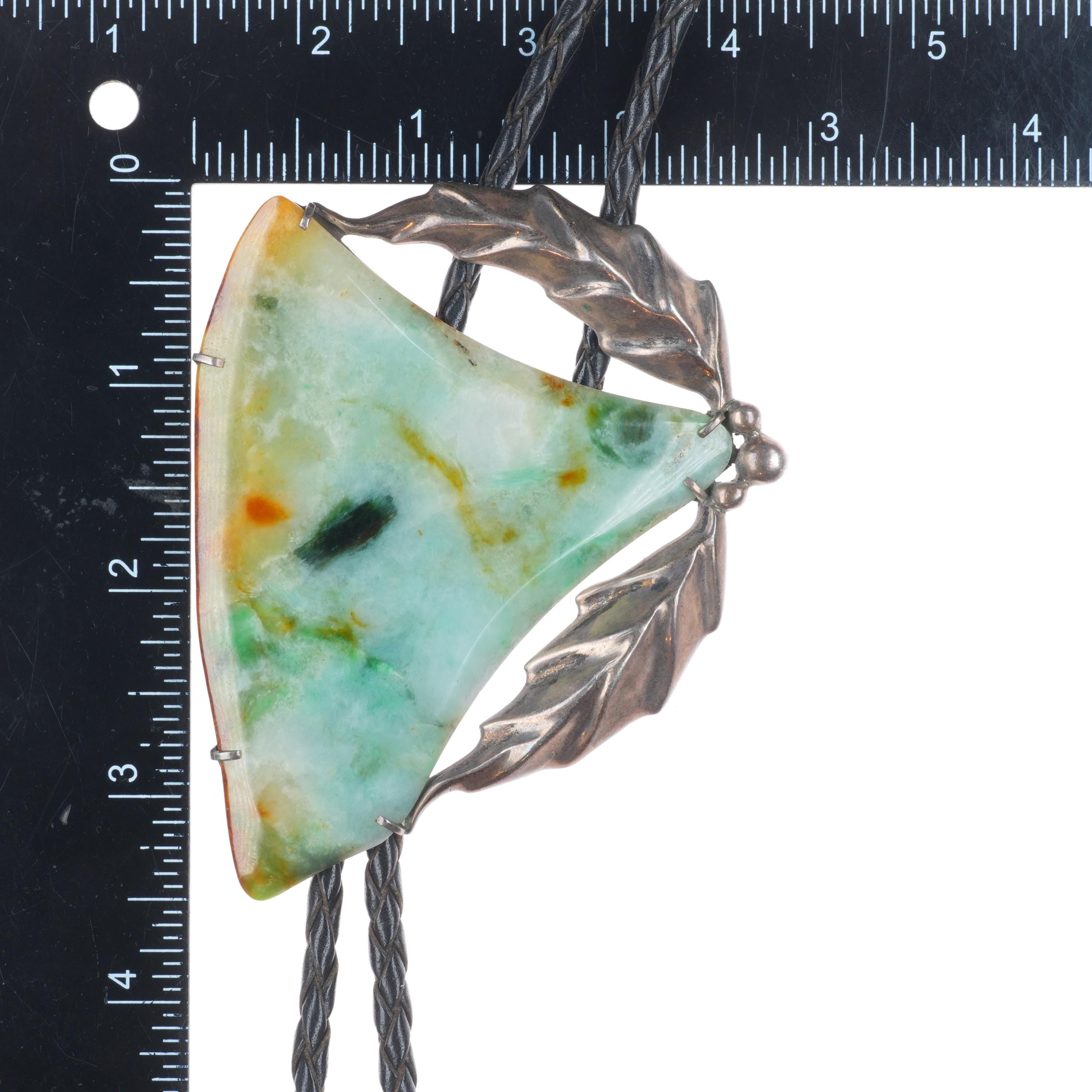 Vintage Southwestern sterling silver gemstone sterling silver large bolo tie.   Tested and guaranteed solid sterling silver slide and tips. Weight and measurements in pictures. Great bolo, 42" long with no issues. Weight shown is the entire bolo. Nice stone, some sort of Jade or Opal, petrified something or other.