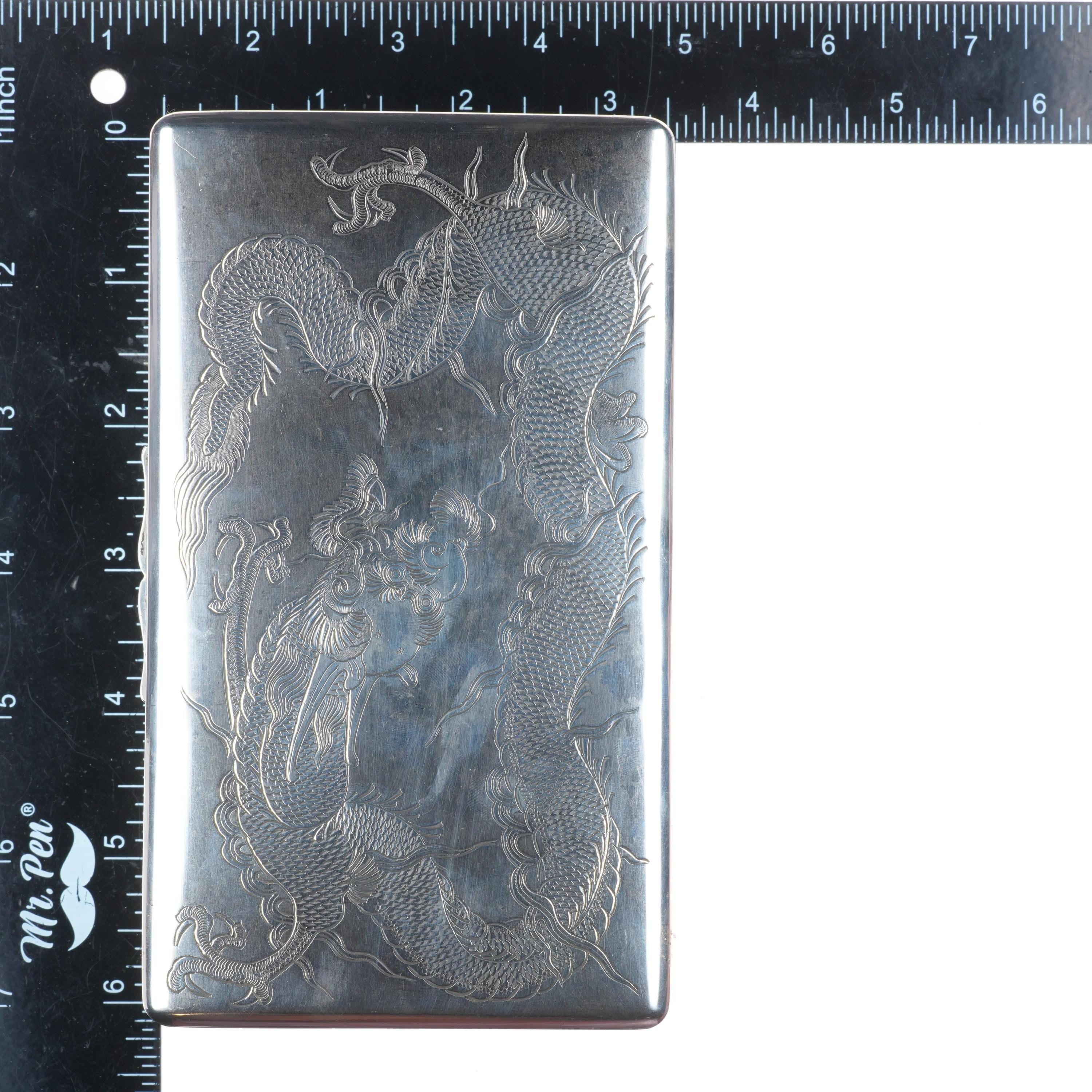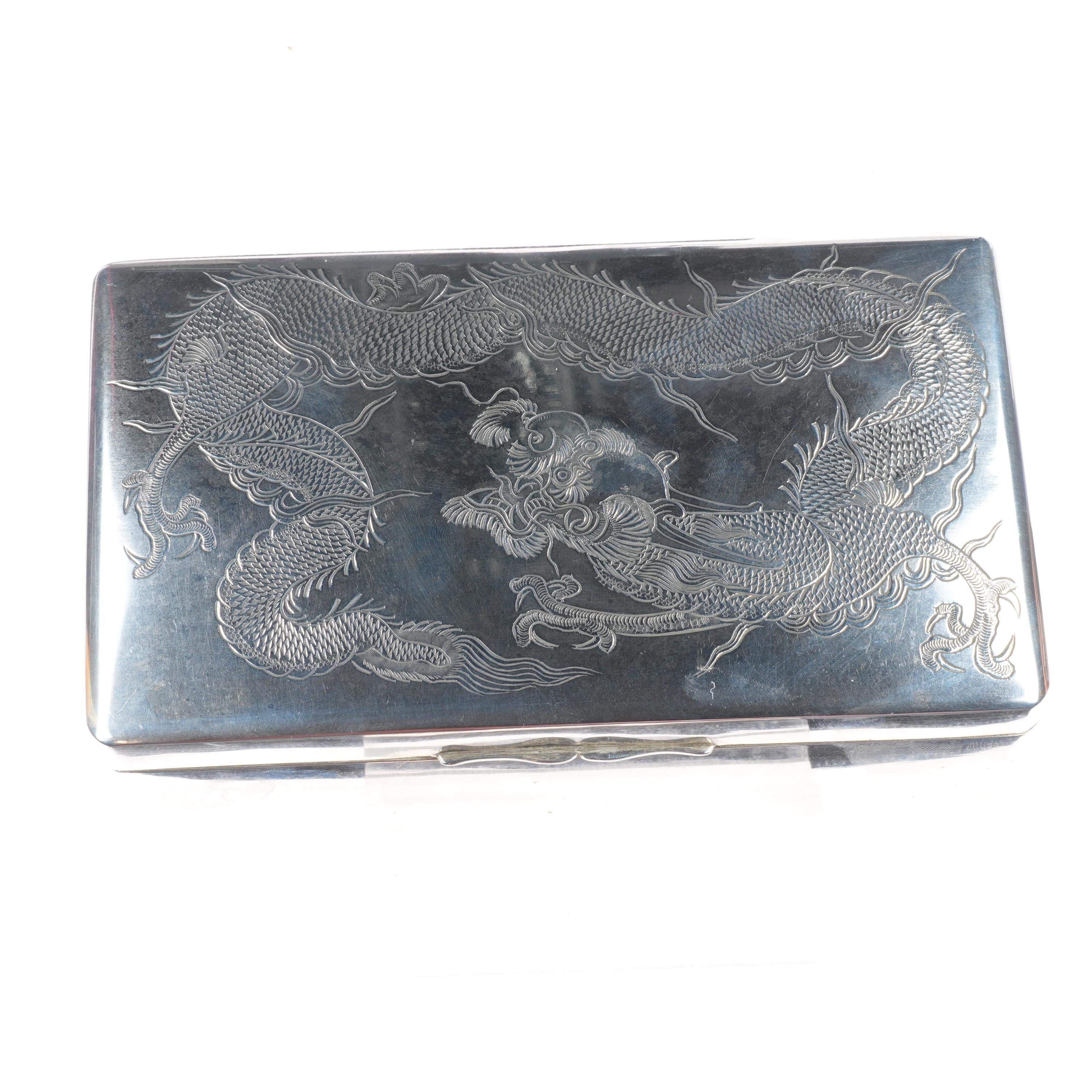 Vintage Wai Kee Chinese Export sterling silver jewelry box with dragon design. Weight and measurements in pictures. Tested and guaranteed solid sterling silver with no issues. Weight and measurements in photos. The wood liner is very lightweight, I have removed many of them. This box was just too nice to scrap for now. Circa ww2 era 1940's.