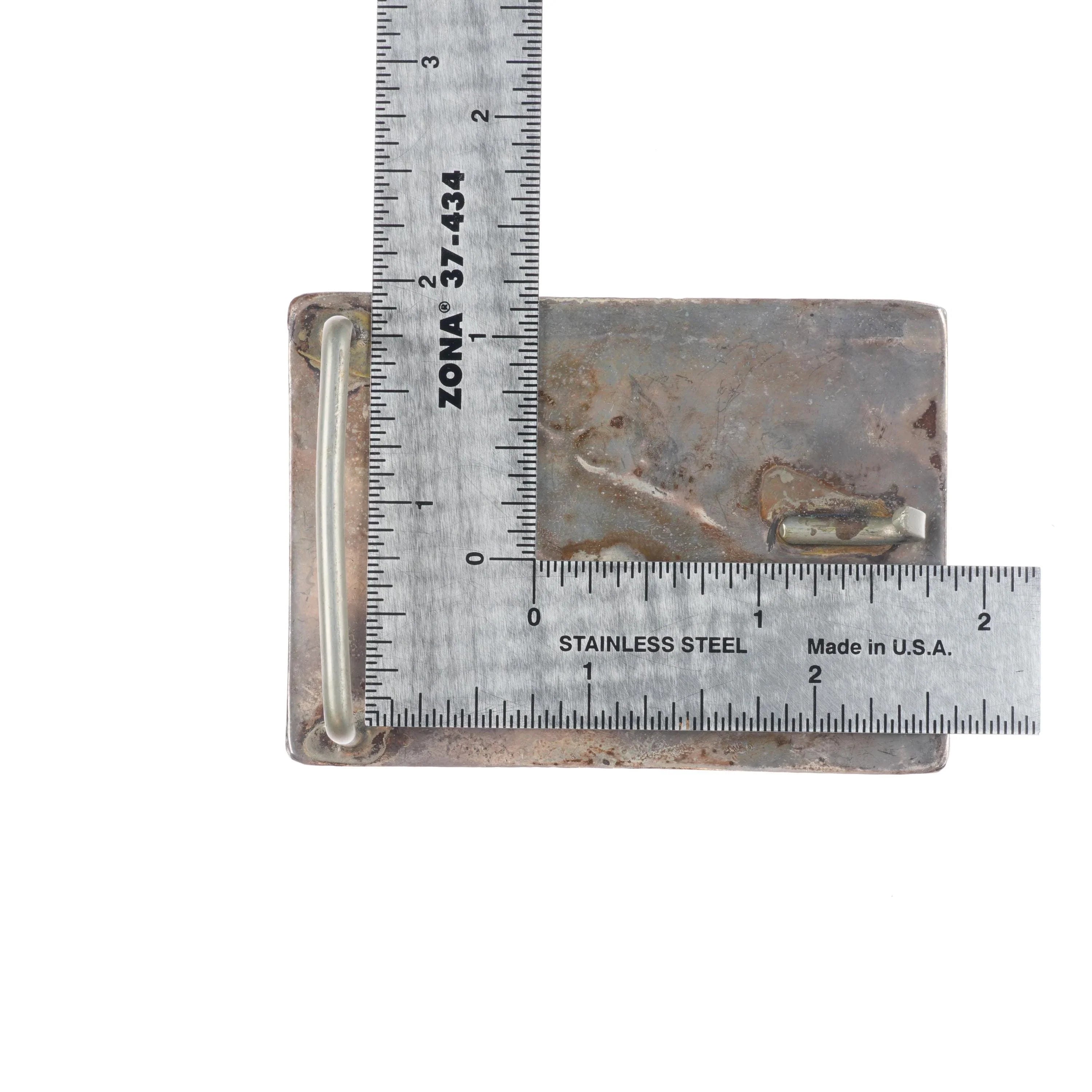 Vintage Zuni sterling silver turquoise cluster feather belt buckle, fits up to a 1.5" wide belt. Tested and guaranteed solid sterling silver. Weight and measurements in pictures, circa third quarter of the 20th century. Unmarked.