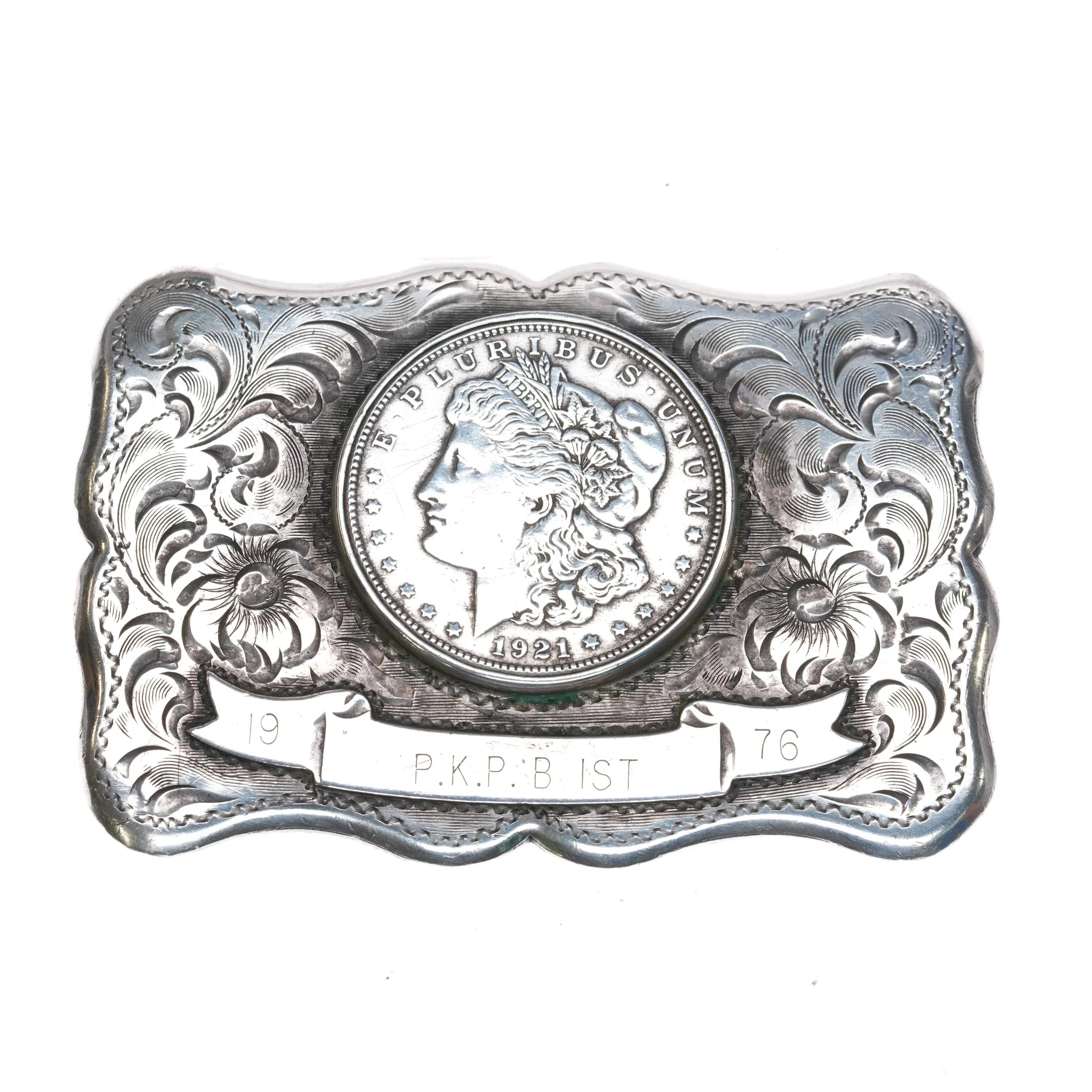 1976 Diablo Hand Engraved Sterling silver US Dollar belt buckle
