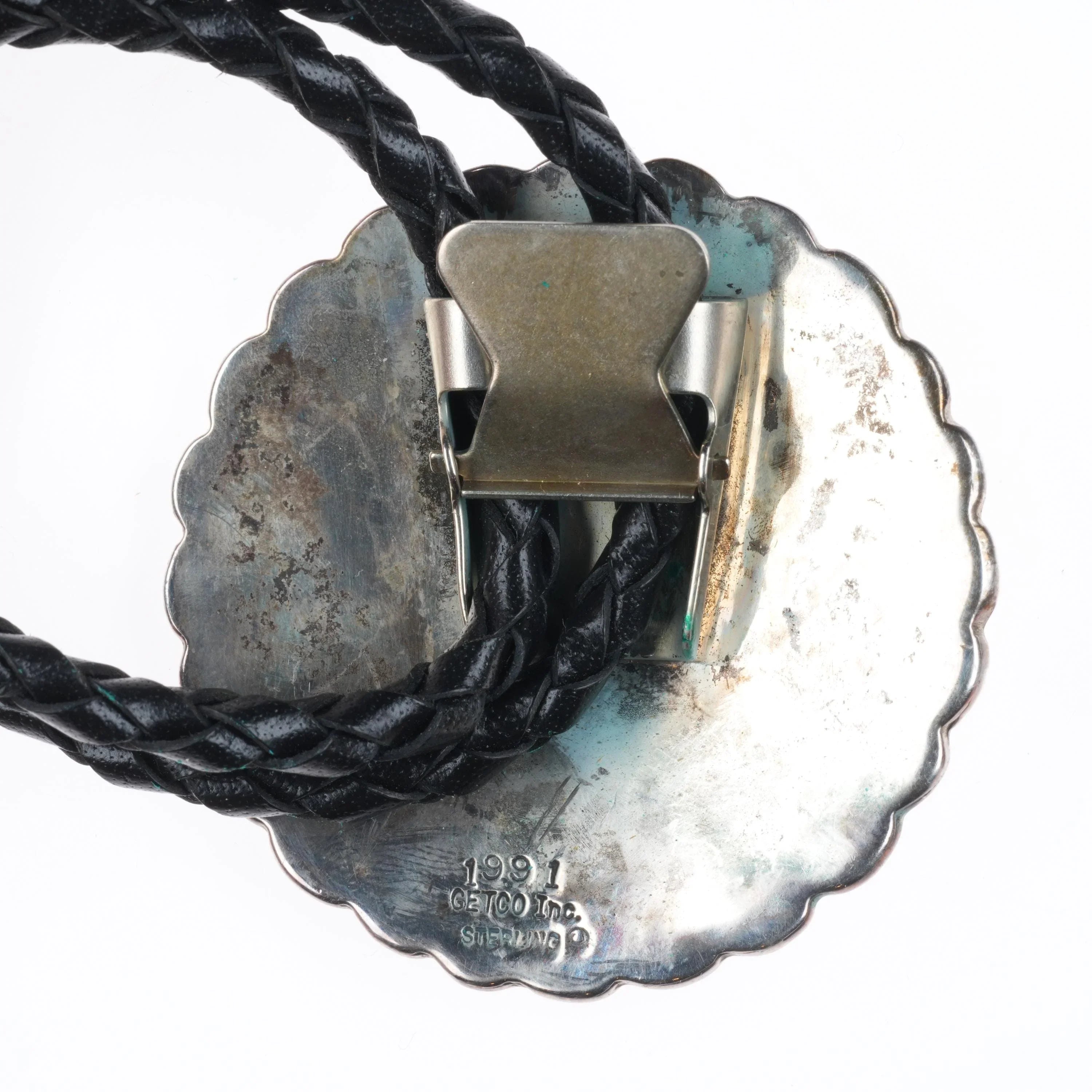 1991 Navajo sterling silver Golden Eagle trading company bolo concho bolo tie