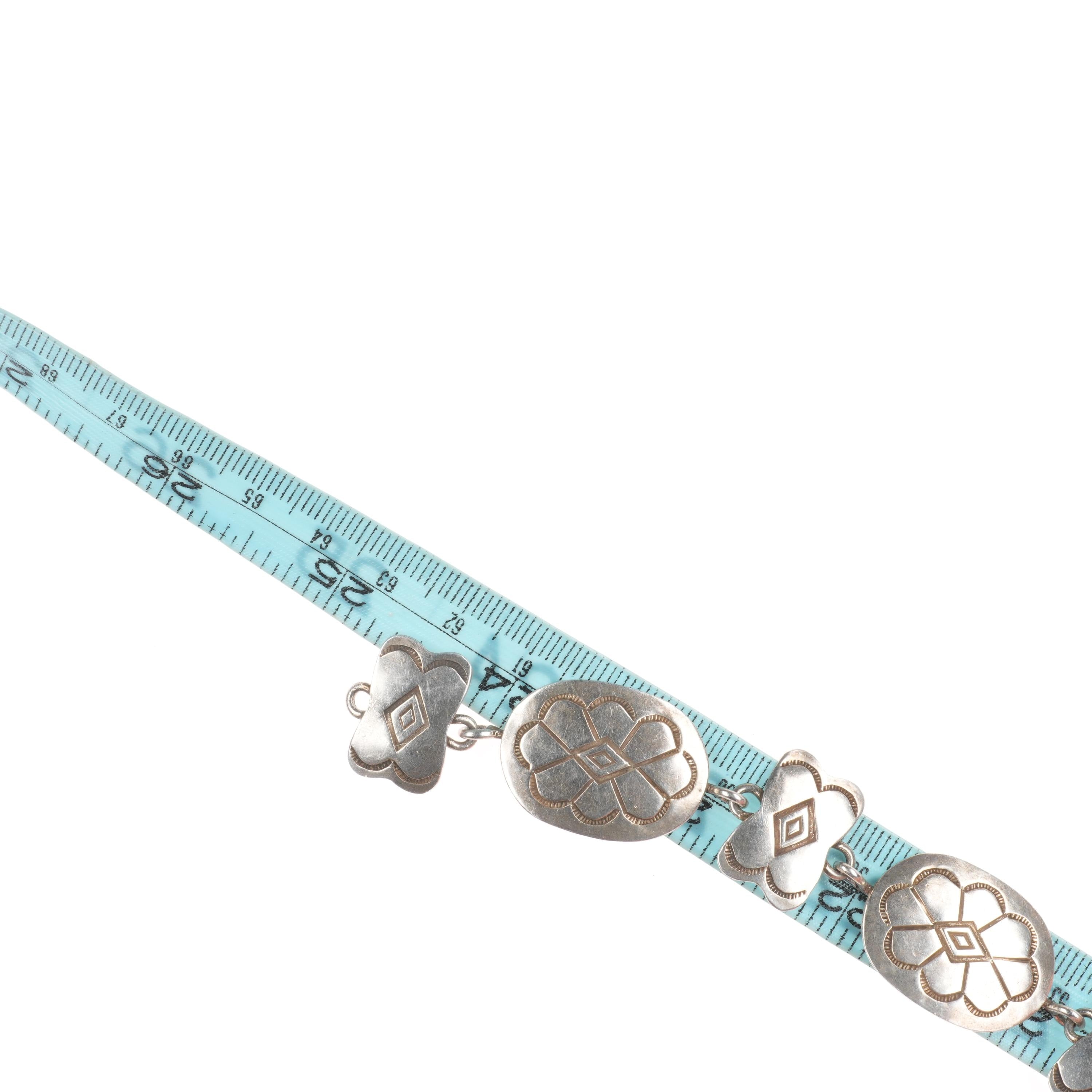 24.5" c1950's Navajo sterling silver link concho belt hatband stamped design