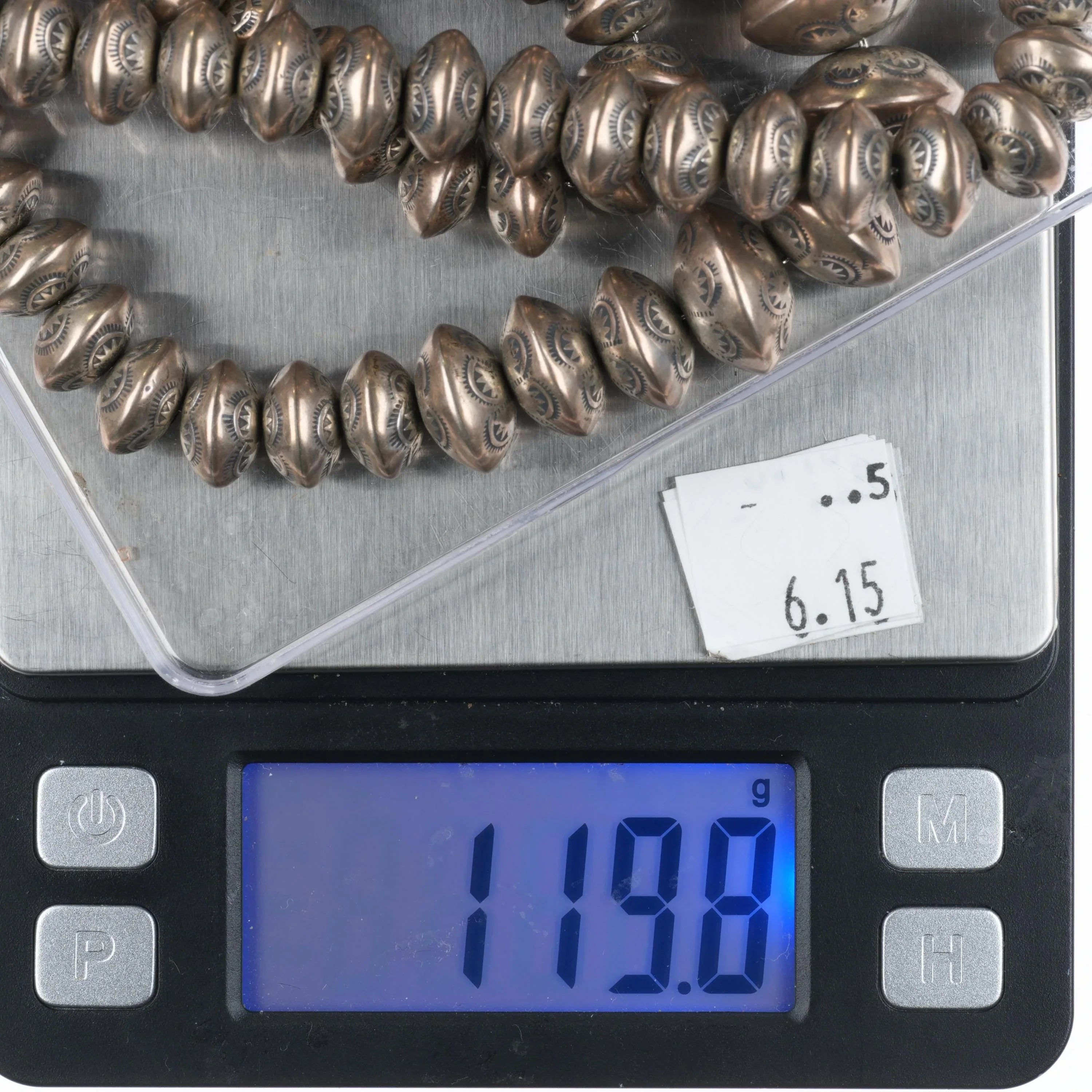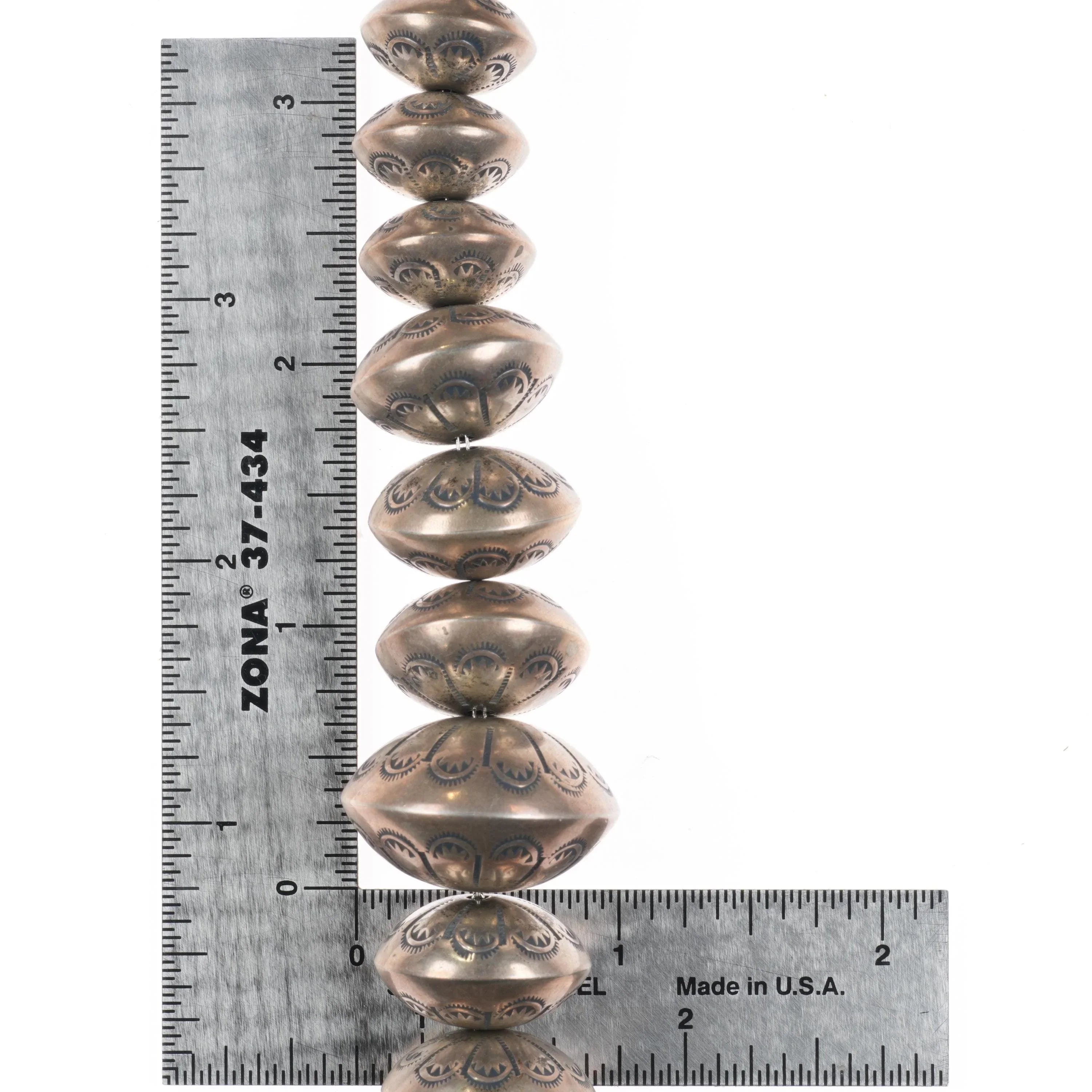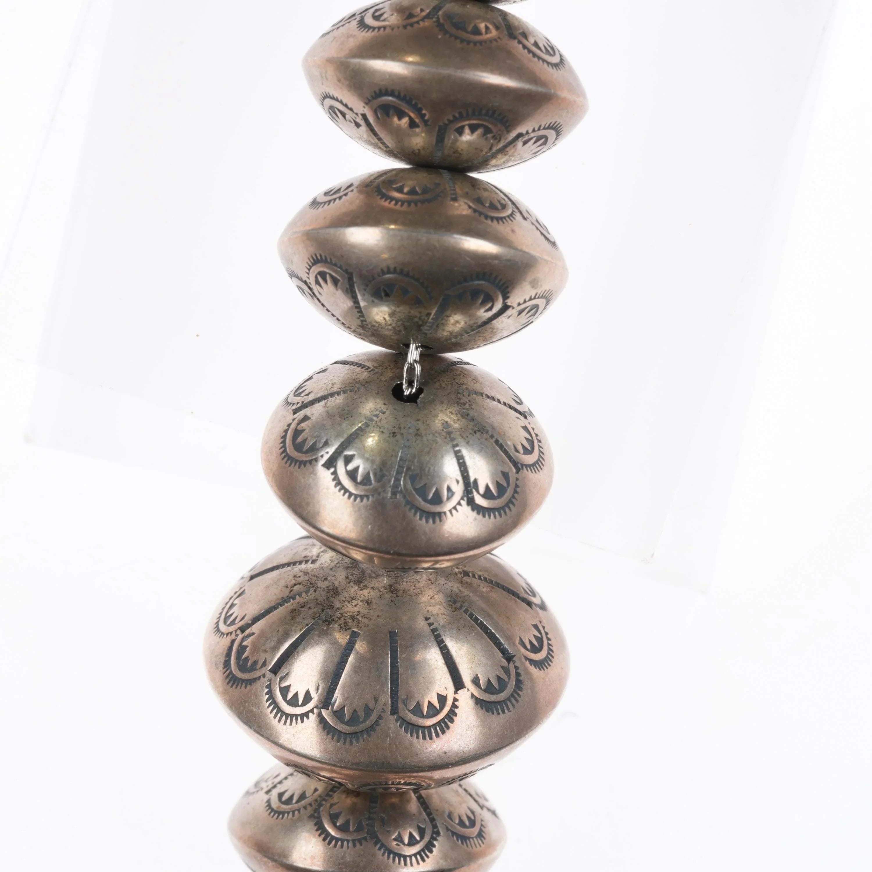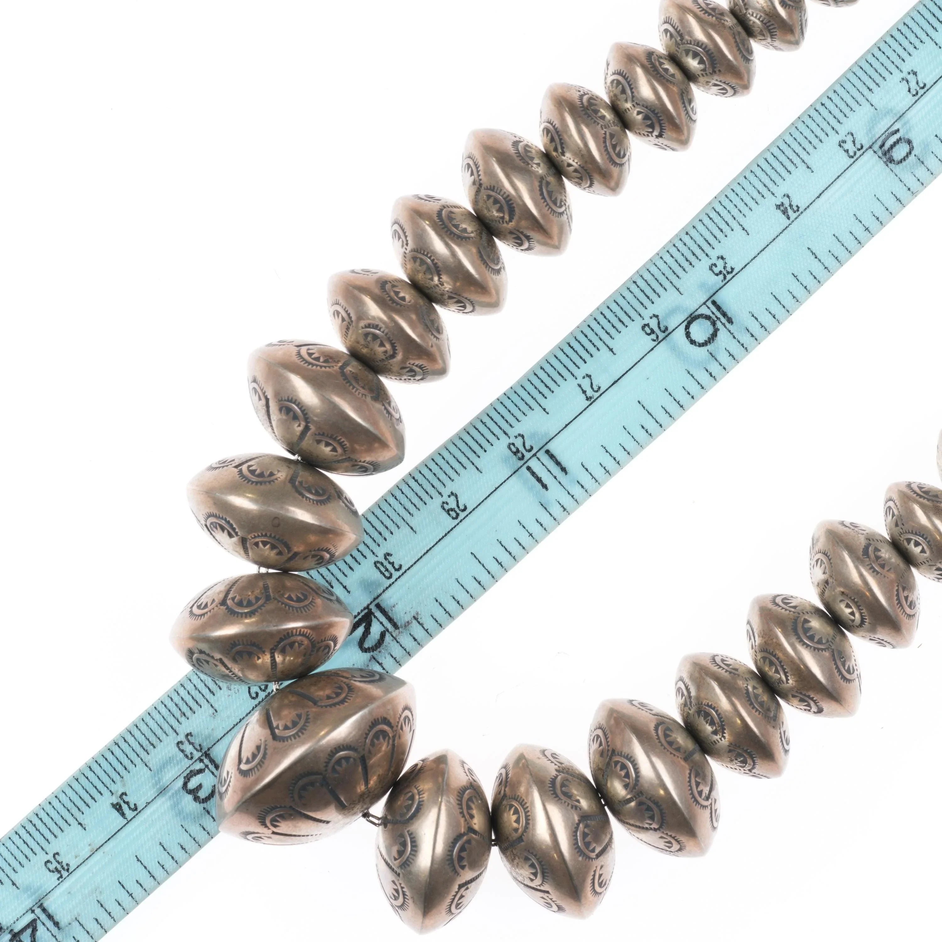 27" Leo Yazzie Navajo pearls necklace Hand stamped Sterling silver beaded
