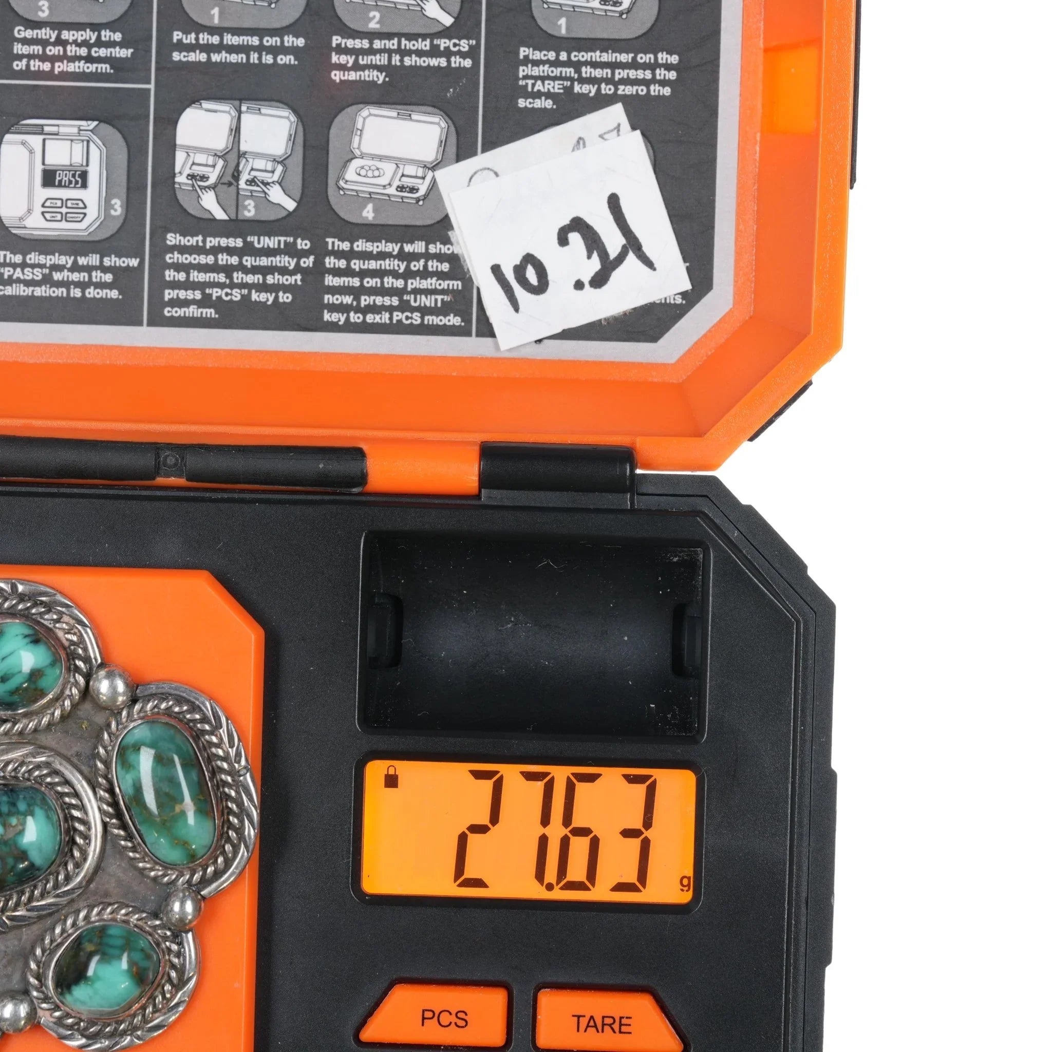 3 Hogans Vintage Native American sterling and turquoise cluster pendant. Weight and measurements in pics.