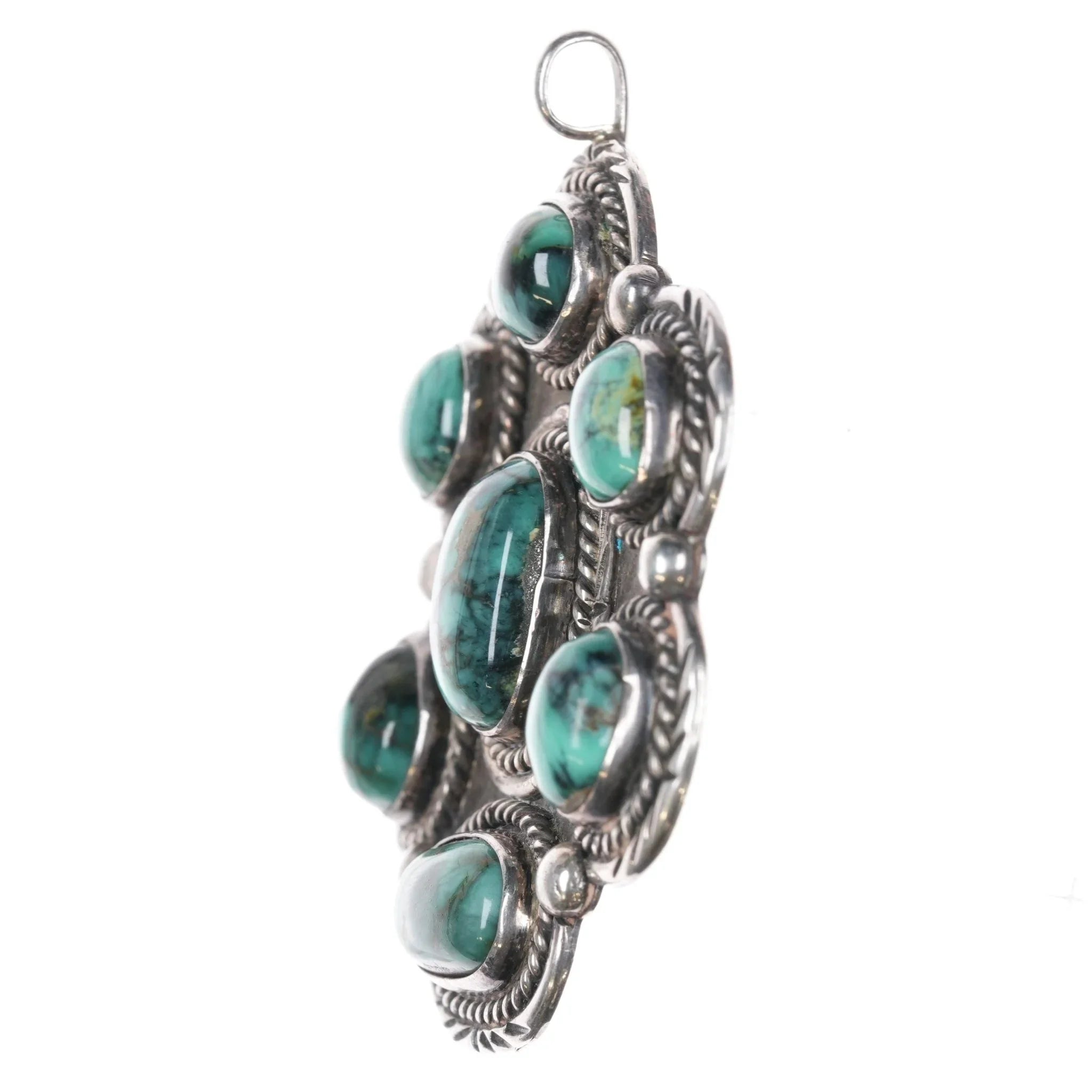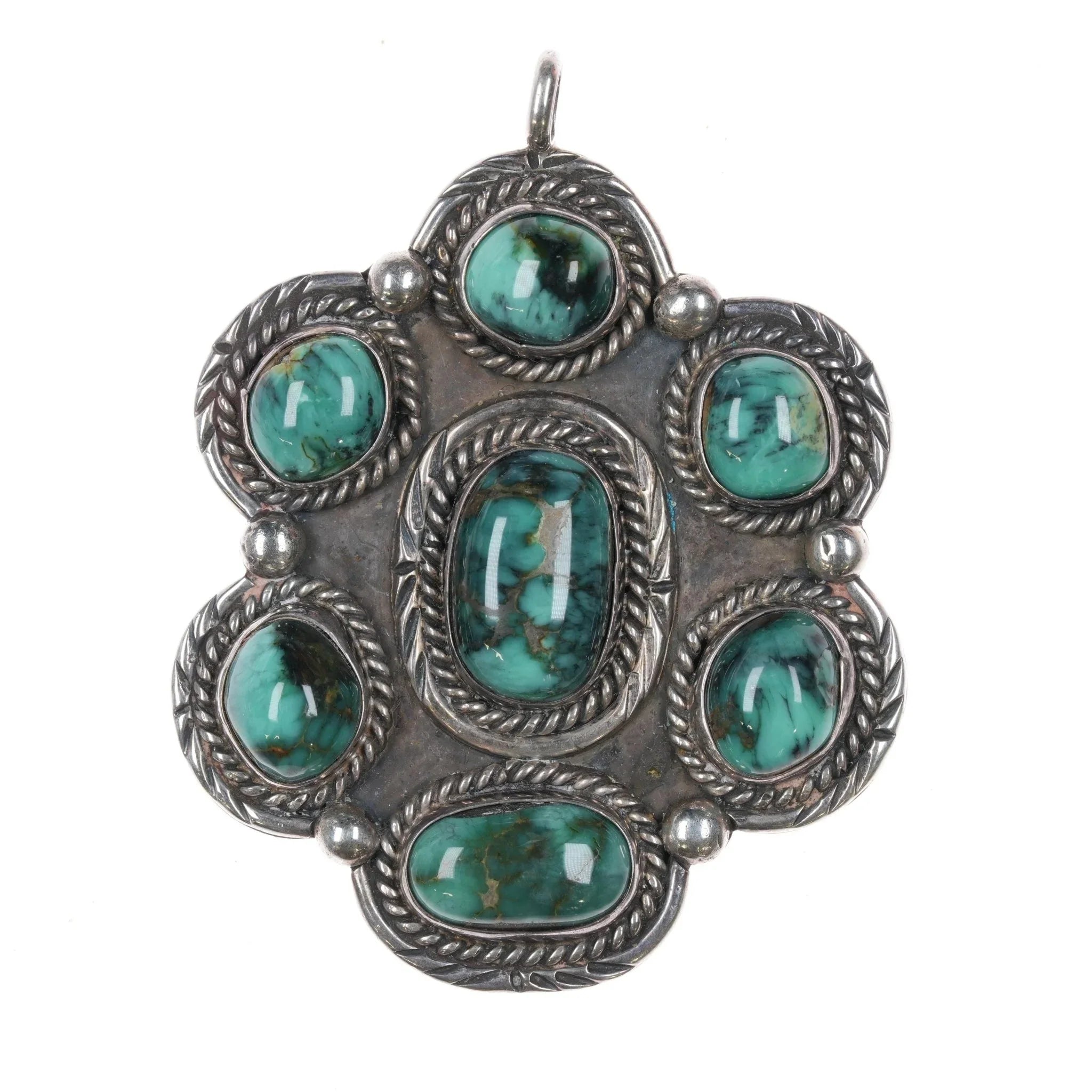 3 Hogans Vintage Native American sterling and turquoise cluster pendant