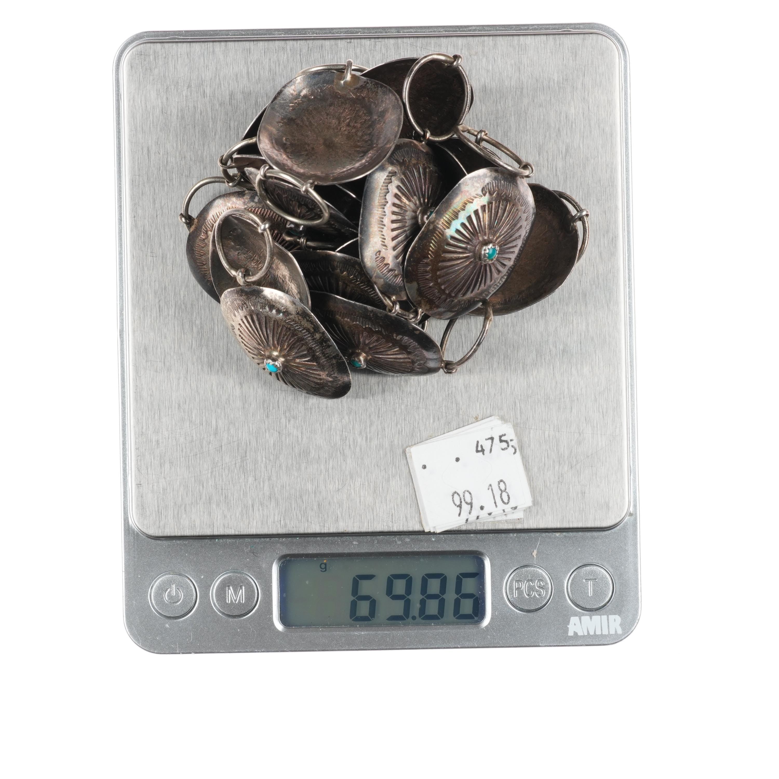 36" c1950's-60's Navajo sterling silver link concho belt/ hatband w/turquoise