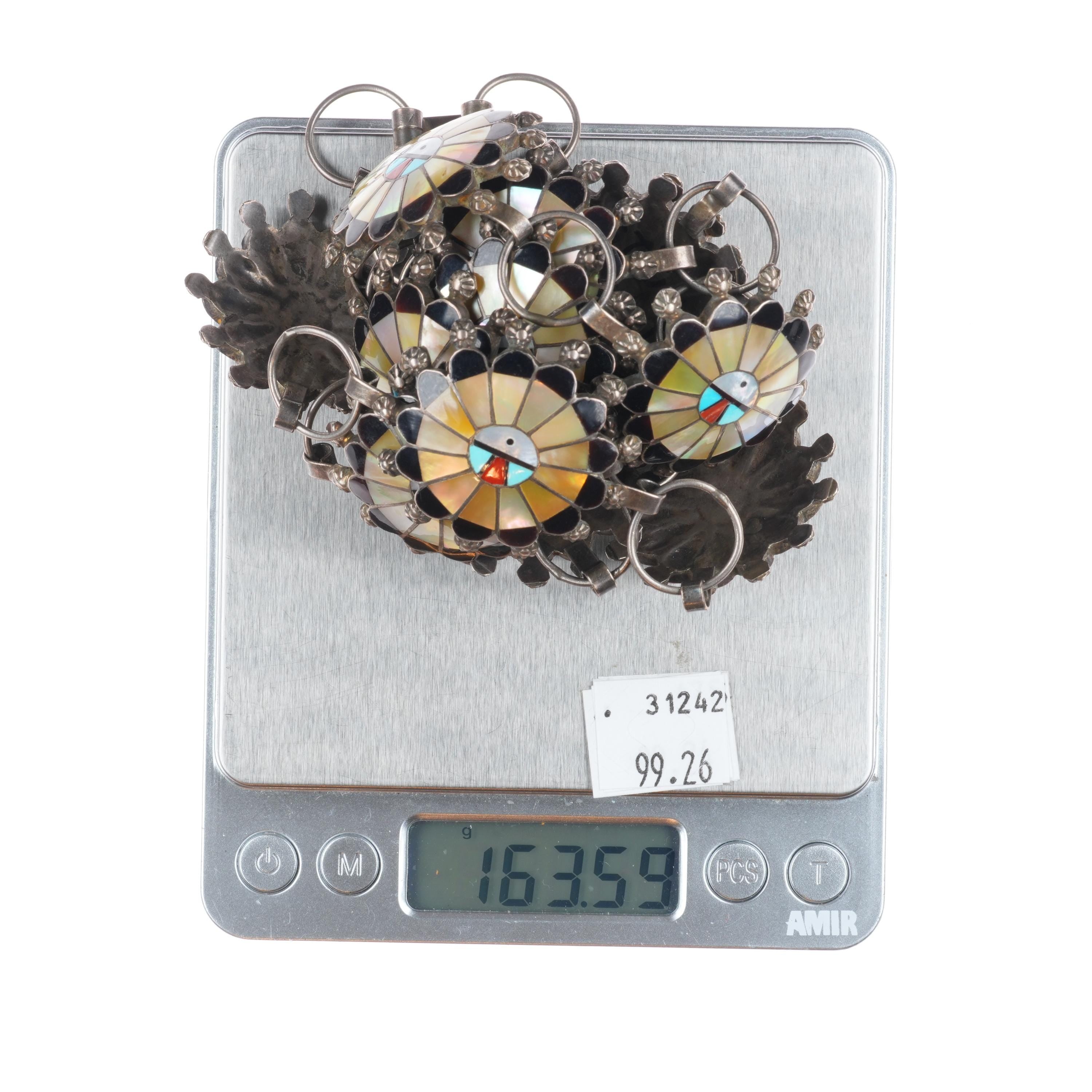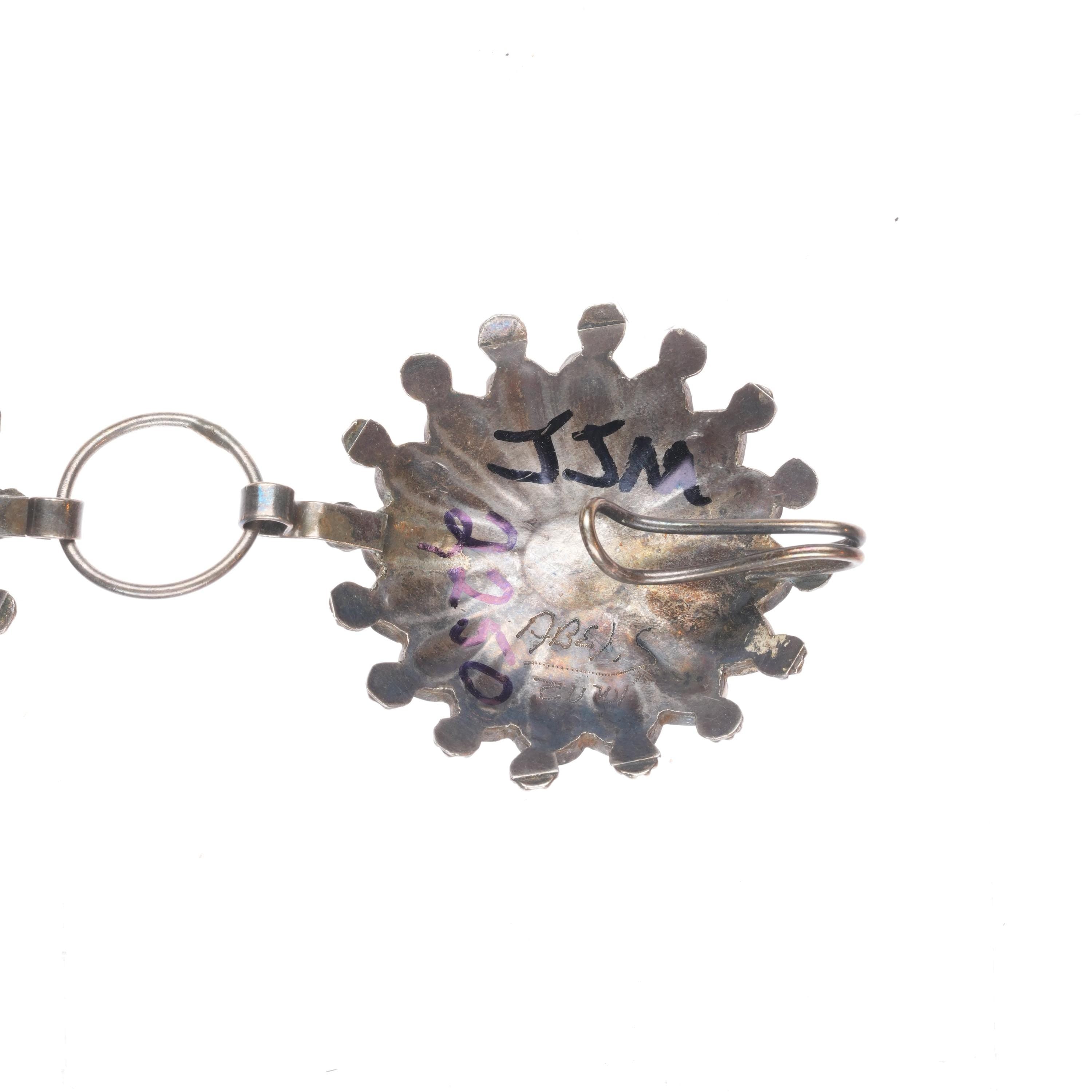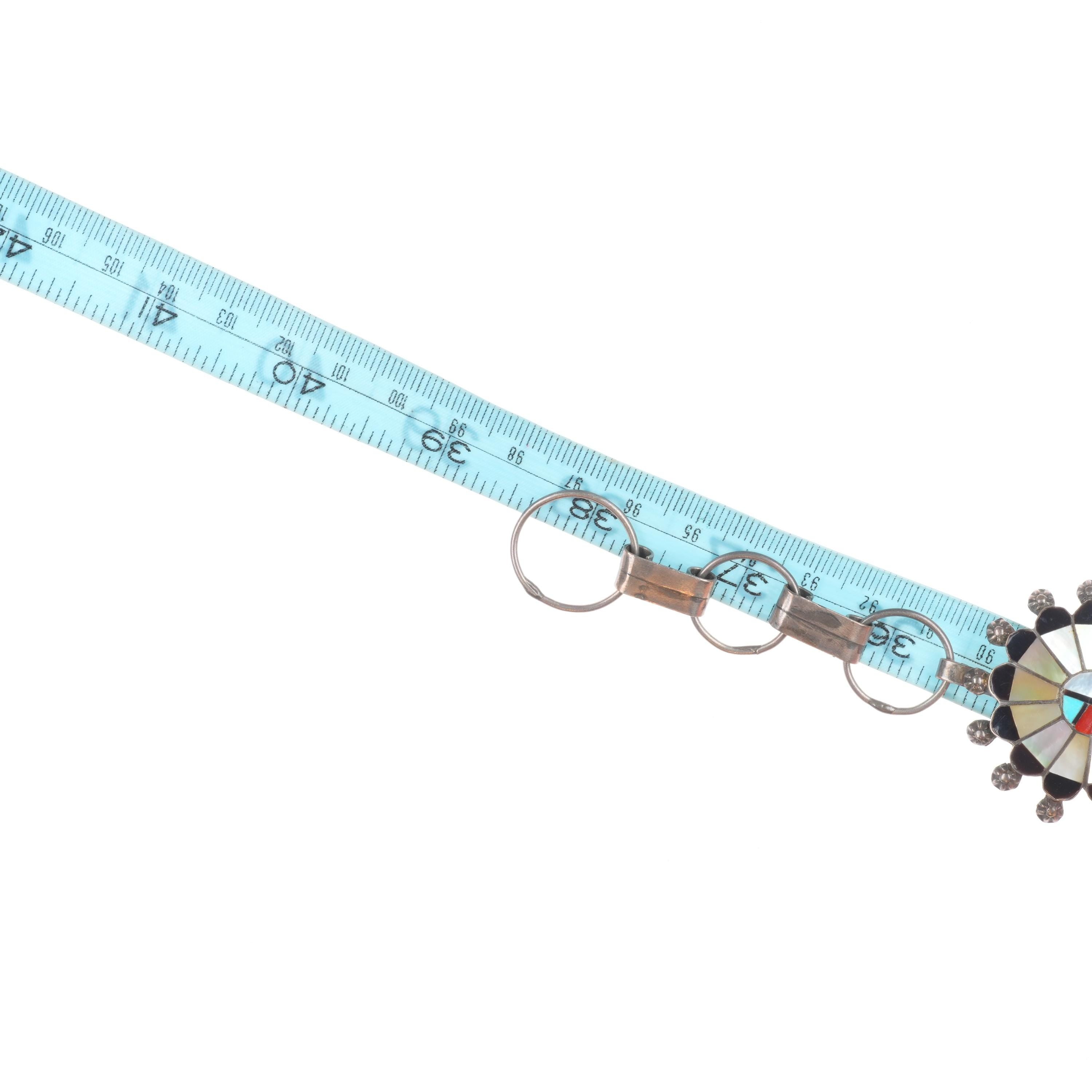 38" Abel Soseeah Zuni sterling silver, turquoise, coral, shell link concho belt. Fits up to a 38 hat or waist, but can be linked shorter. Weight and measurements in pictures. No damage or issues, tested and guaranteed solid sterling silver.