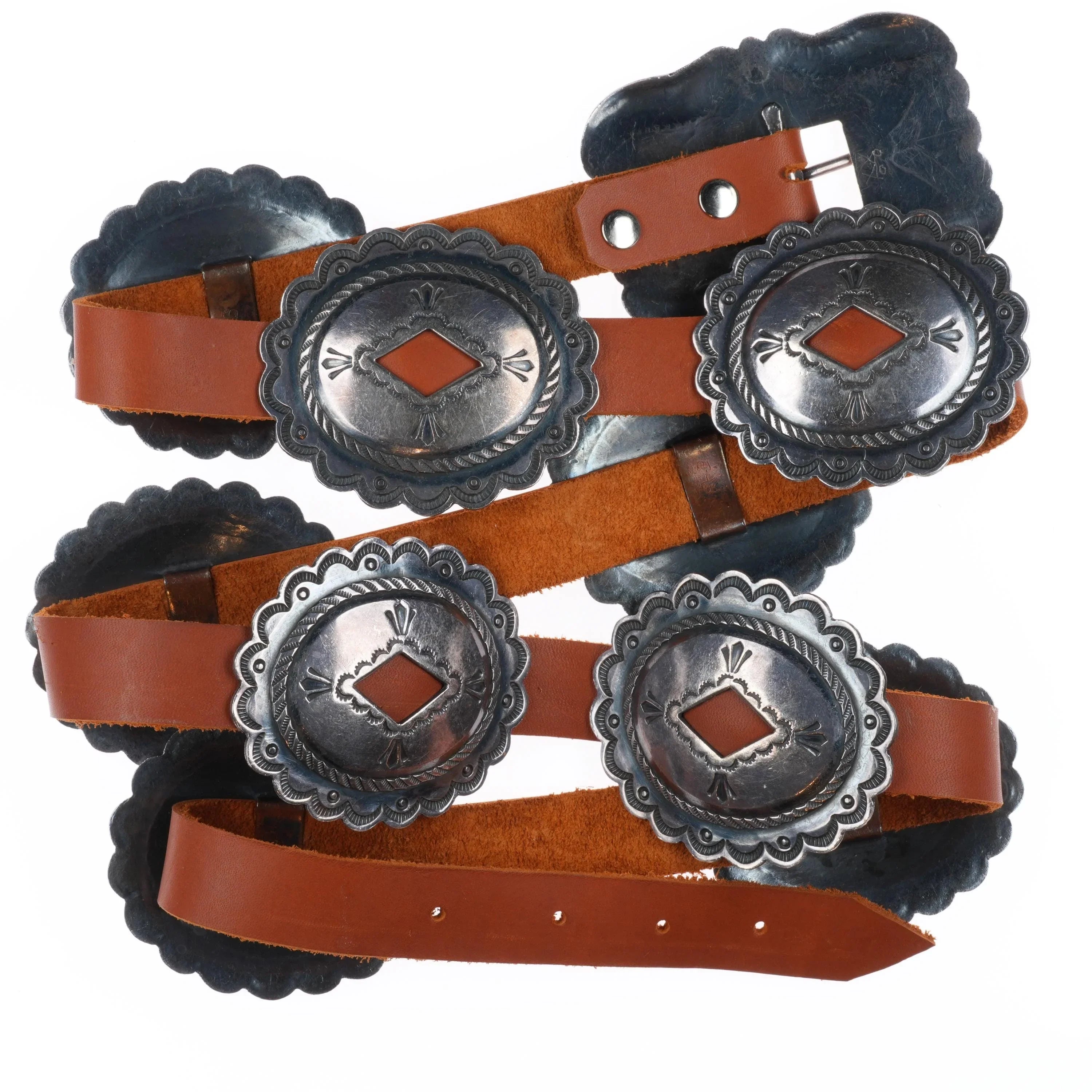 44" 40's-50's Vintage Navajo hand stamped sterling silver concho belt