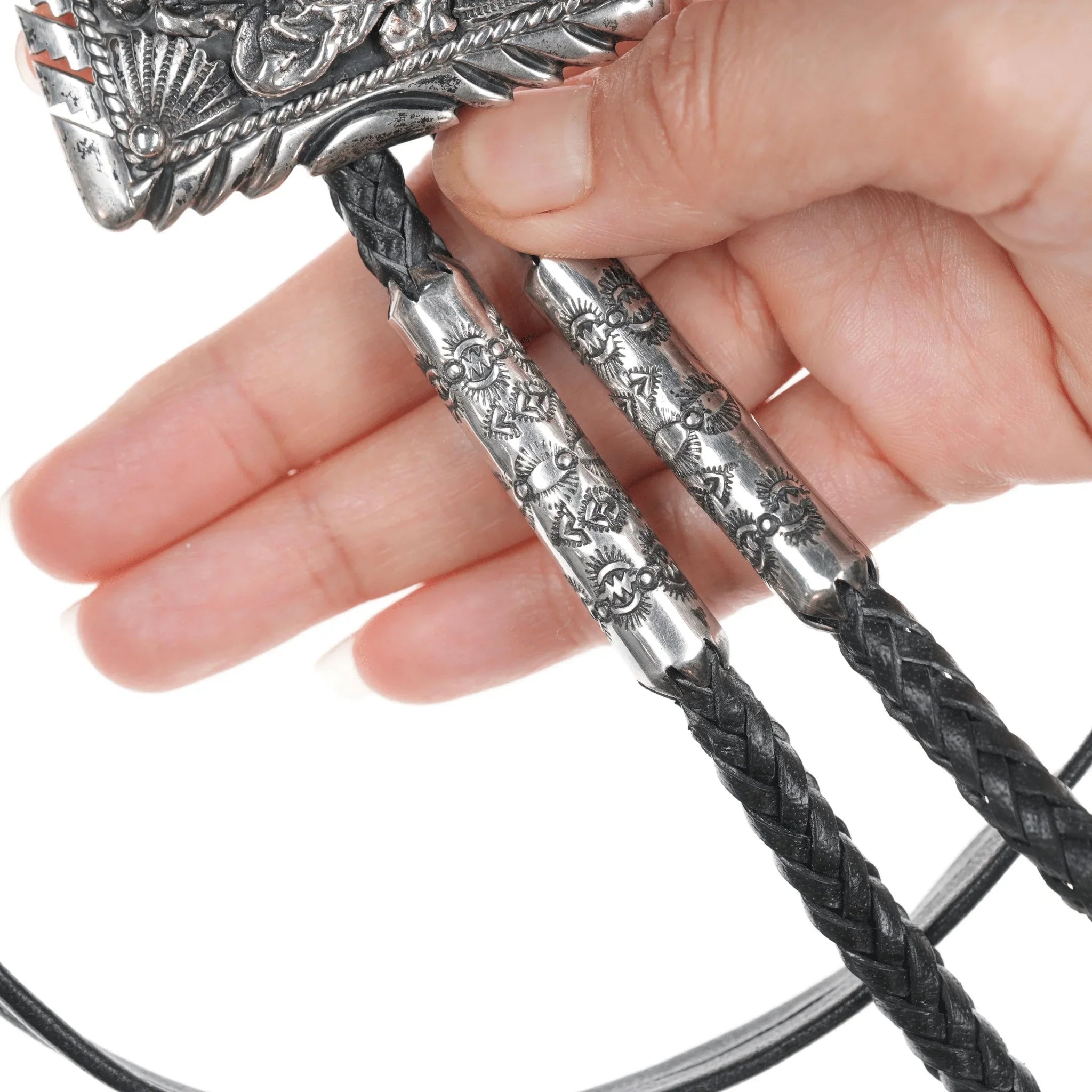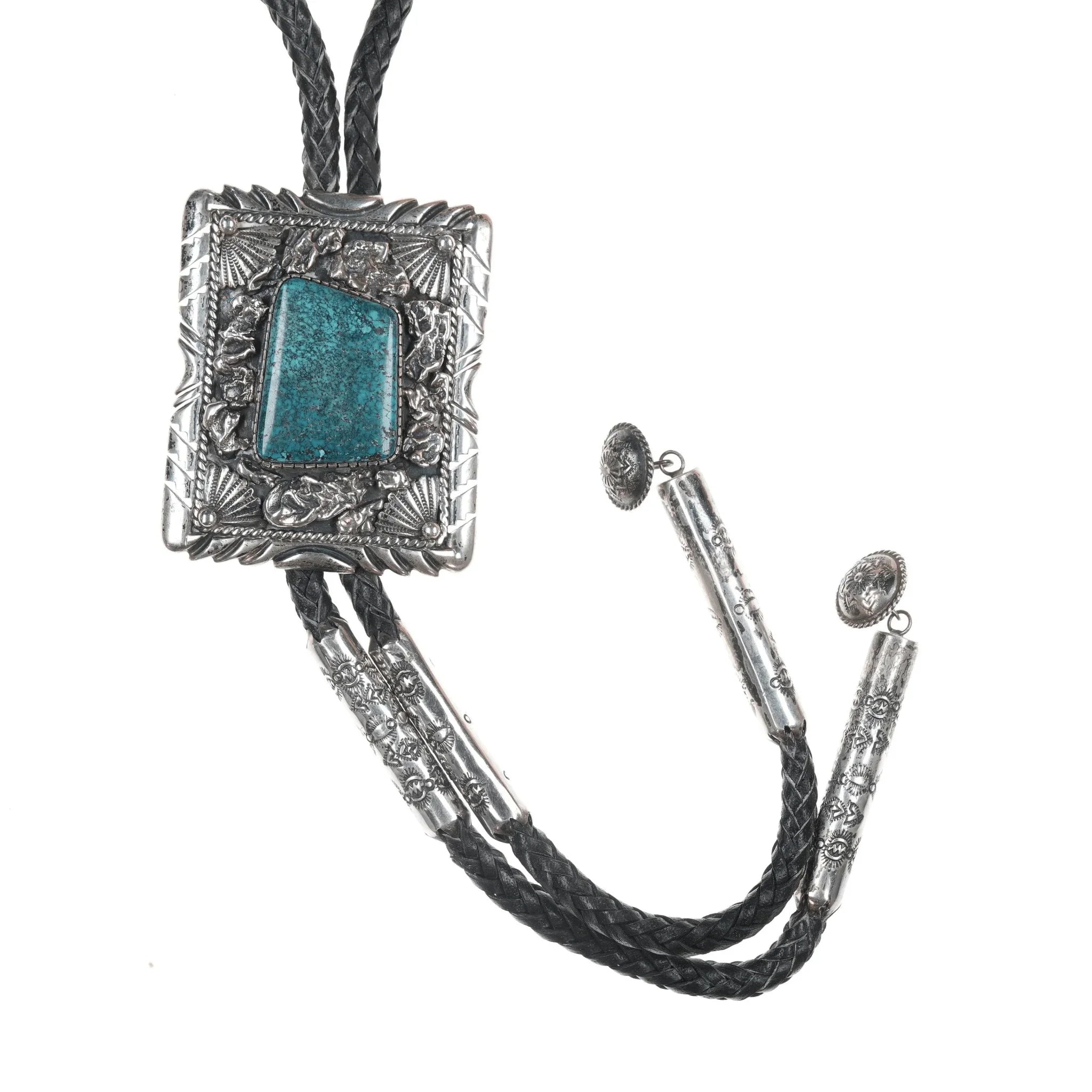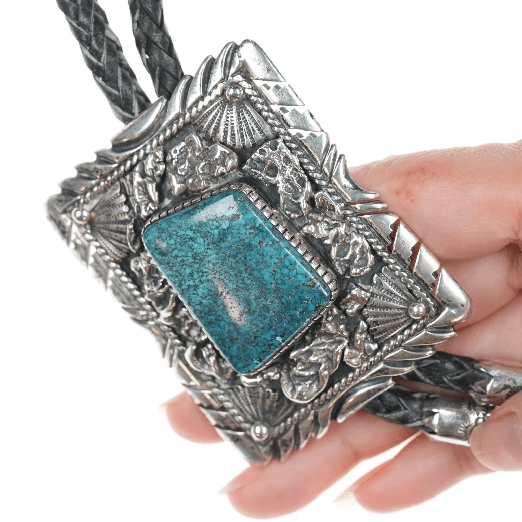 Nelson Navajo Large Sterling and turquoise bolo tie, 44" long, measurements in pics.