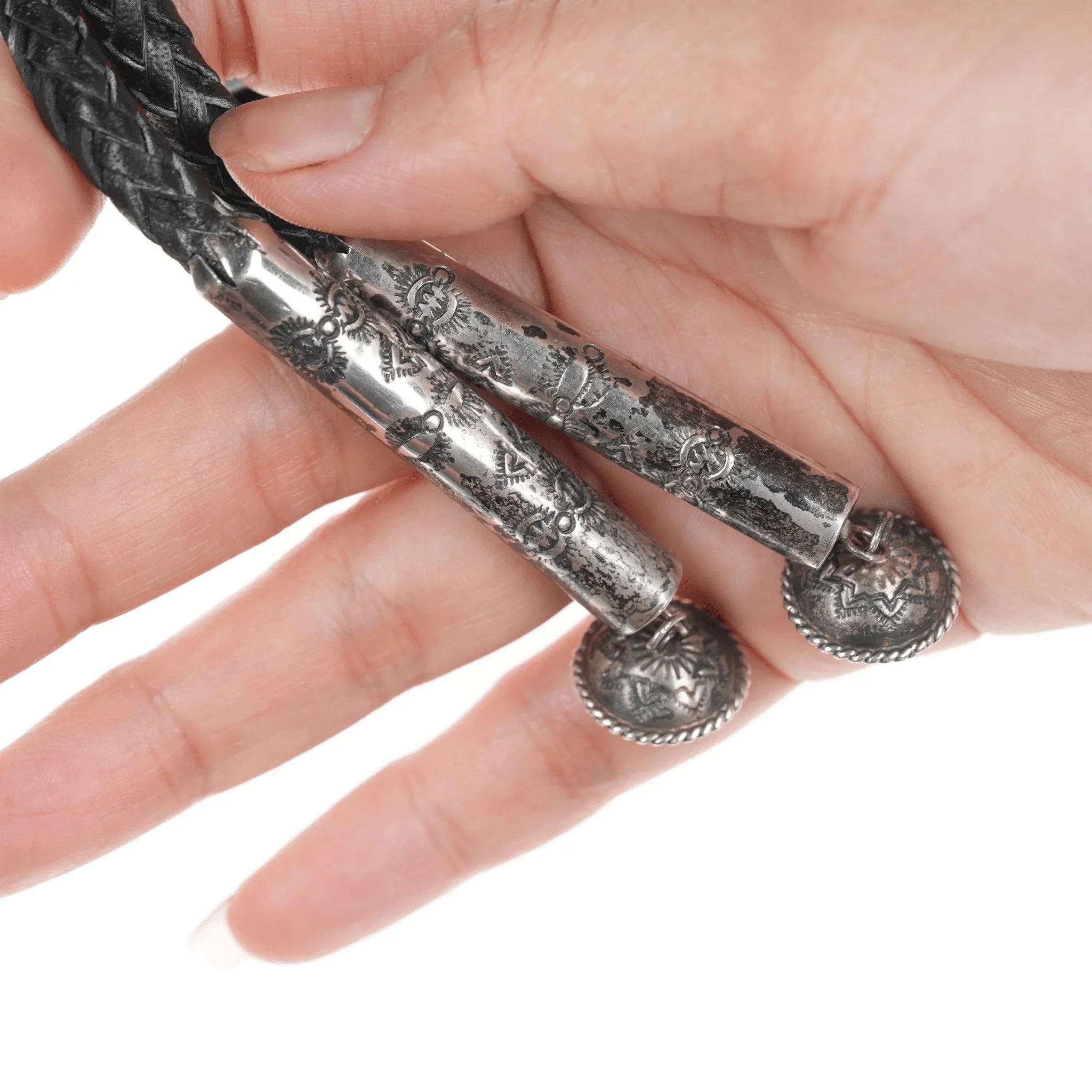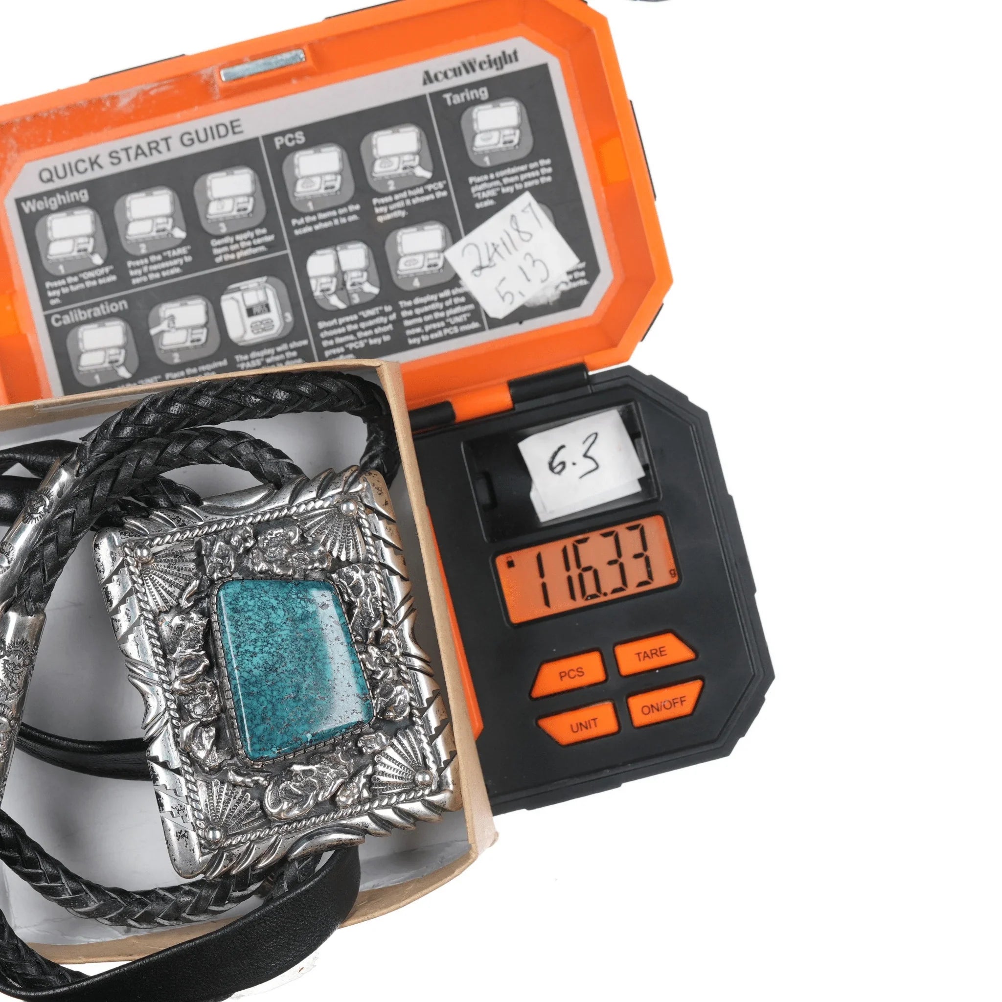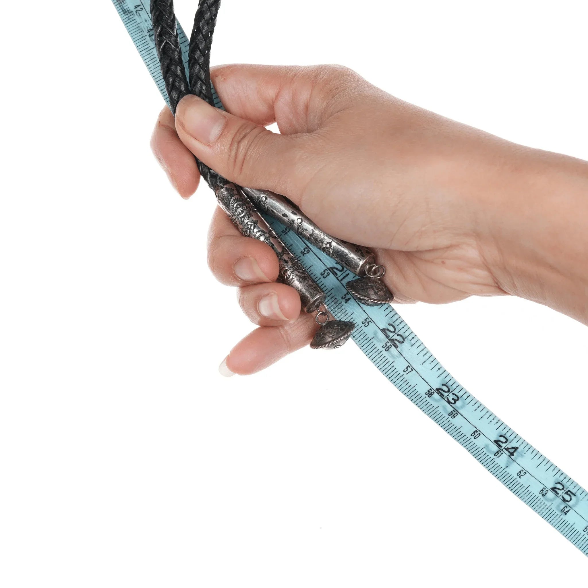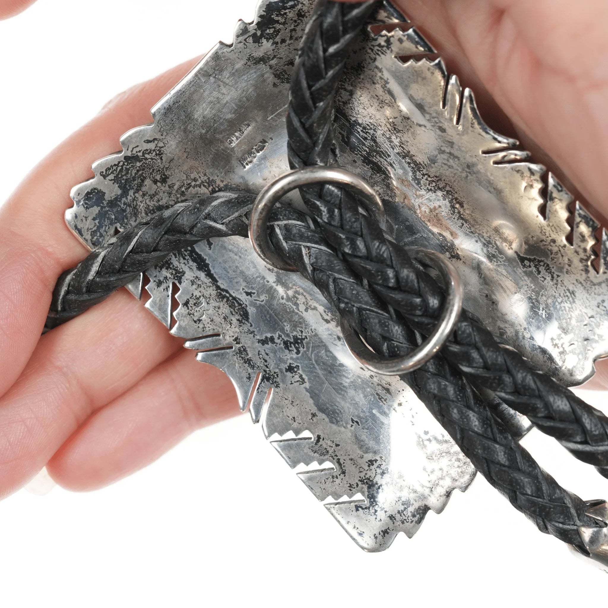 Nelson Navajo Large Sterling and turquoise bolo tie, 44" long, measurements in pics.