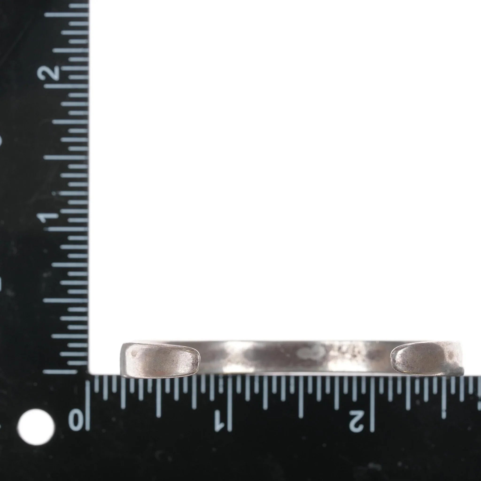 Marked or unmarked as shown in pics, weight<br>and other measurements in pics. Sorry but my jewelry is stored in a secure<br>location and cannot be accessed for more pictures, videos, or measurements until<br>sold. If you look at pictures/description your question should be answered.<br>Thank you so much for your time and consideration!<br><br>All precious metals are tested and guaranteed, any Native American jewelry<br>referred to as Silver or Sterling is guaranteed to be a minimum of 90% (coin)<br>silver and possibly higher content. Anything marked is guaranteed to be what<br>it‘s marked, most bracelets are photographed on a 6" wrist (non hairy), rings<br>photographed on the appropriate sized finger when possible. With bracelets if<br>the measurement is not given in the description then inside circumference is<br>shown where the metal meets the number on the the cloth tape measure.