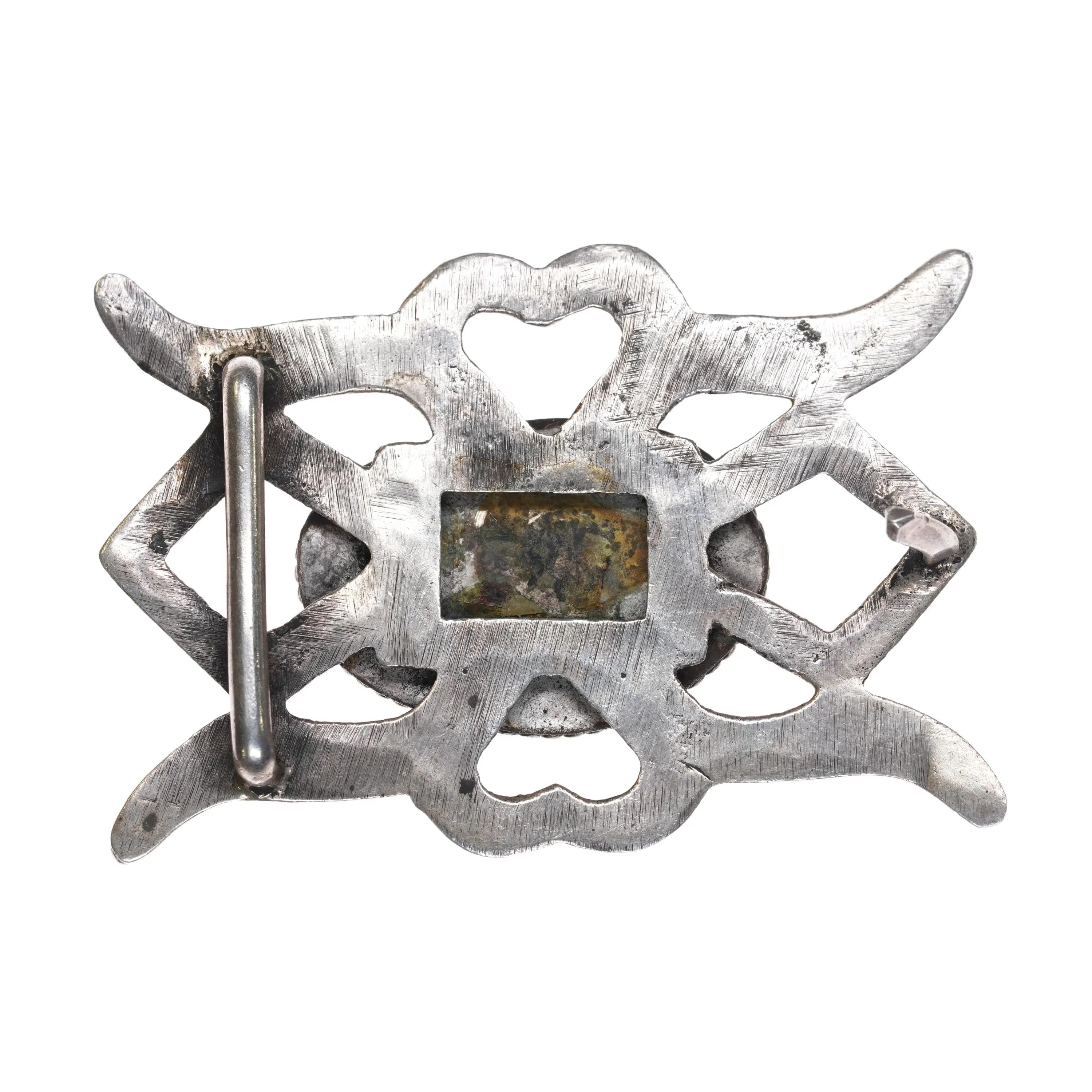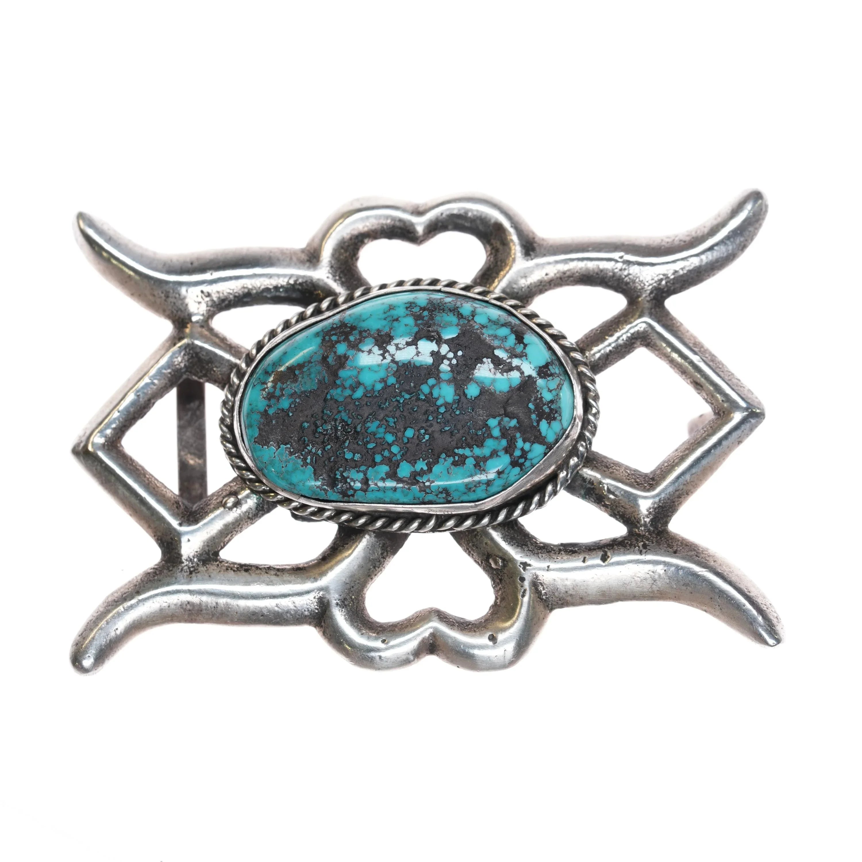 50's-60's Navajo cast sterling silver belt buckle with large turquoise stone