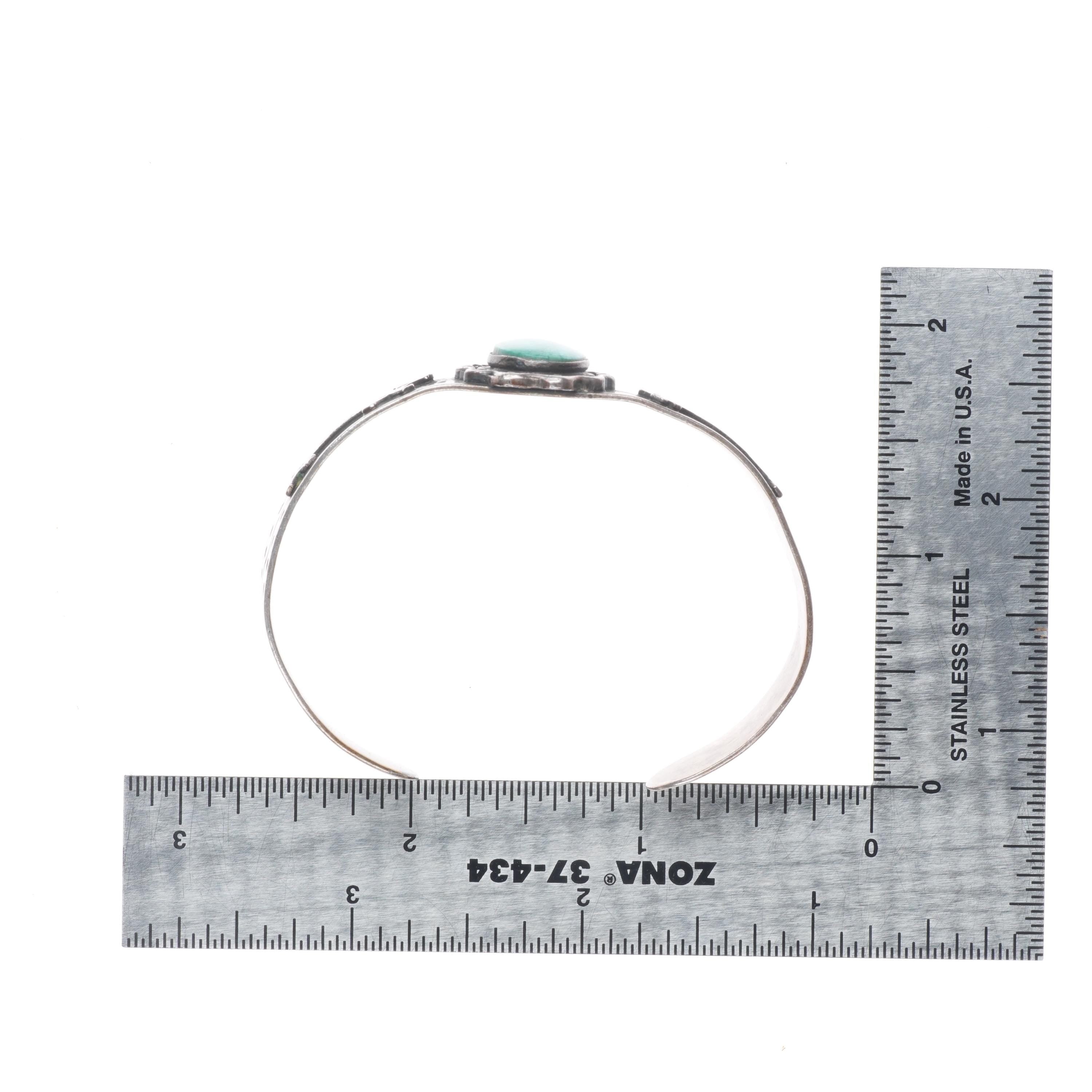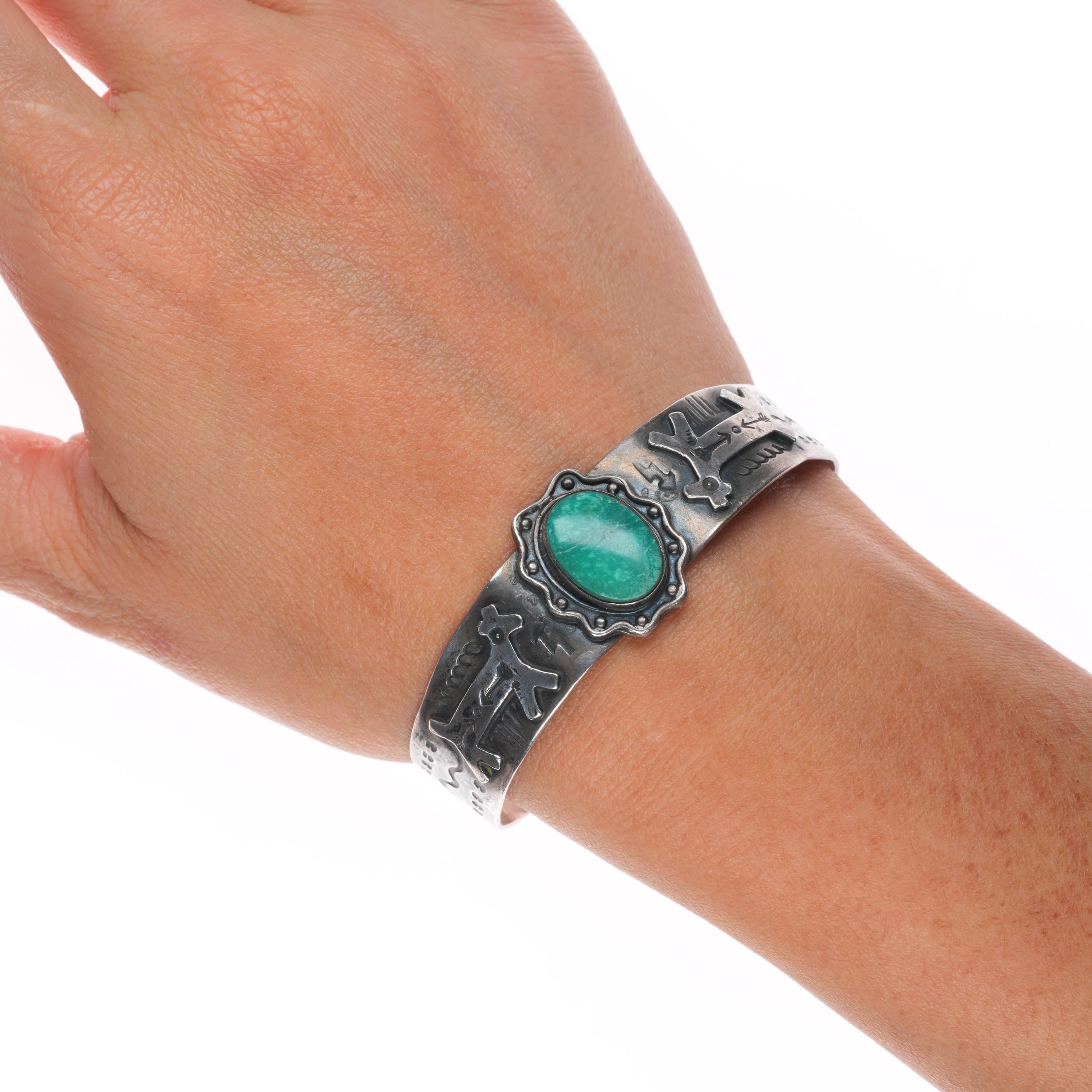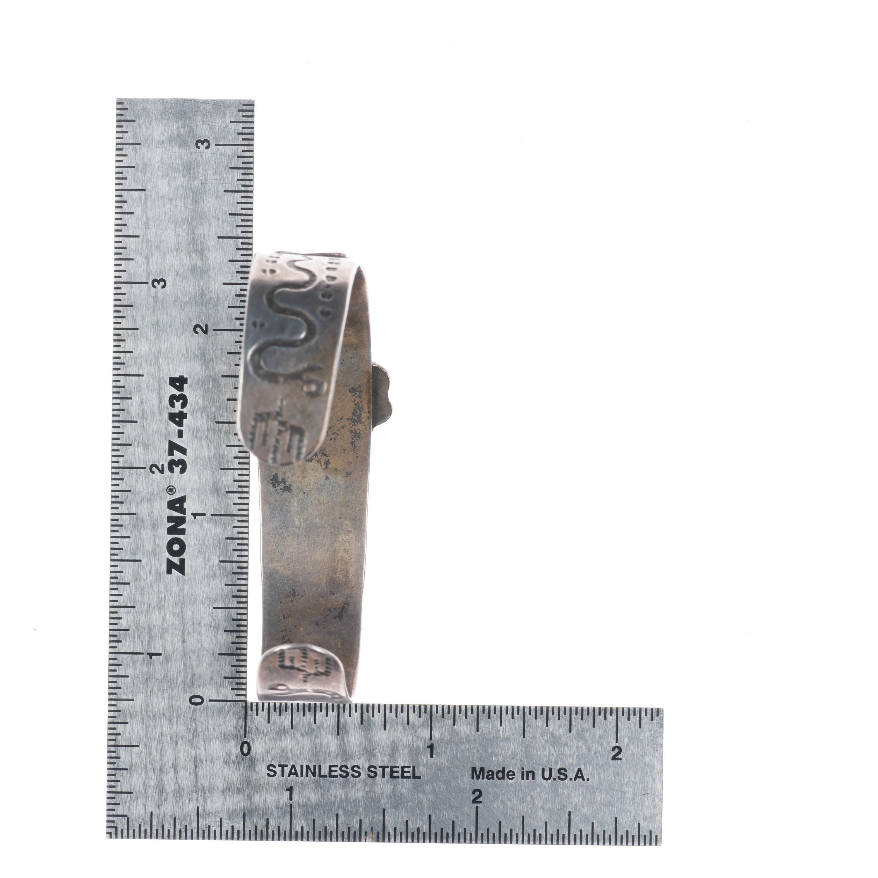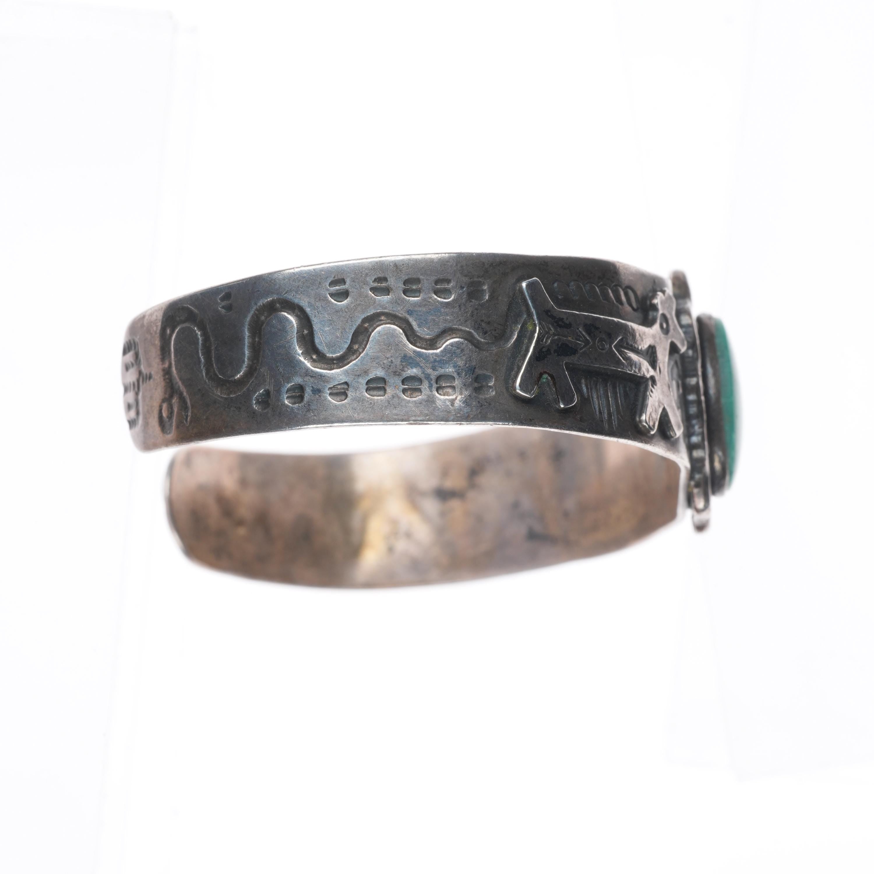 6.25" c1940's Fred Harvey sterling silver turquoise dogs/snakes cuff bracelet