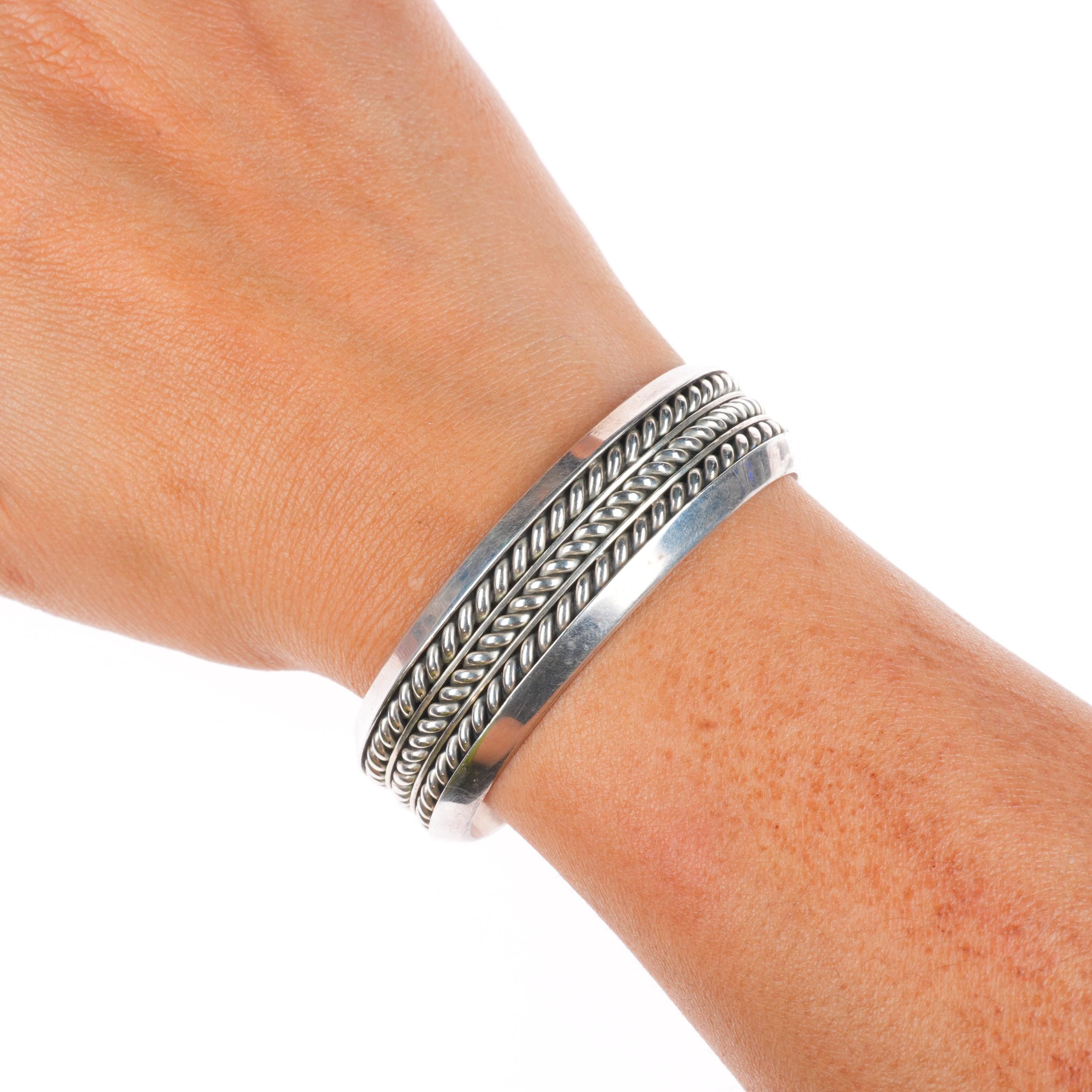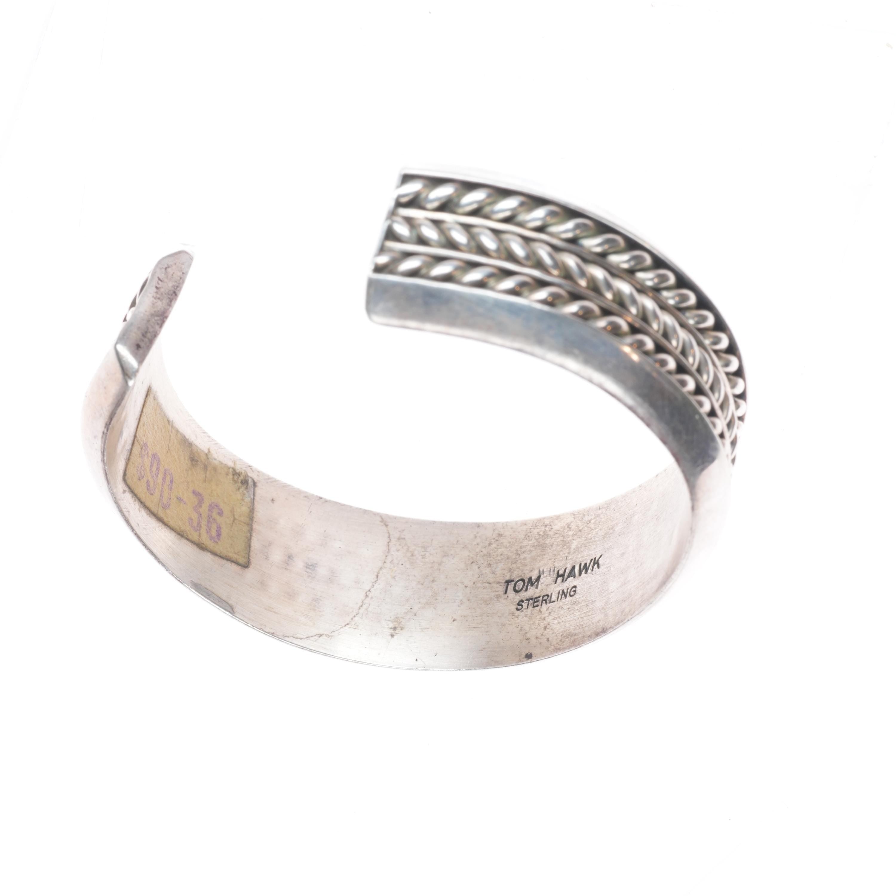 6.25" Tom Hawk Navajo sterling silver braided heavy cuff bracelet. Tested and guaranteed solid sterling silver with weight and measurements in pictures. Circa last quarter of the 20th century with some expected age appropriate wear.