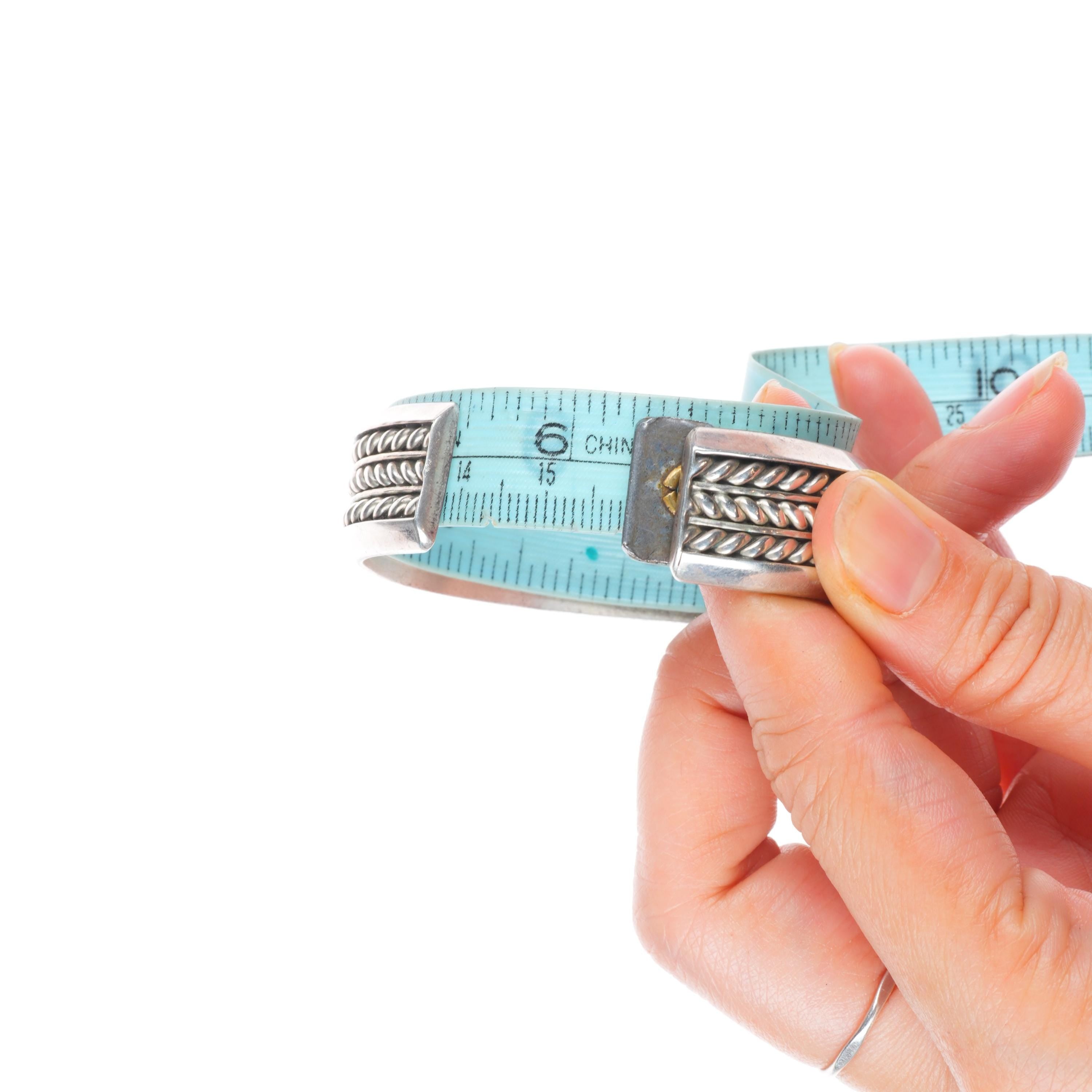 Bracelets are shown in the photos with a tape measure inside the bracelet, other photos will typically show the gap size. The size at the beginning of the title includes the gap. Almost all bracelets that don‘t have inlay work should be adjustable by at least .25", please refer to pictures for the gap size to see if it would work if slightly adjusted as the gap would change.