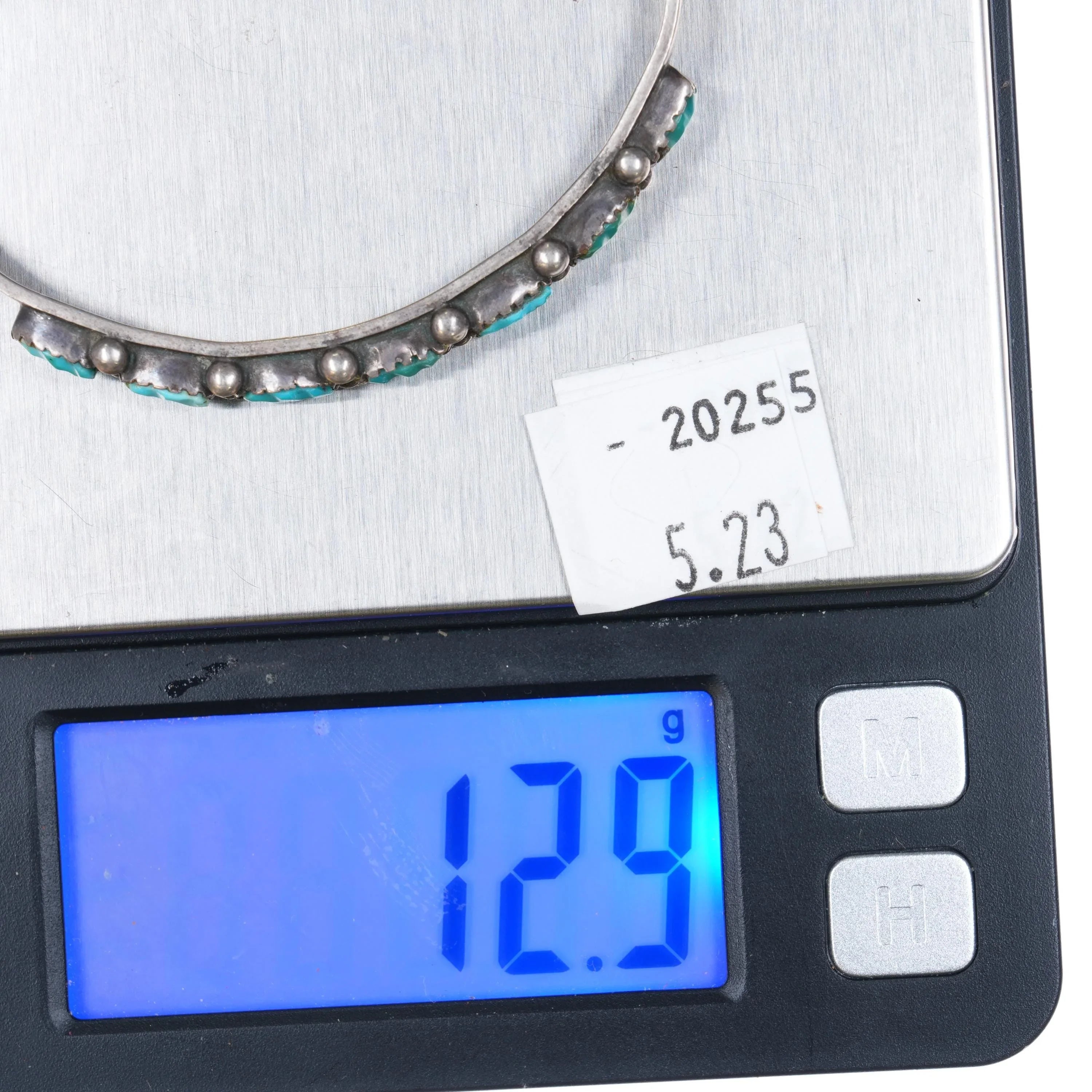 6.3" 50's-60's Zuni carved turquoise row cuff bracelet sterling silver