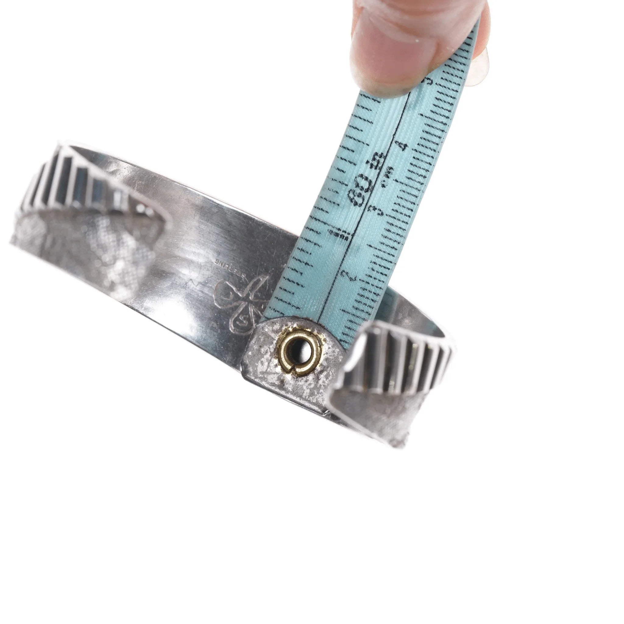 6 3/8" Vintage Southwestern Modernist sterling cuff bracelet. Hallmarked as shown, I don't know who made this but it wasn't hobby silversmith. This was made by a master silversmith unknown to me, it's amazing. I have a Bisbee turquoisee earring and choker set by the same artisan from the same estate.