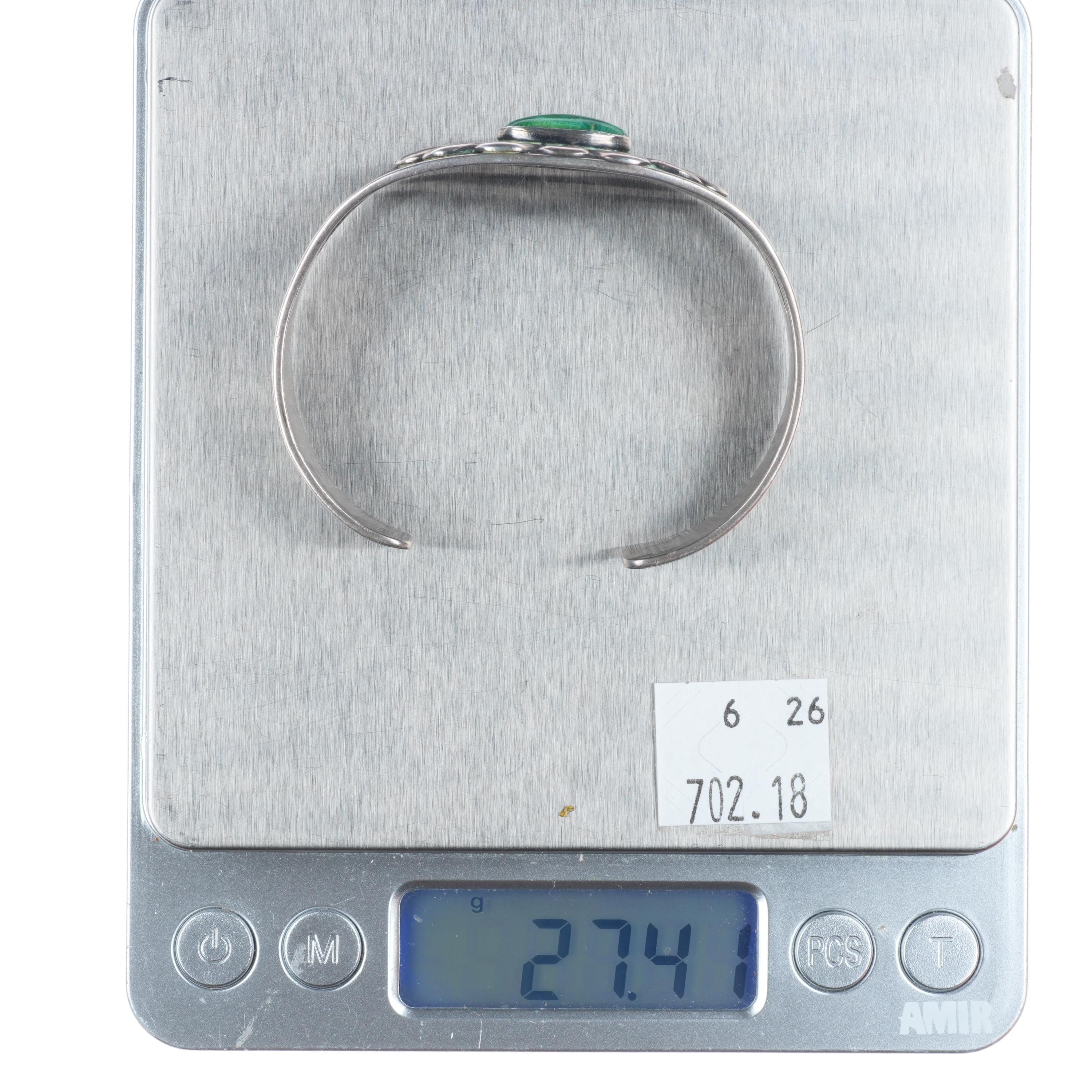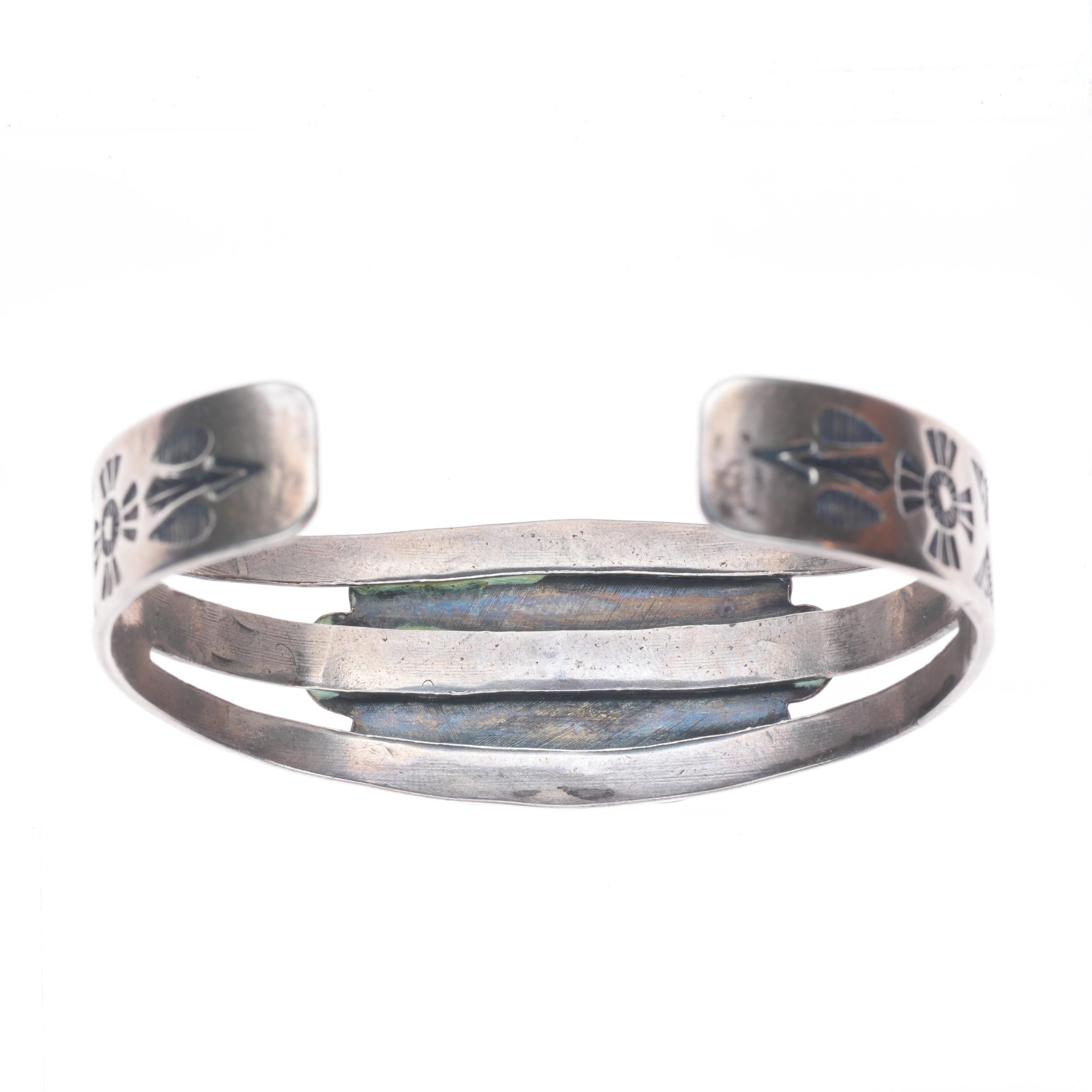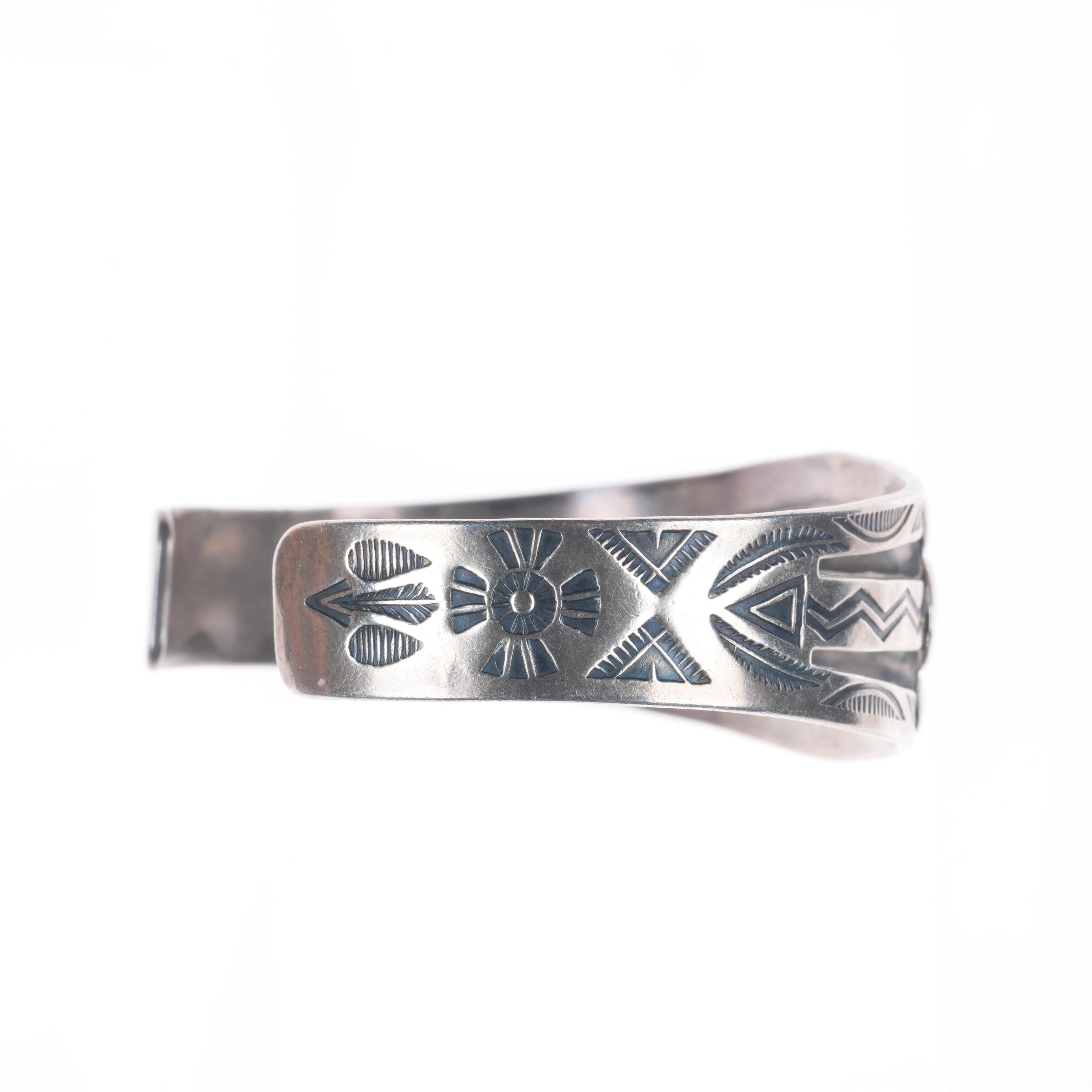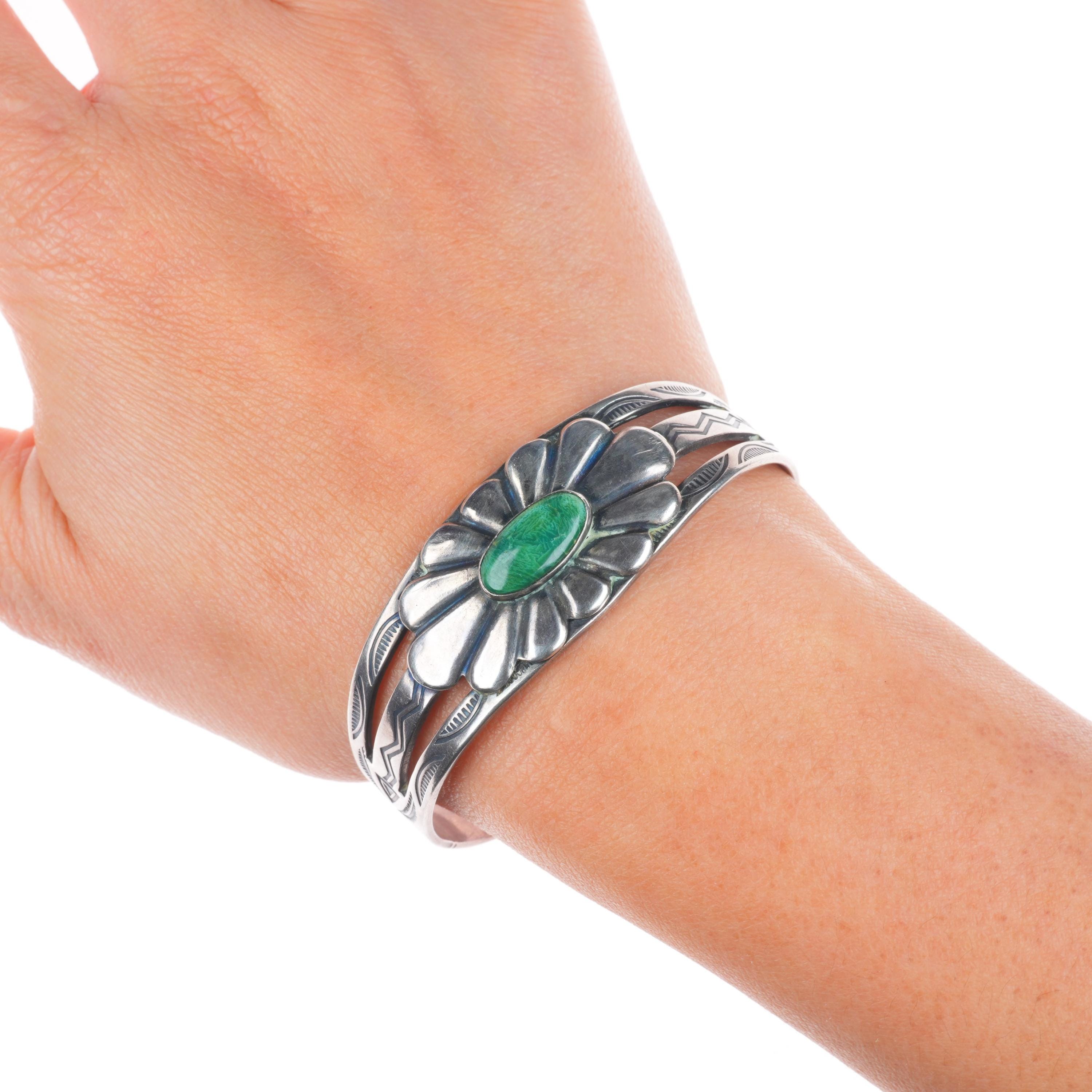 6.3" c1940 Vintage Fred Harvey era sterling silver green turquoise cuff bracelet