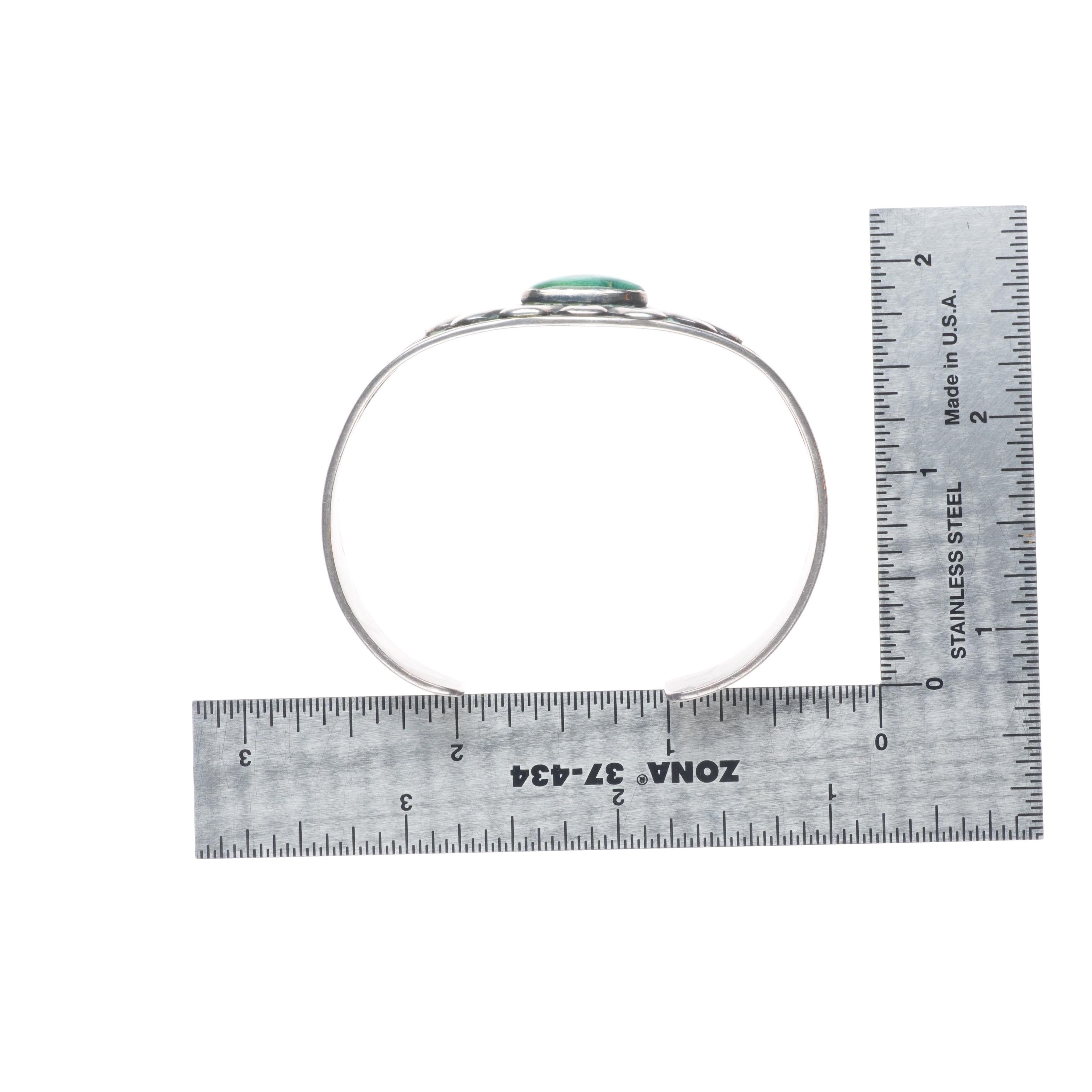 6.3" c1940 Vintage Fred Harvey era sterling silver green turquoise cuff bracelet. Tested and guaranteed solid sterling silver with weight... Read more