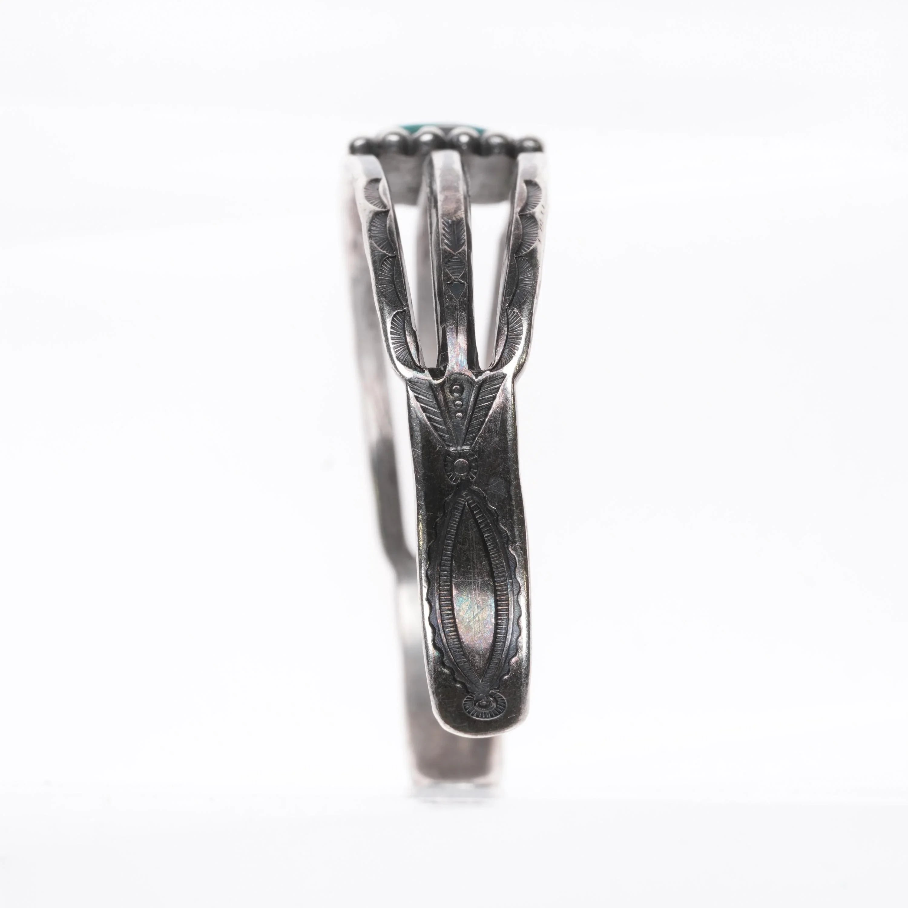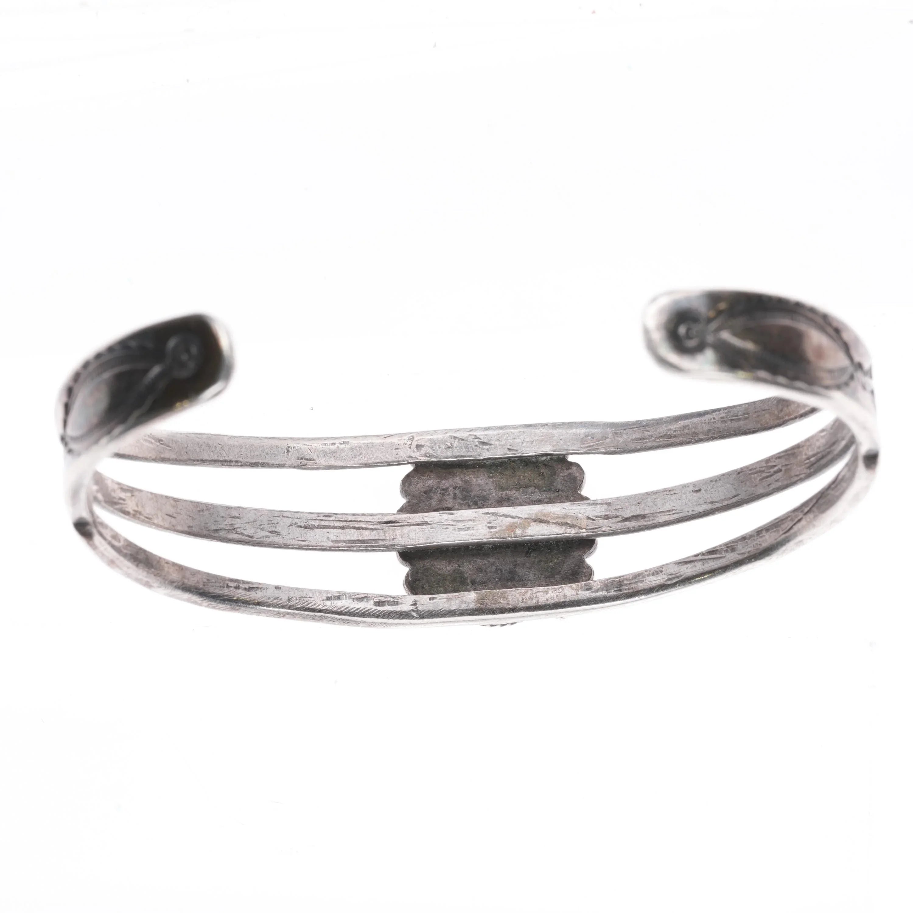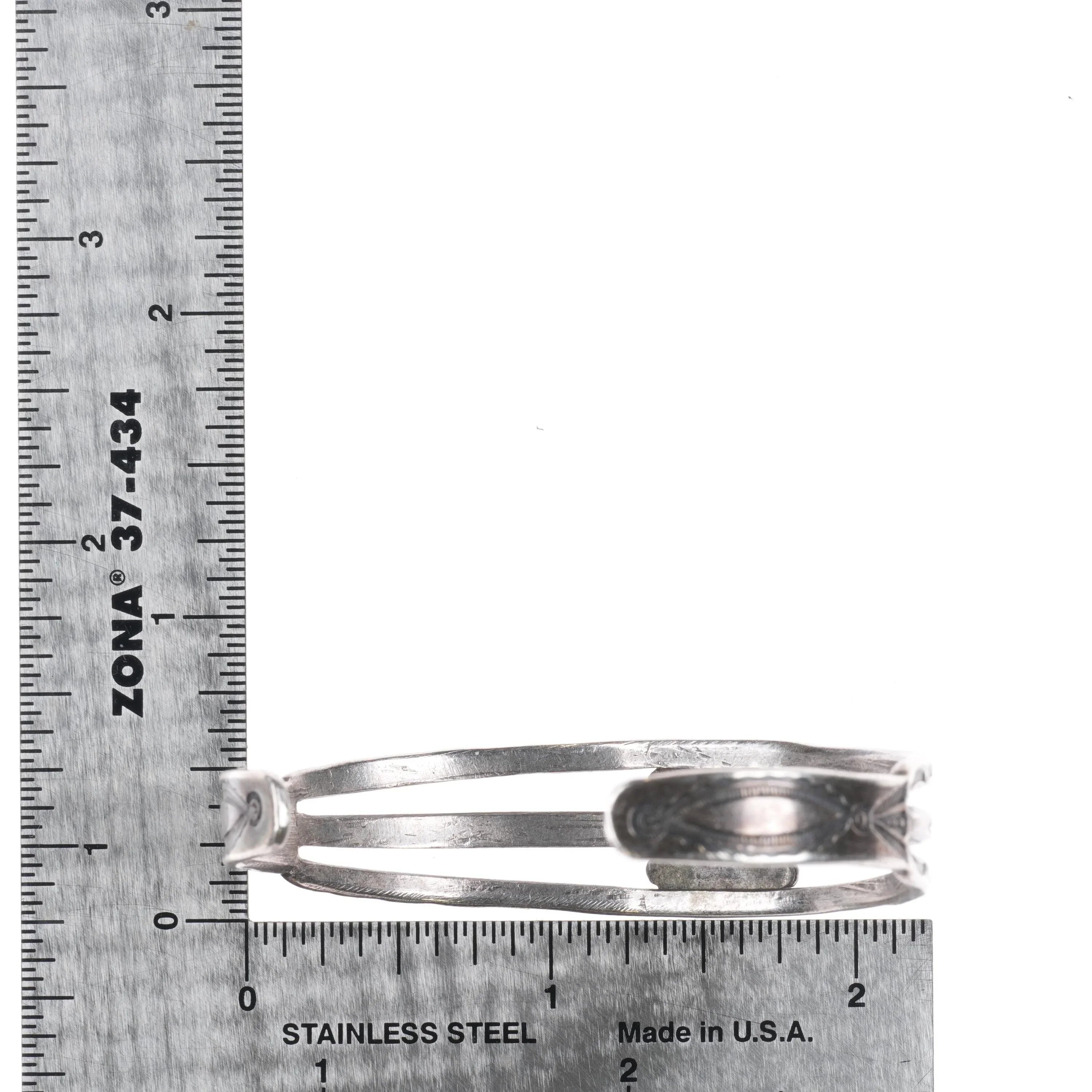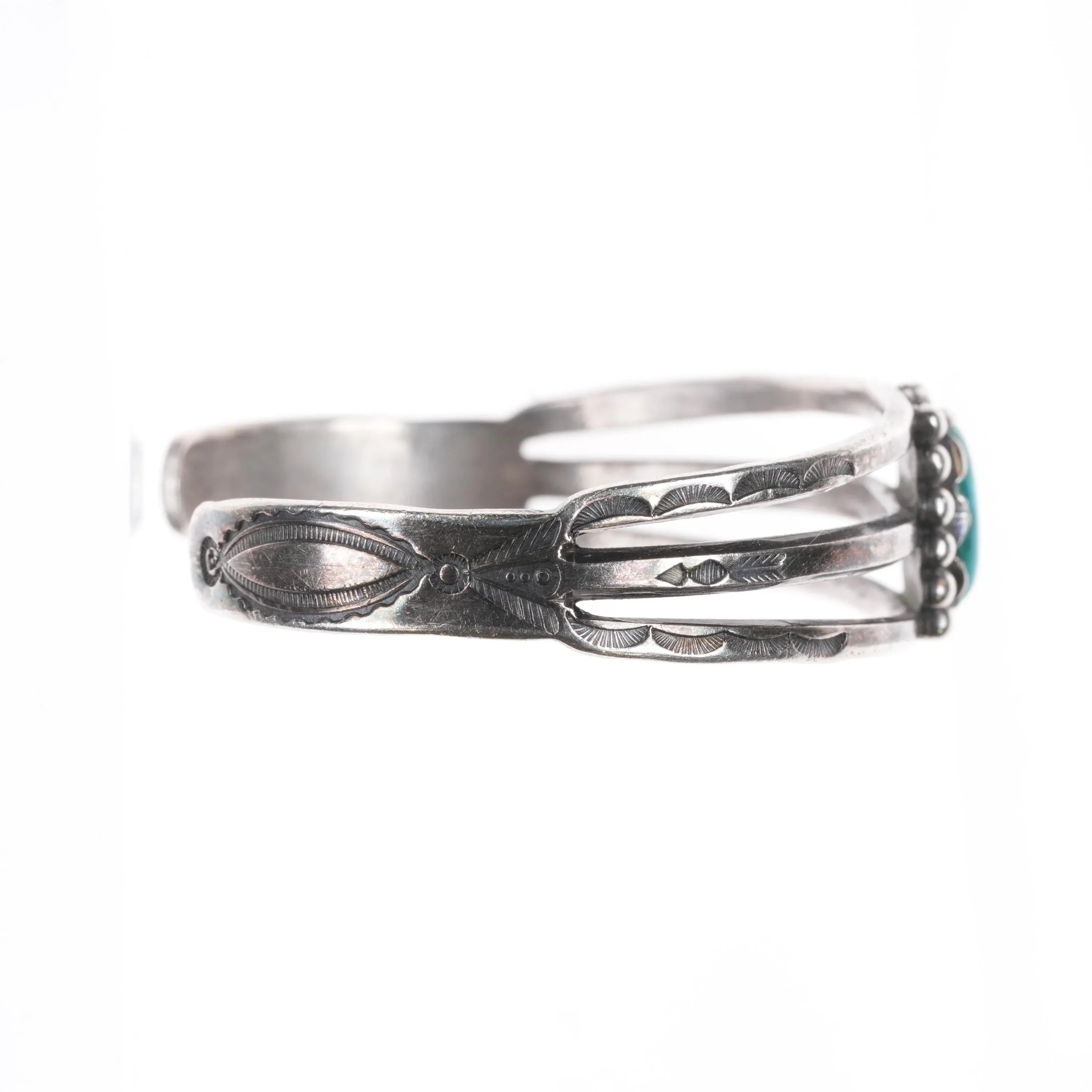 6" 30's-40's Navajo sterling silver hand stamped cuff bracelet center turquoise