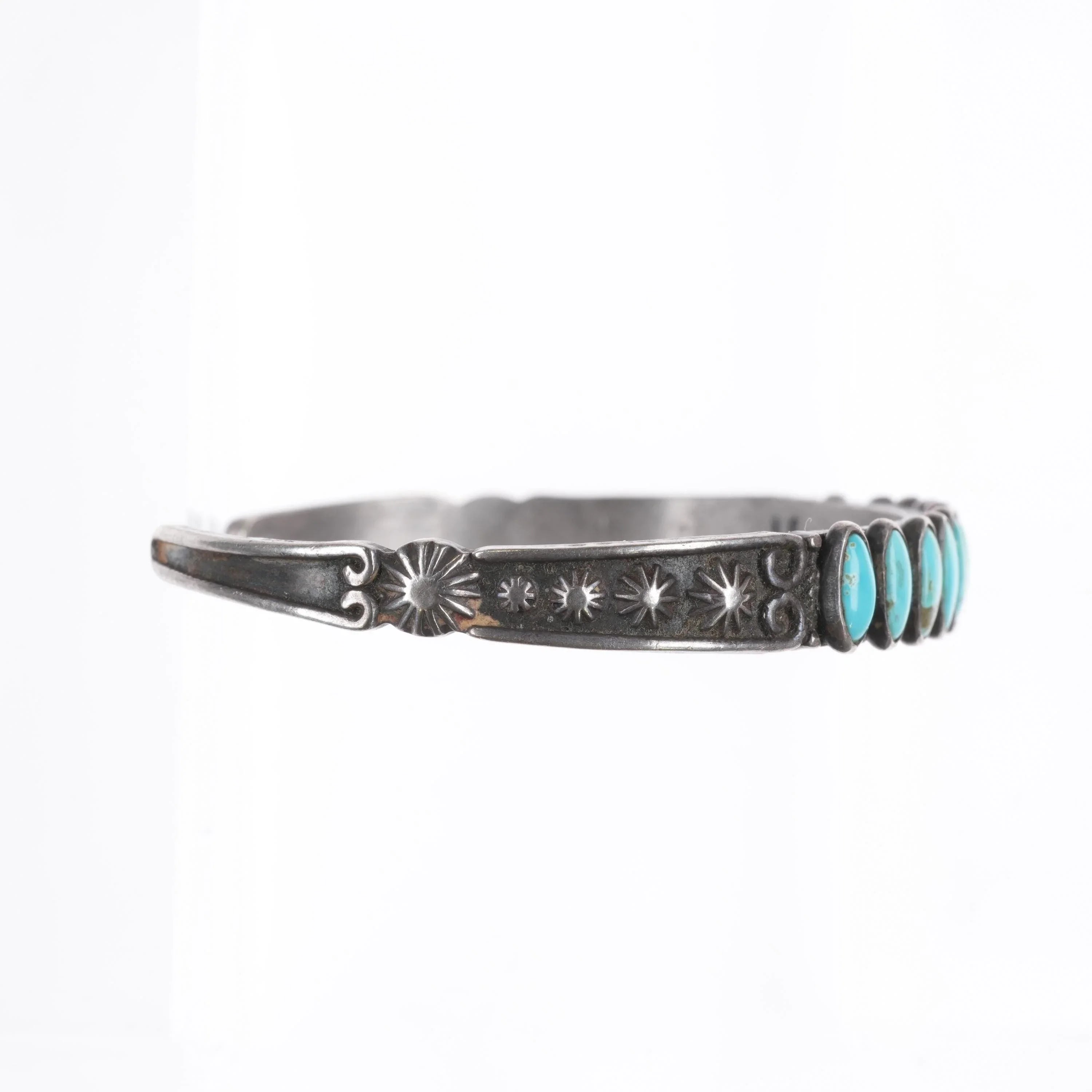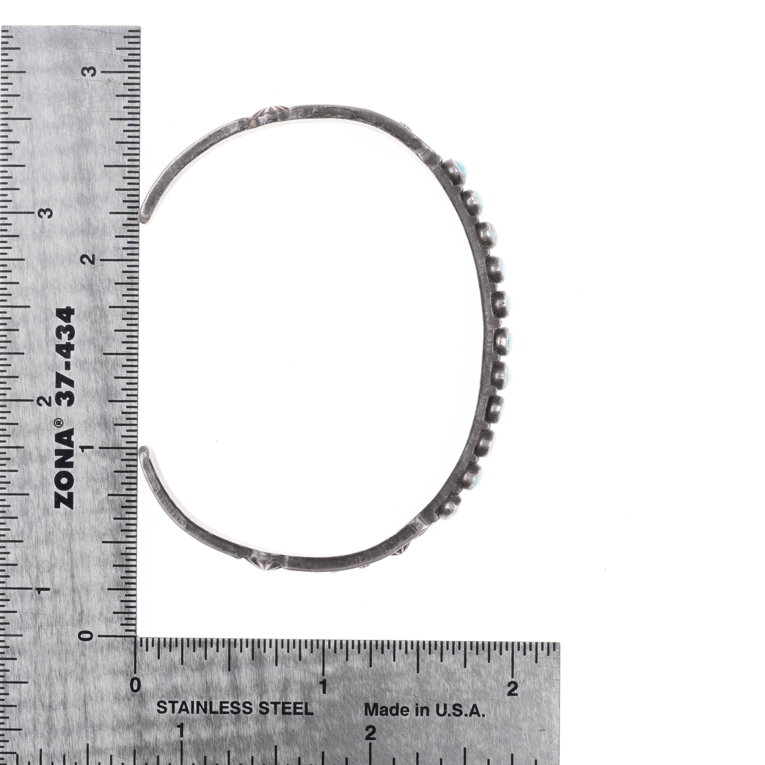 6.5" 30's-40's Vintage Navajo turquoise row cuff bracelet sterling silver