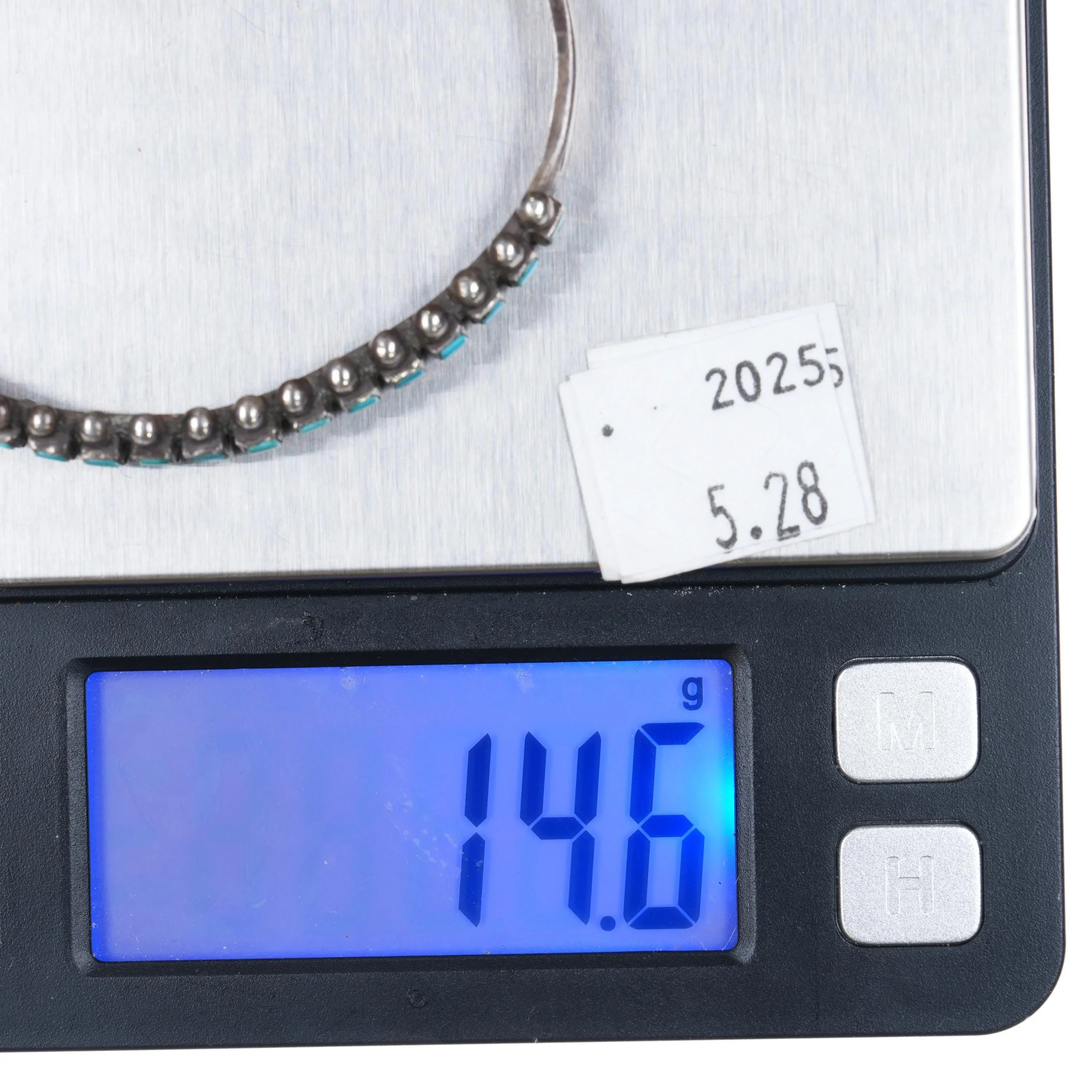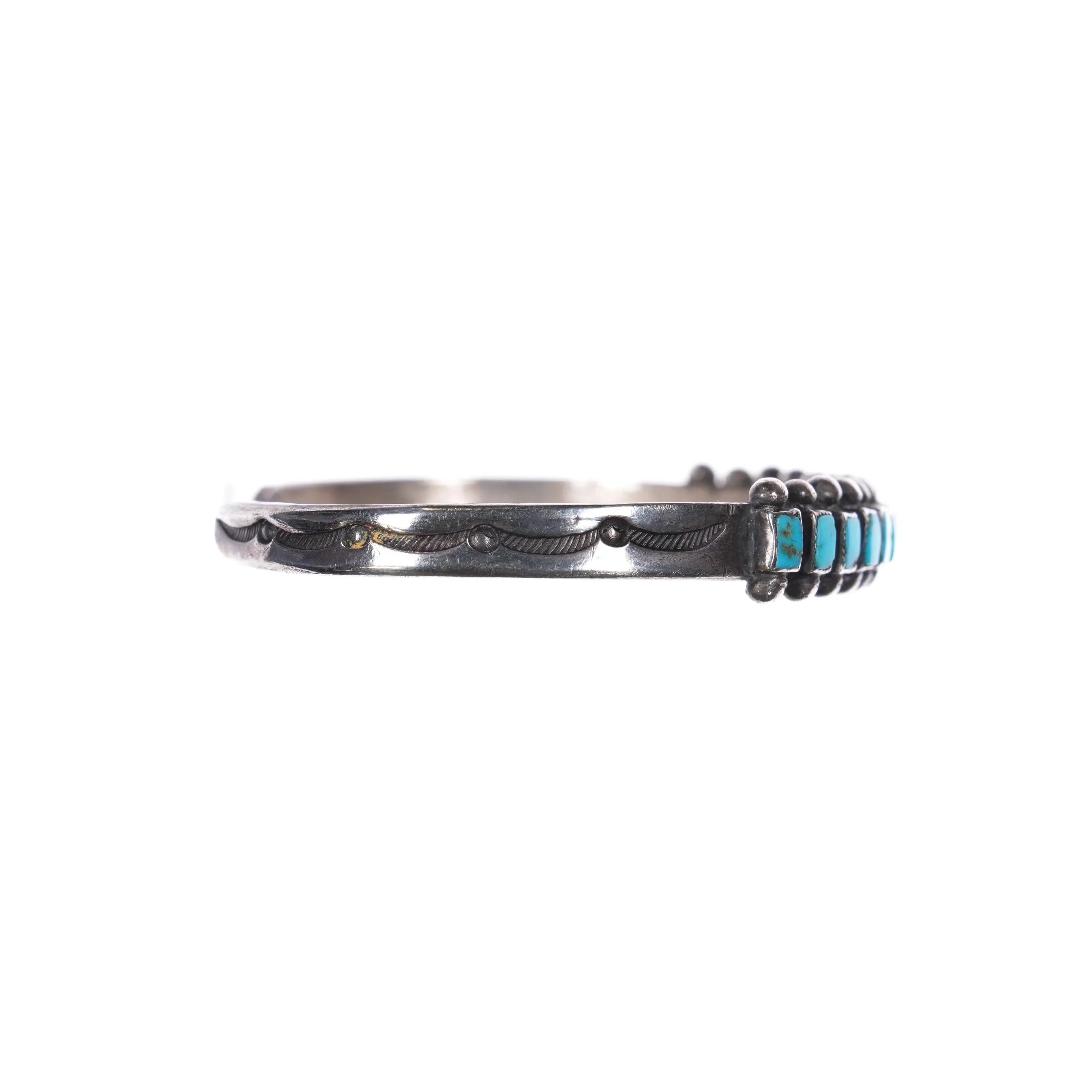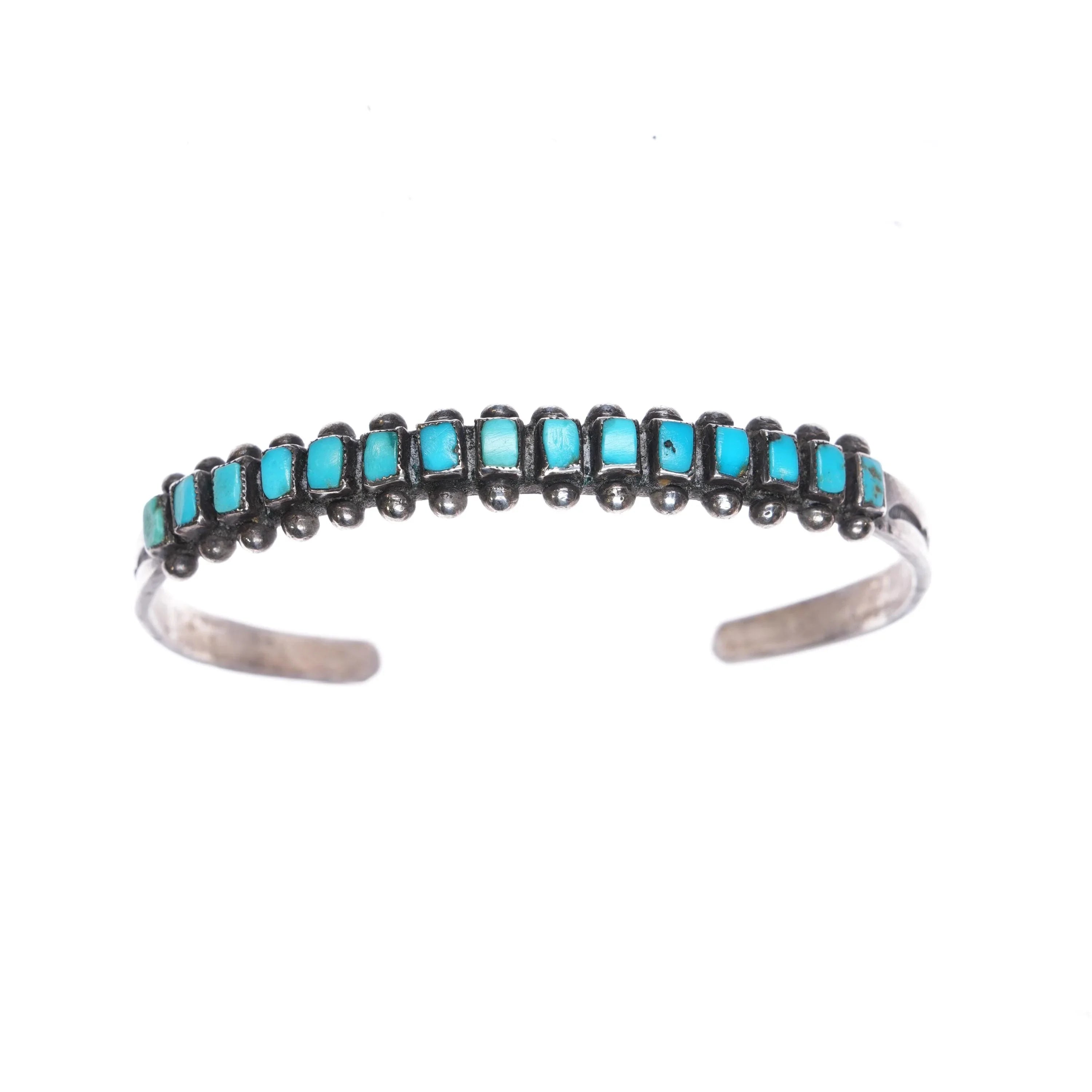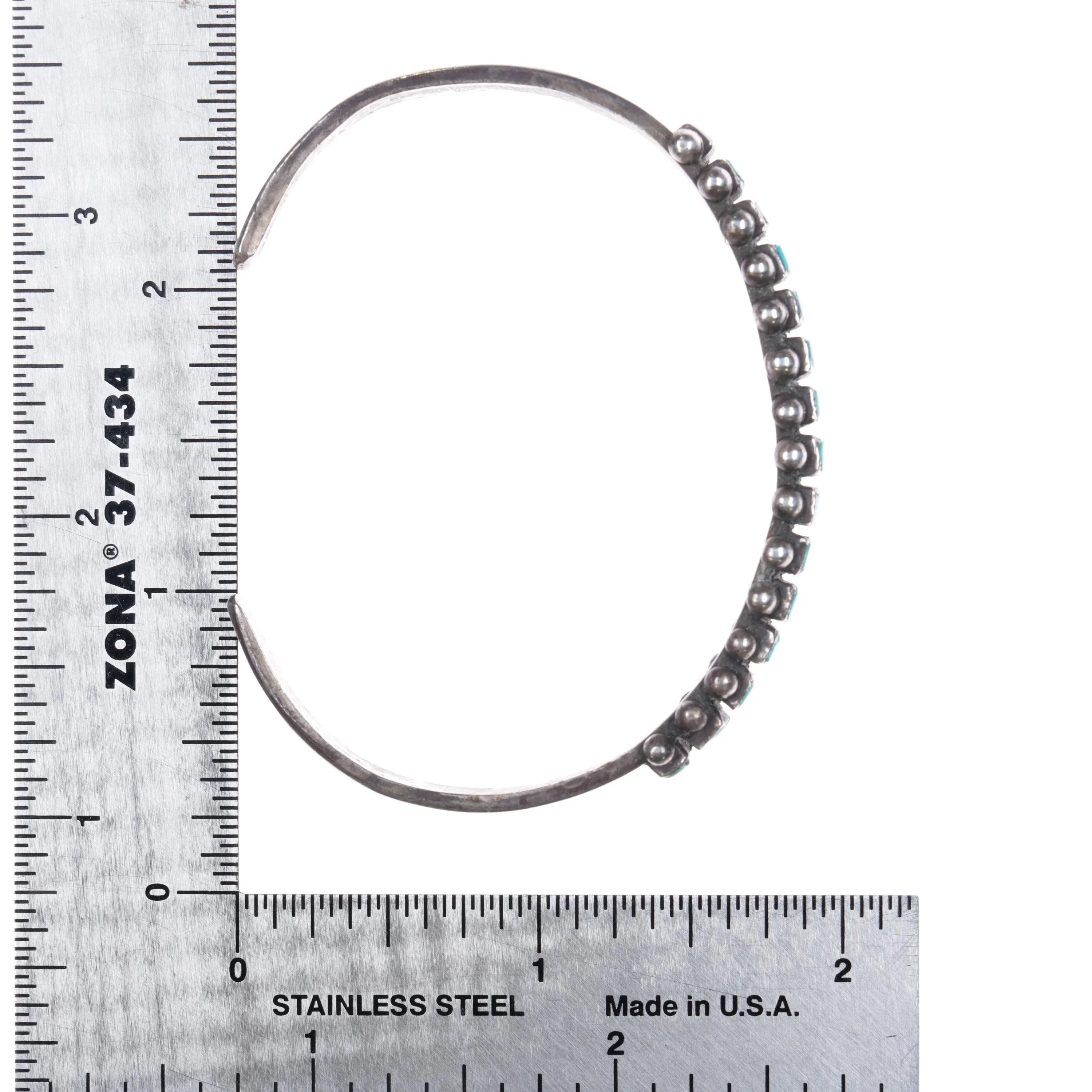 6.5" 40's-50's Zuni Square cut turquoise row cuff bracelet sterling silver