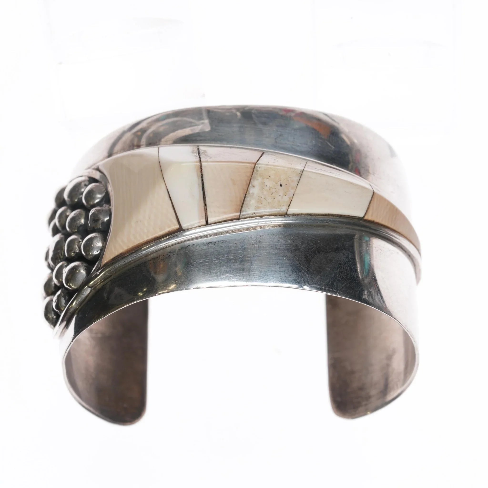 Artist and jeweler Jack Woolsey was born in 1940 in Colorado Springs, CO. He learned his jewelry making techniques from the Navajo silversmiths around Taos, NM, and is renowned for his modernist inlay cuff bracelets, belt buckles, and earrings. Some of his materials were obtained in trade with Eskimos living in the Alaskan tundra. He also created distinctive wrap inlay designs using turquoise, red jasper, black onyx, and other semiprecious stones. Jack Woolsey passed away in 2005, at the age of 64.
